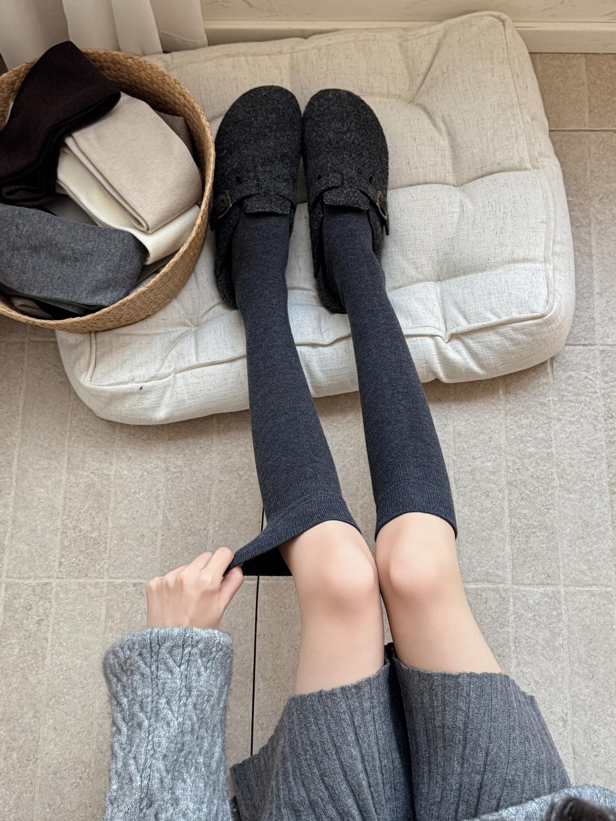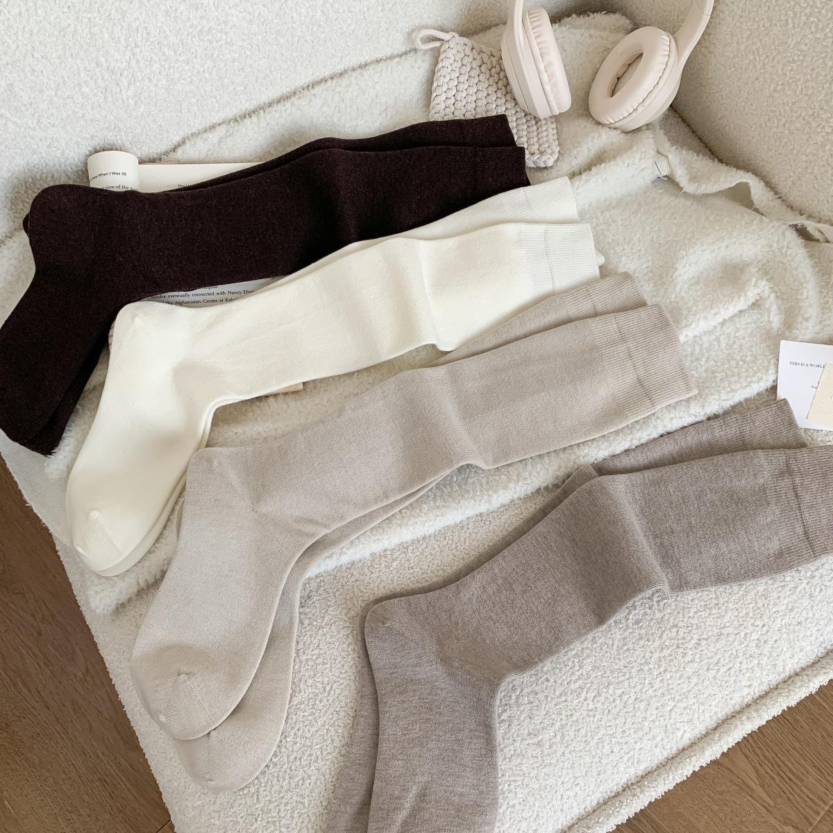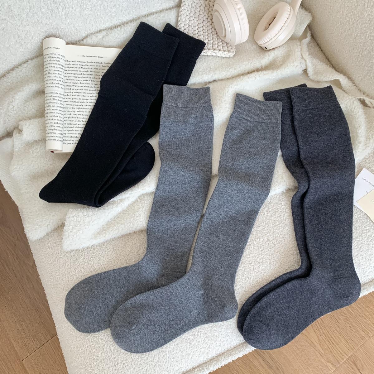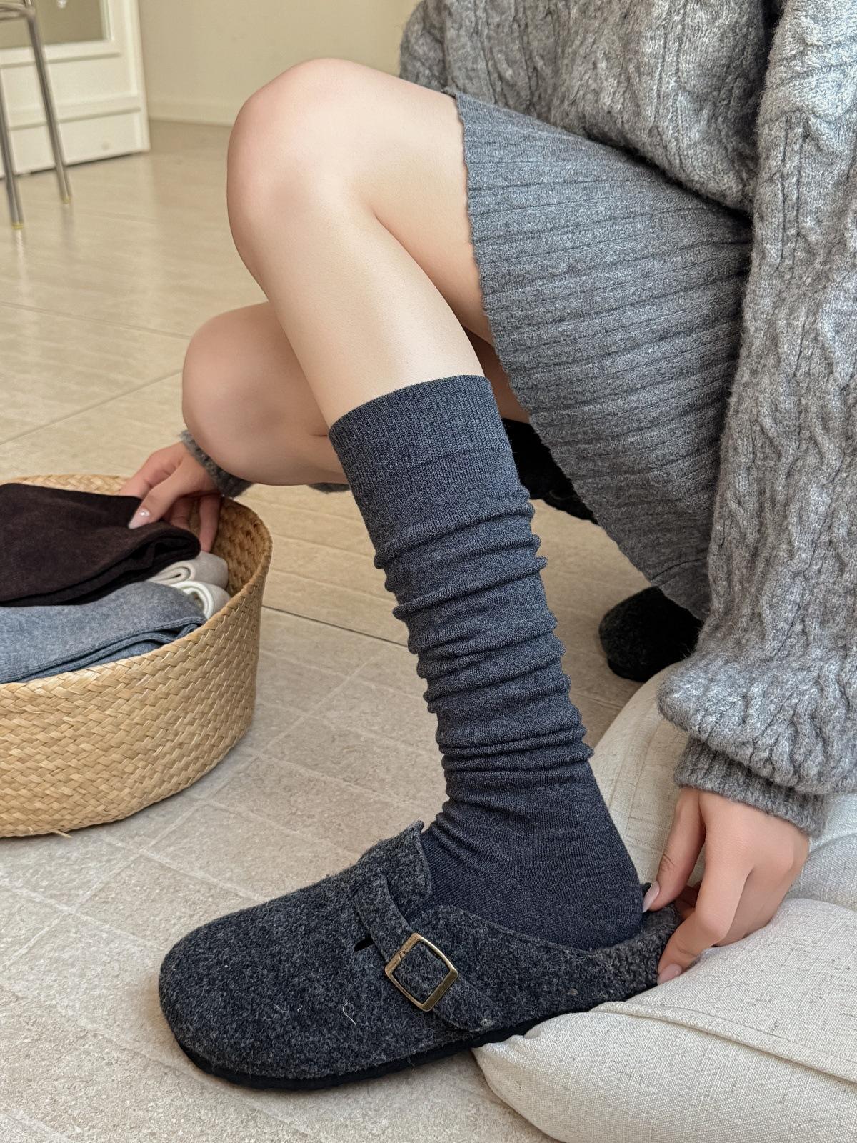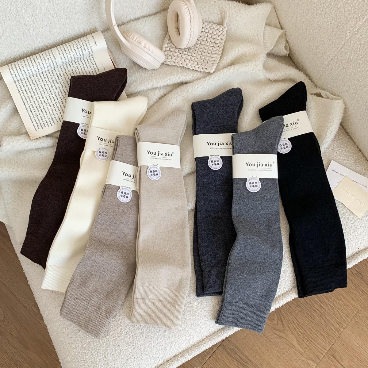 Calcetines de pantorrilla de lana de seda de morera de alta calidad Otoño Invierno Nuevos Calcetines hasta la rodilla de color sólido estilo coreano Calcetines largos cálidos para mujer