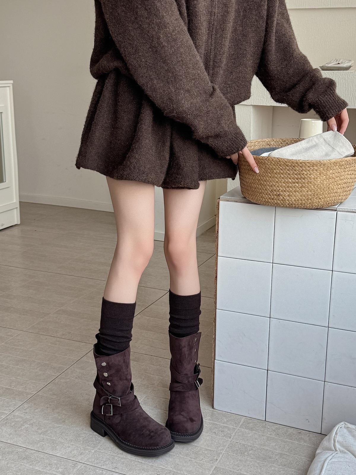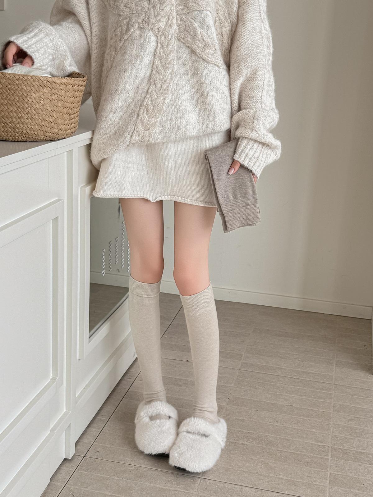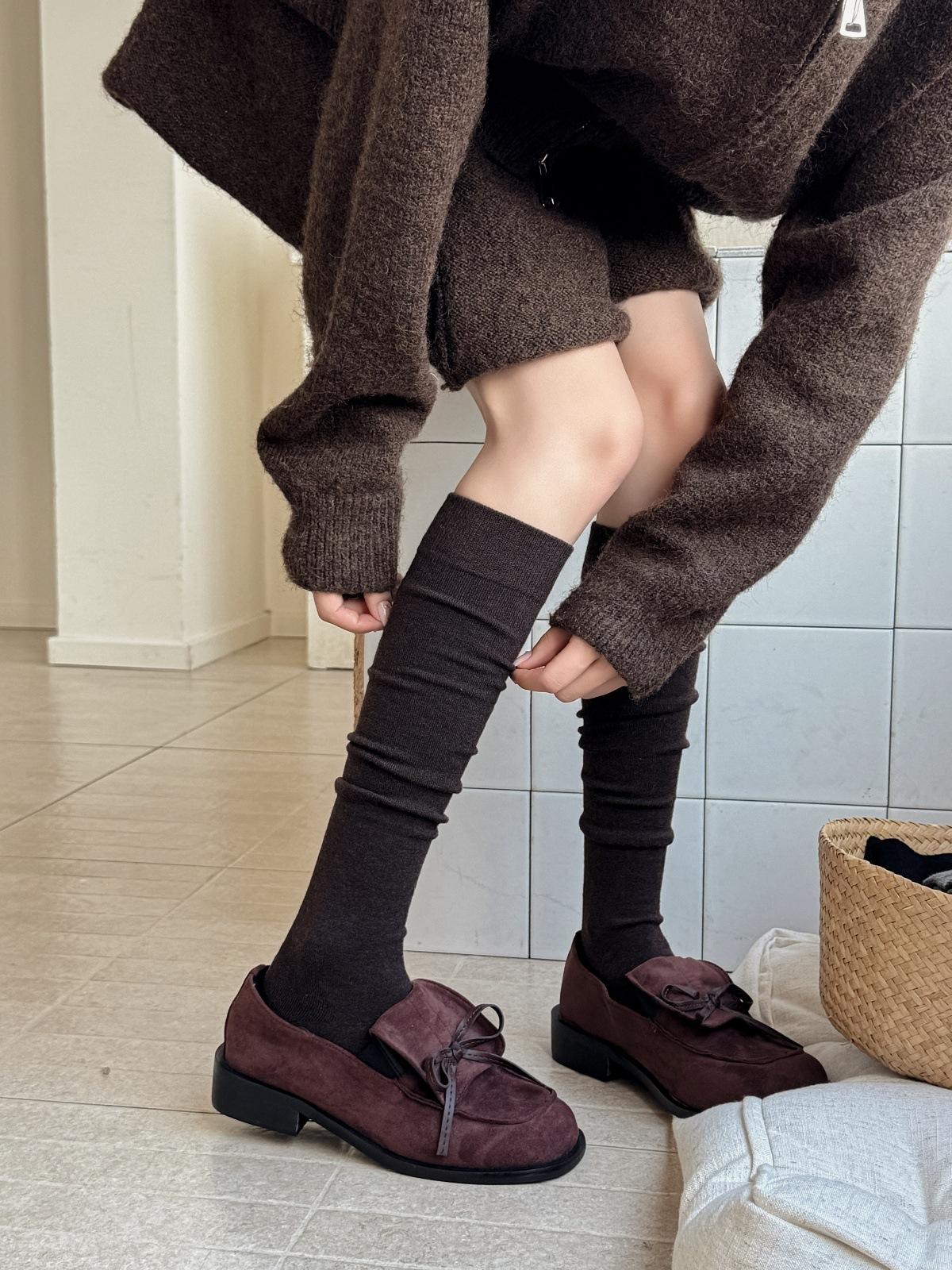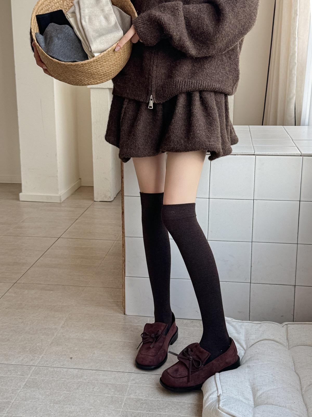 Calcetines de pantorrilla de lana de seda de morera de alta calidad Otoño Invierno Nuevos Calcetines hasta la rodilla de color sólido estilo coreano Calcetines largos cálidos para mujer