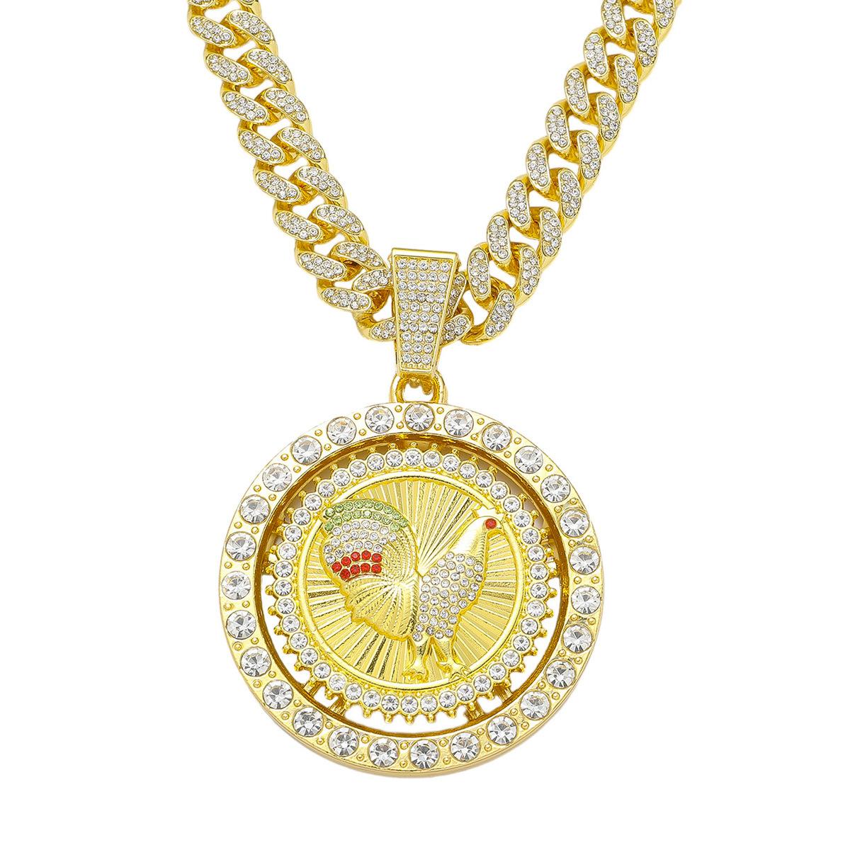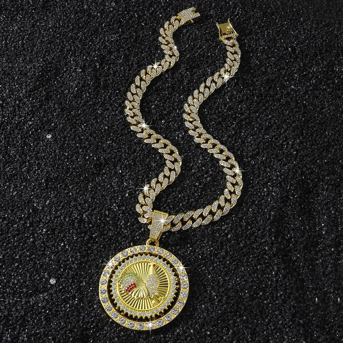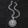 Collar con colgante de tarjeta redonda con número 7 de diamante tridimensional de hip-hop europeo y americano, accesorios de cadena cubana de hip-hop de moda dominante para hombres
