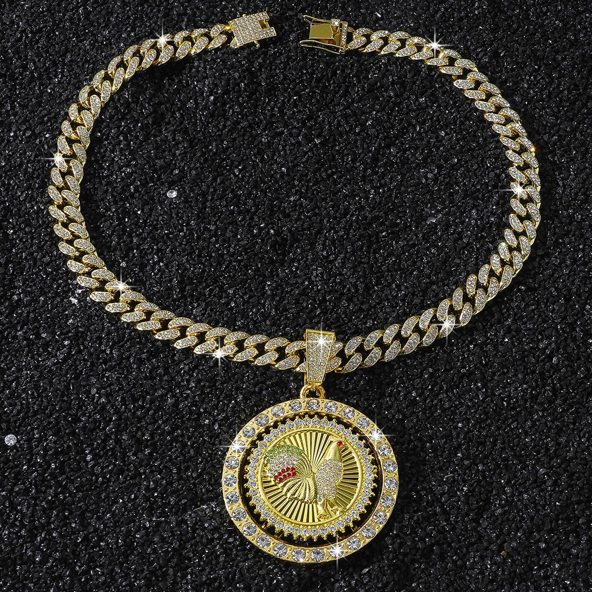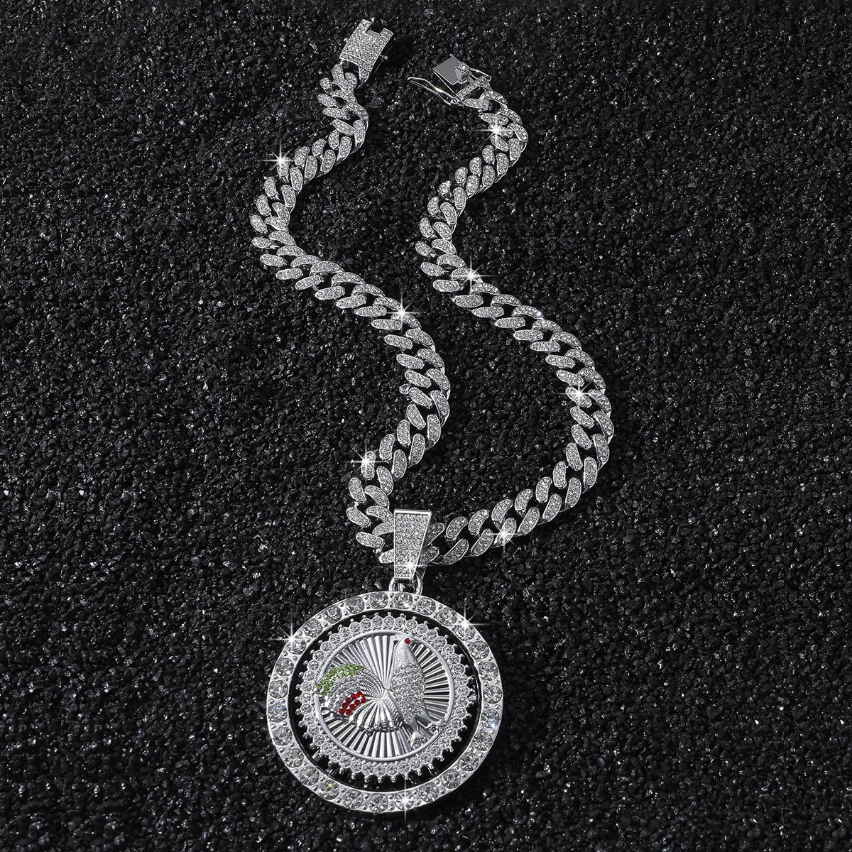 Collar de cadena cubana con colgante de 1000 puntas de diamante completo para hombre, estilo hip-hop europeo y americano, estilo dominante digital, accesorios de calle de moda