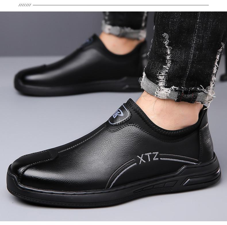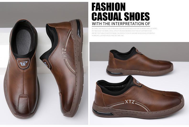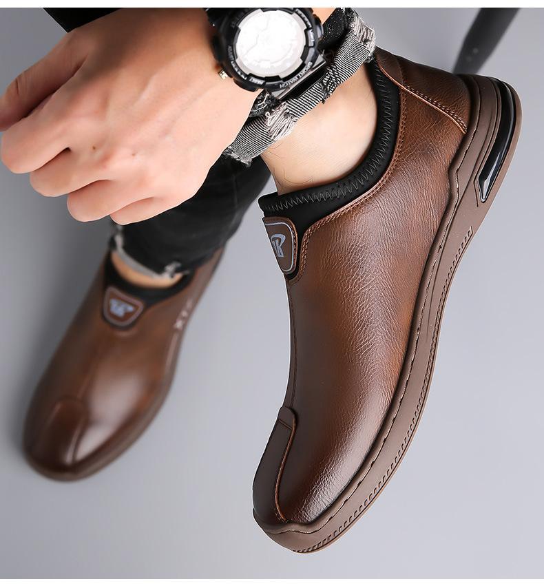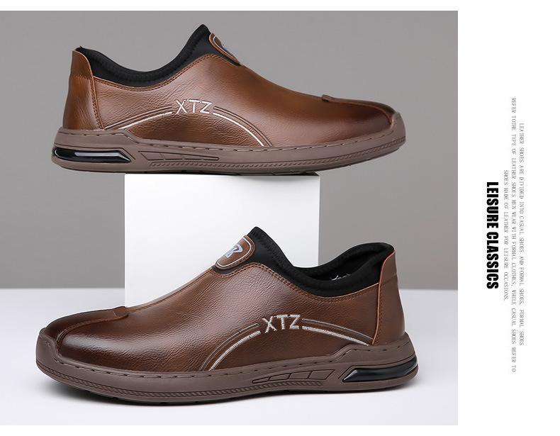 Zapatos de cuero para hombre nuevos transfronterizos Zapatos de cuero casuales de negocios Mocasines sin cordones de suela blanda Antideslizantes Cómodos Zapatos británicos para hombre