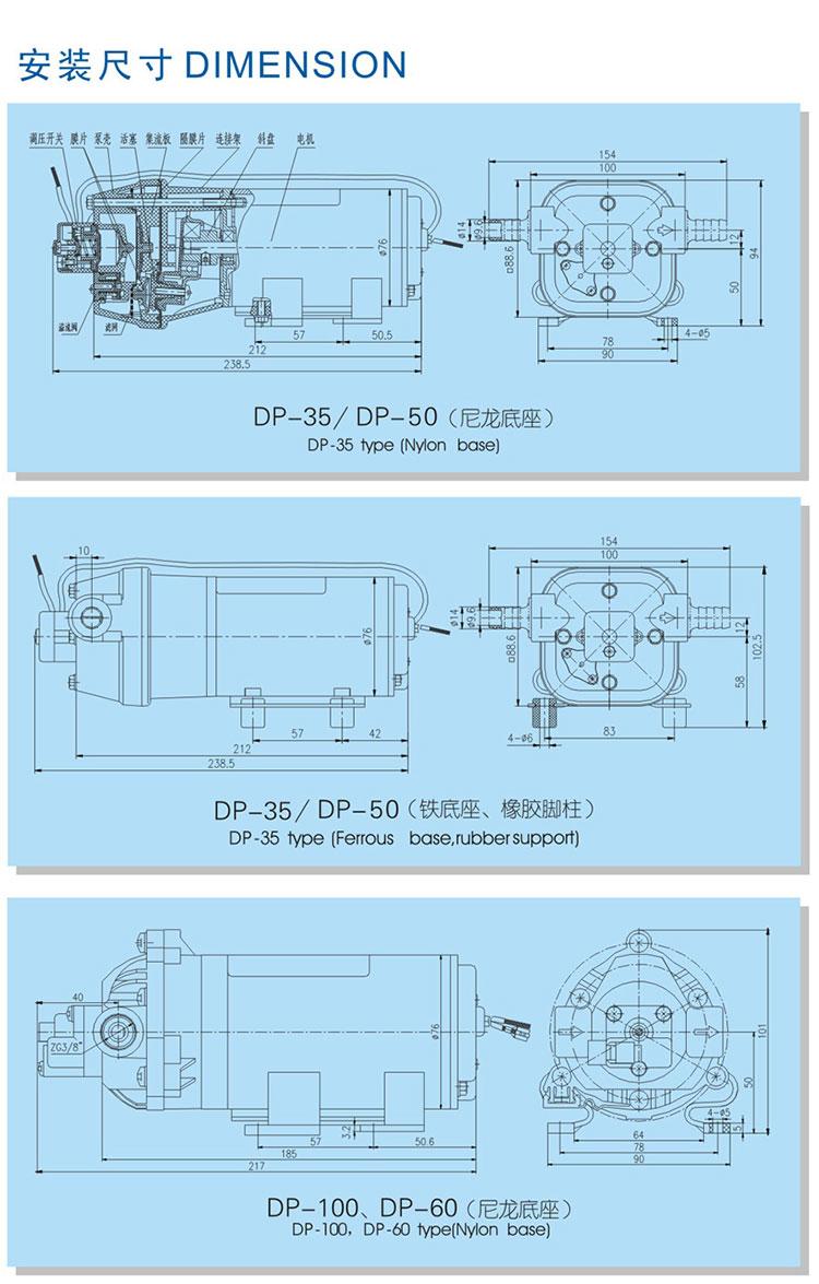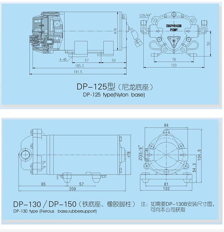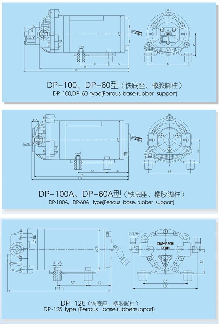 2. Equipado con las juntas de entrada y salida que vienen con la bomba. La entrada y salida de las bombas de diafragma DP-130 DP-125 DP-100 DP-60 utilizan juntas de codo ZG3/8″ rosca externa G29/64″; la entrada y salida de las bombas de diafragma DP-35 DP-150 DP-50 utilizan juntas de manguera de 3/8″ rosca externa.