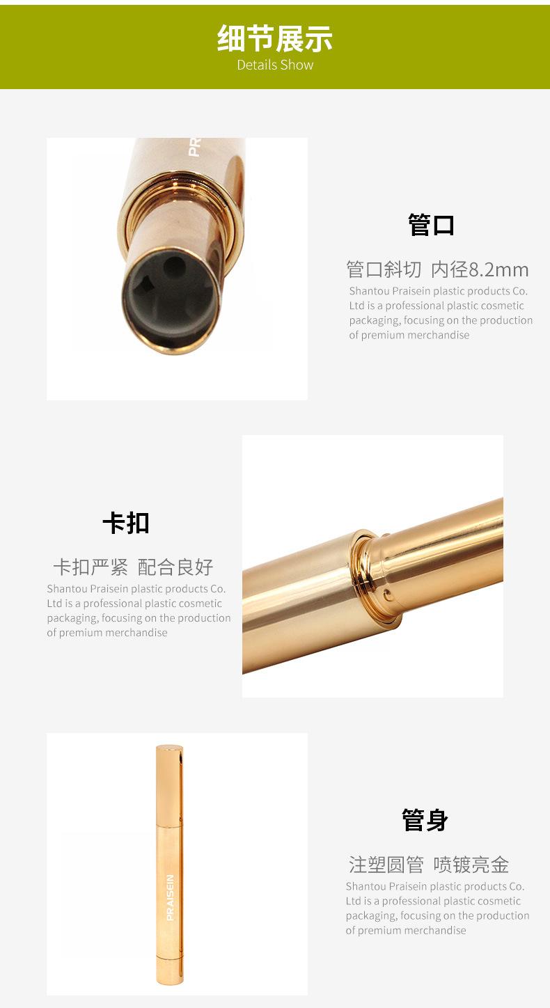 Tubo Vacío de Lápiz Labial de Oro de 2.5g con Cierre a Presión, Fondo Redondo Giratorio de Plástico, Material de Embalaje para Lápiz Labial al por Mayor