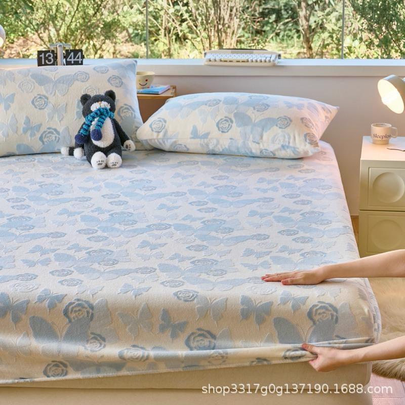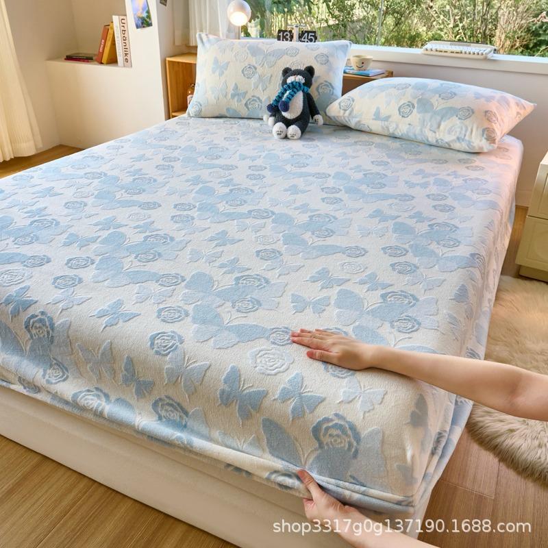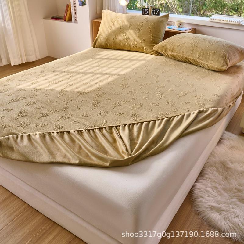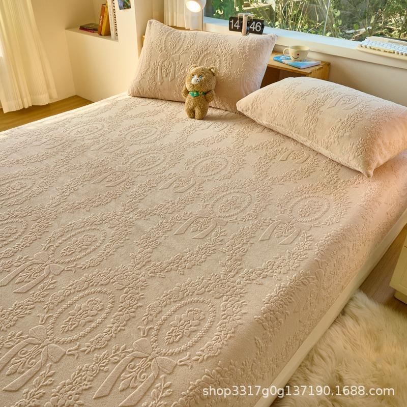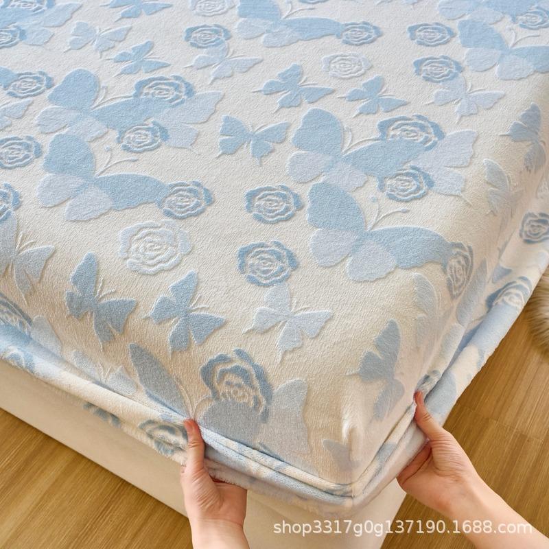 Sábana Ajustable de Terciopelo de Leche Tallada Tridimensional Invierno Gruesa Cálida Protector de Colchón Tatami Antideslizante Todo Incluido