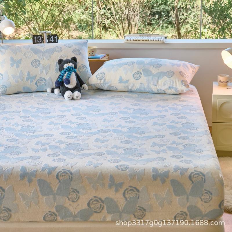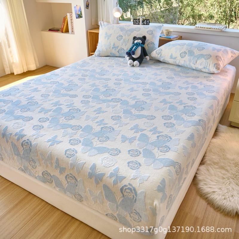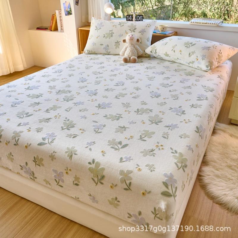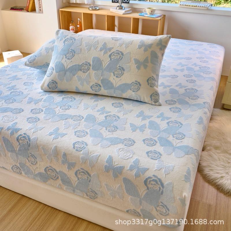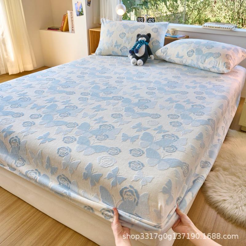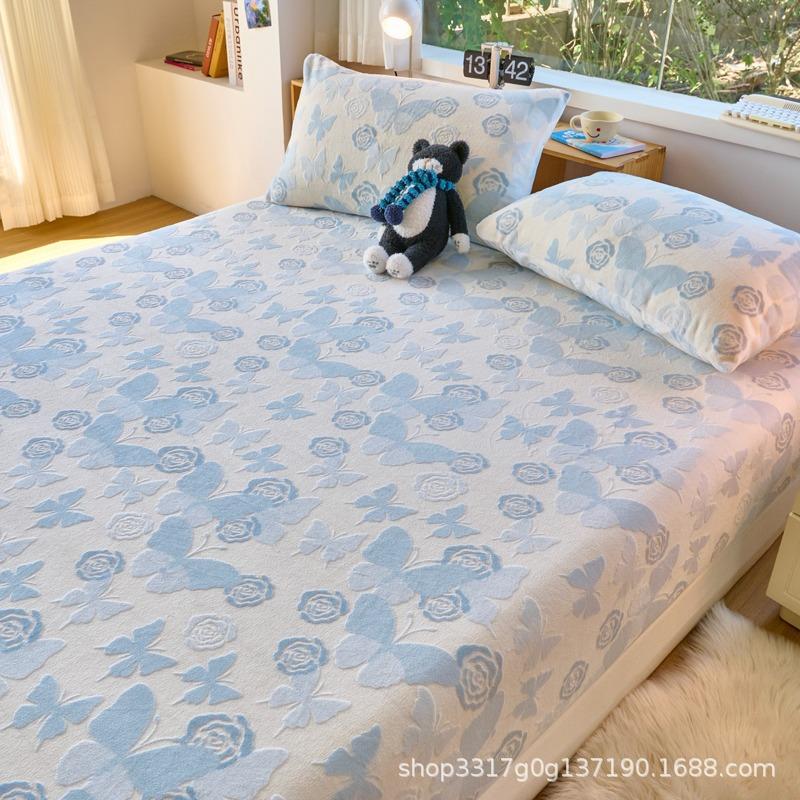 Sábana Ajustable de Terciopelo de Leche Tallada Tridimensional Invierno Gruesa Cálida Protector de Colchón Tatami Antideslizante Todo Incluido