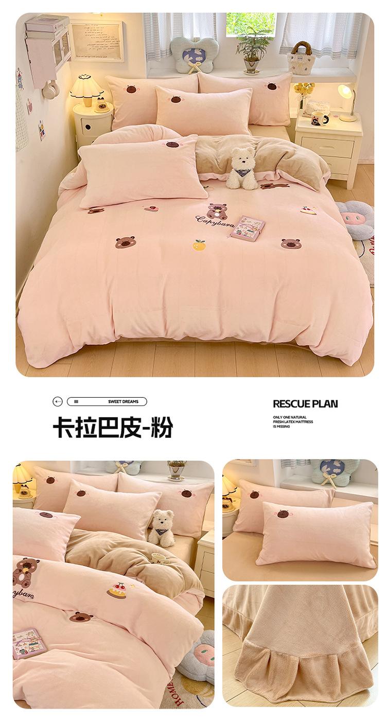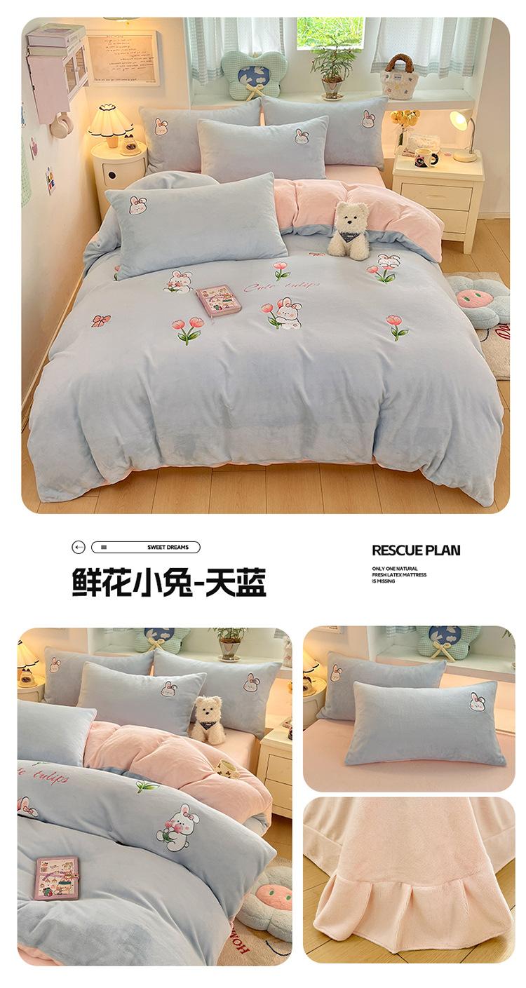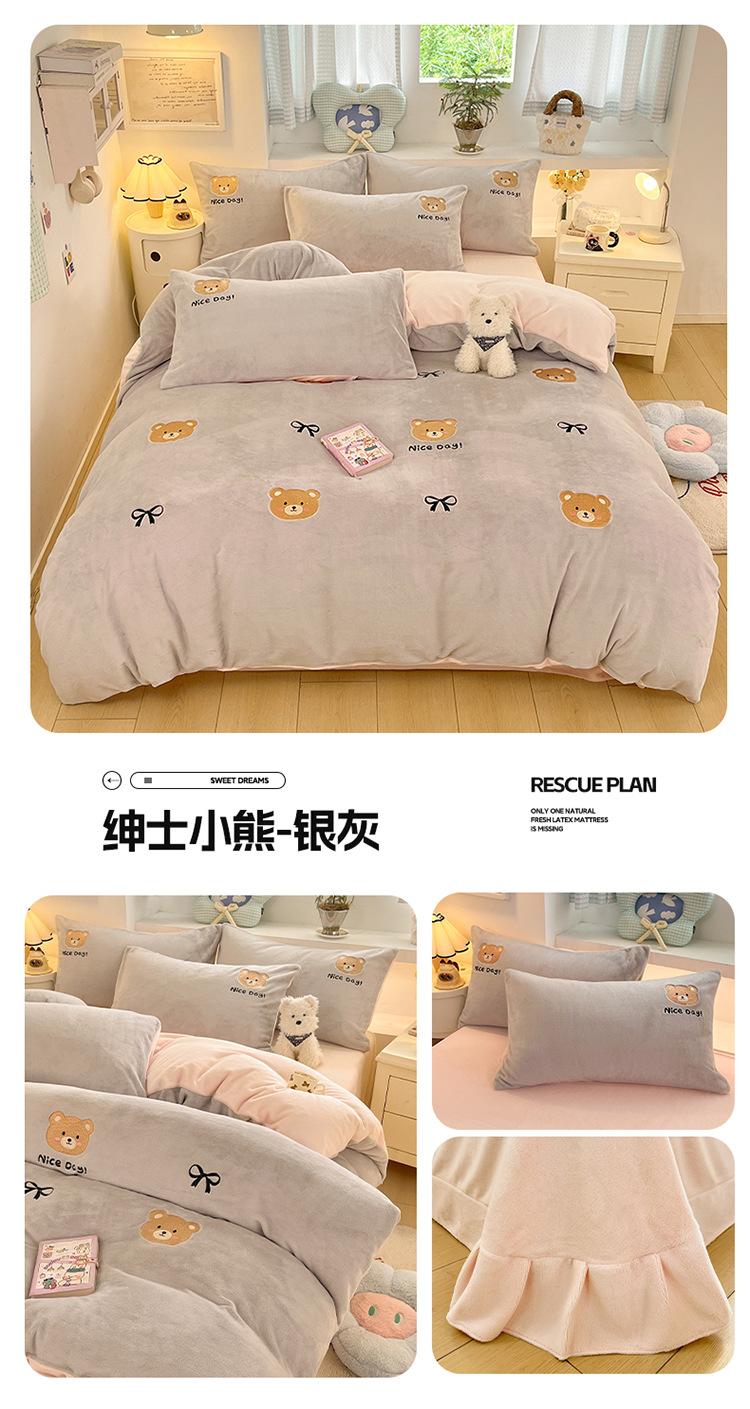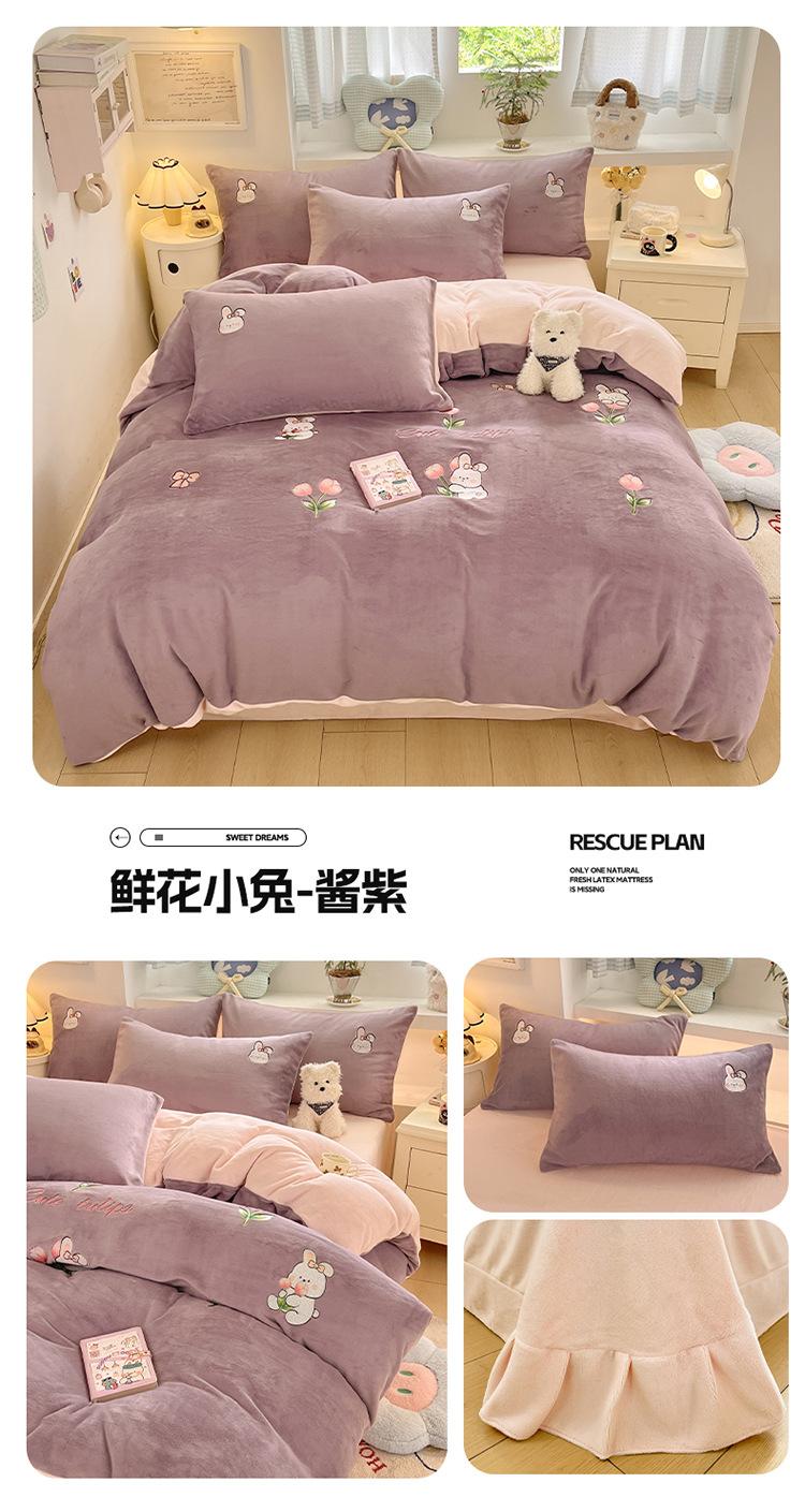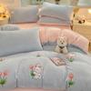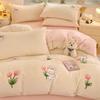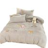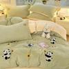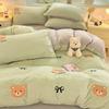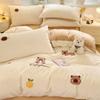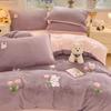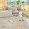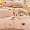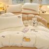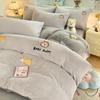 Juego de Cuatro Piezas de Terciopelo de Leche Clase A Invierno Espesado Vellón Coral Sábana Doble Cara Vellón Franela Funda Nórdica Juego de Tres Piezas Sábana Ajustable 4