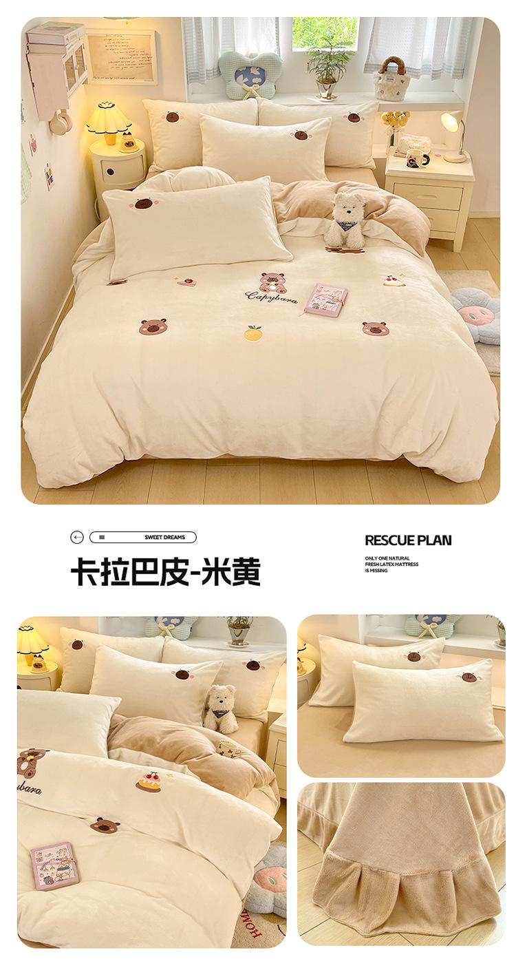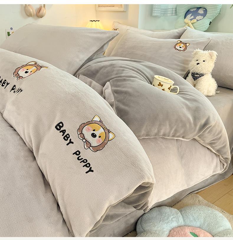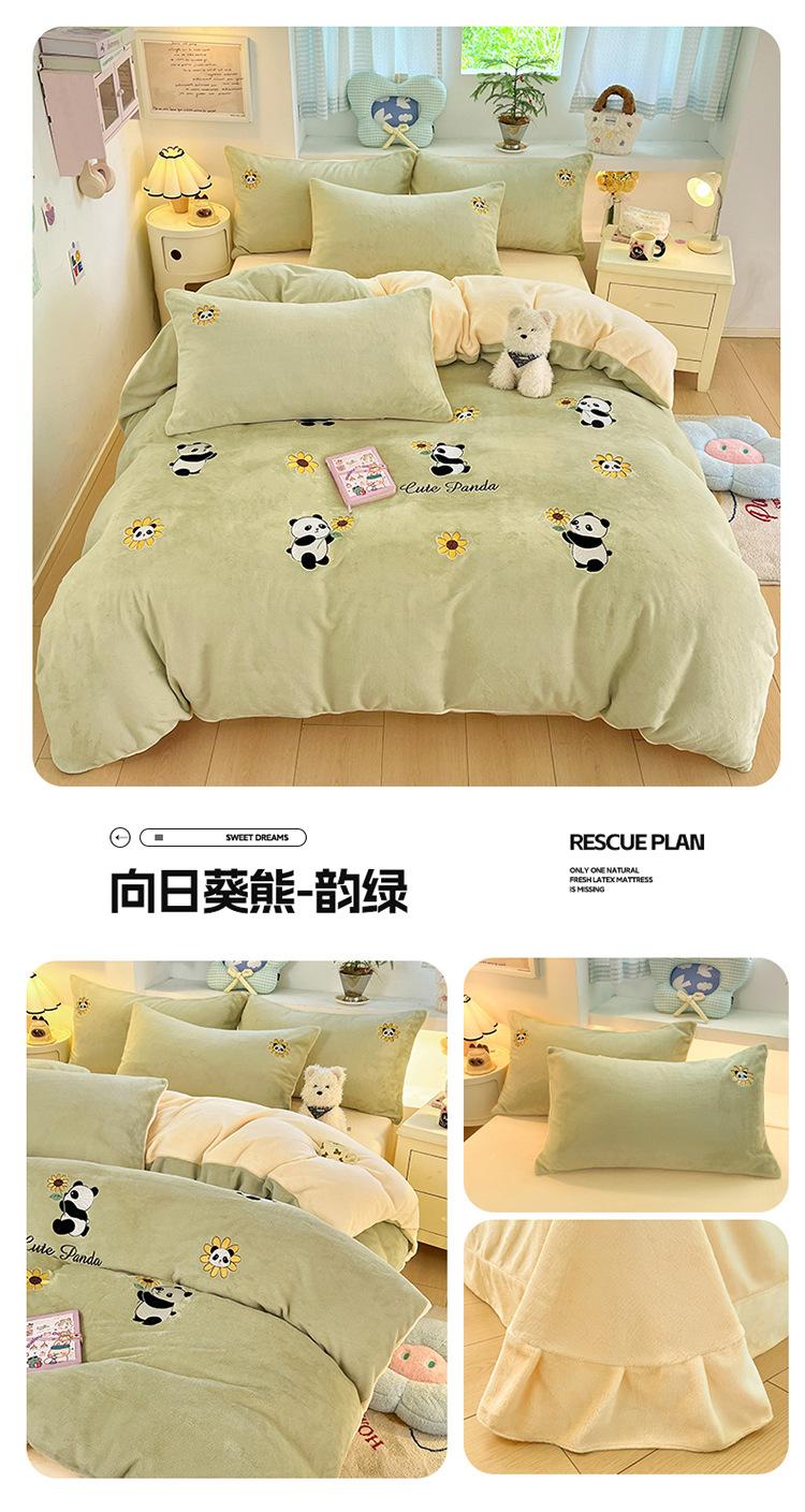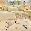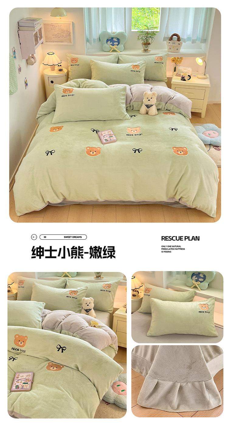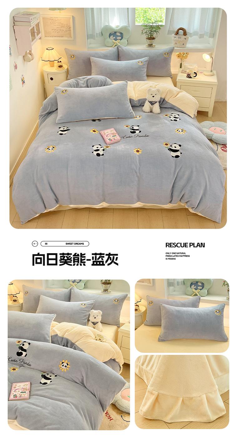 Juego de Cuatro Piezas de Terciopelo de Leche Clase A Invierno Espesado Vellón Coral Sábana Doble Cara Vellón Franela Funda Nórdica Juego de Tres Piezas Sábana Ajustable 4