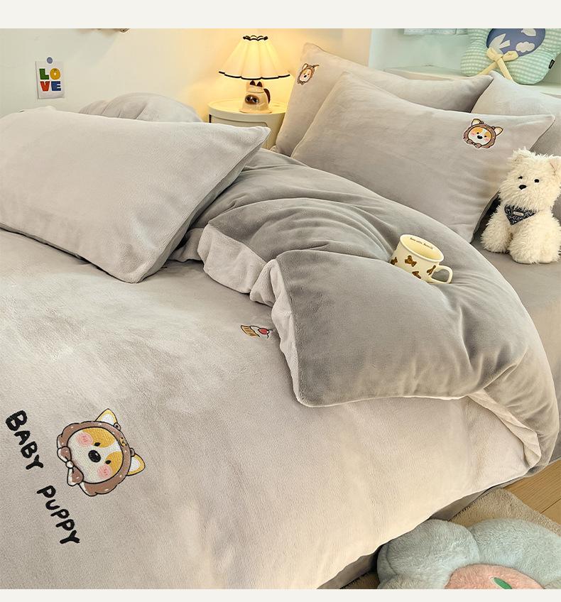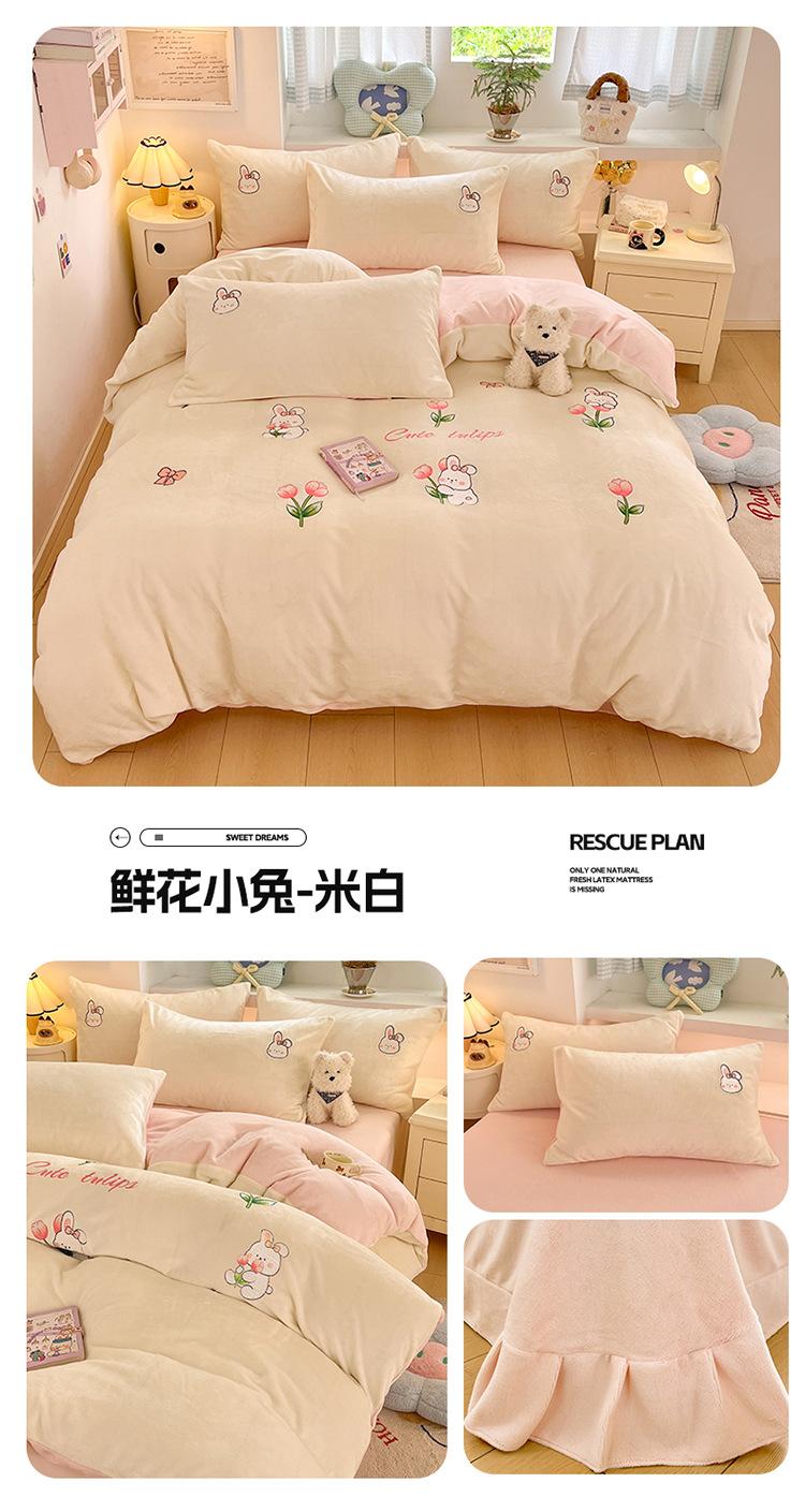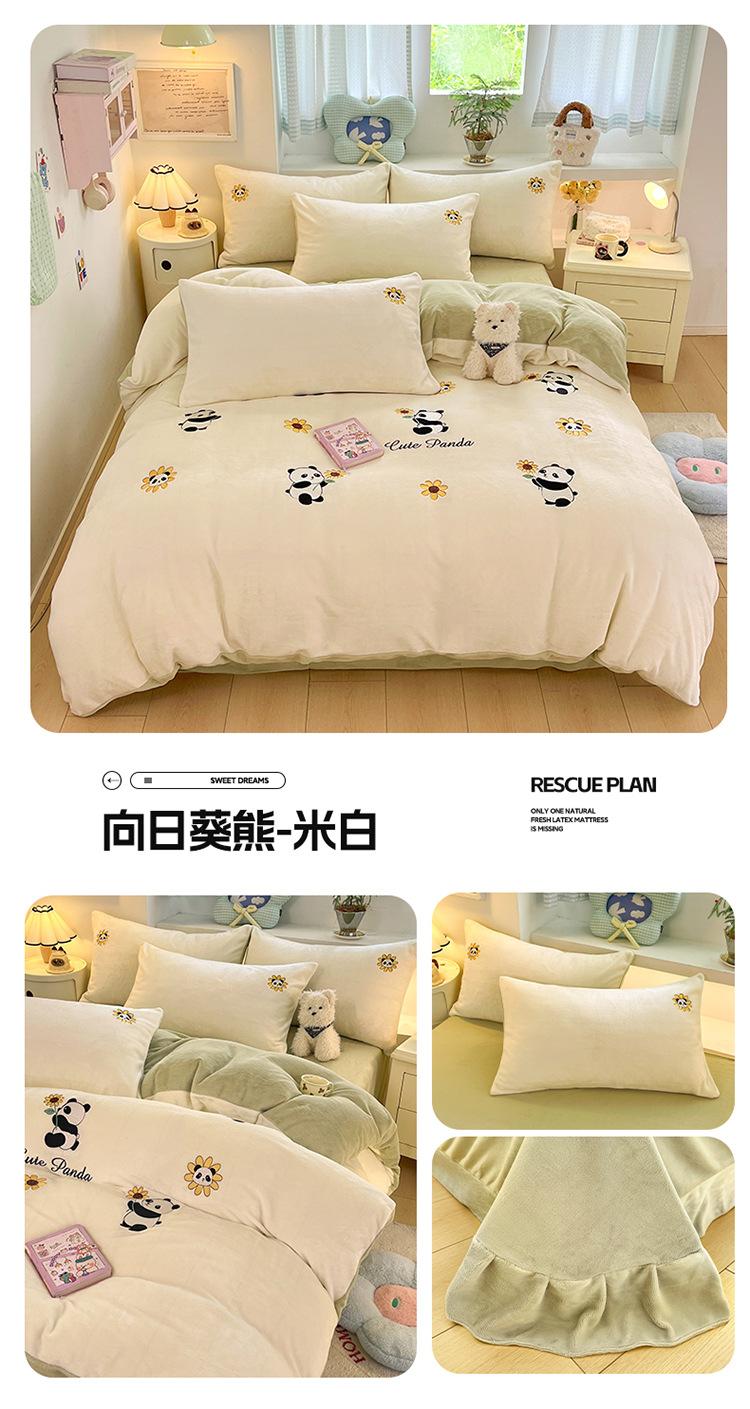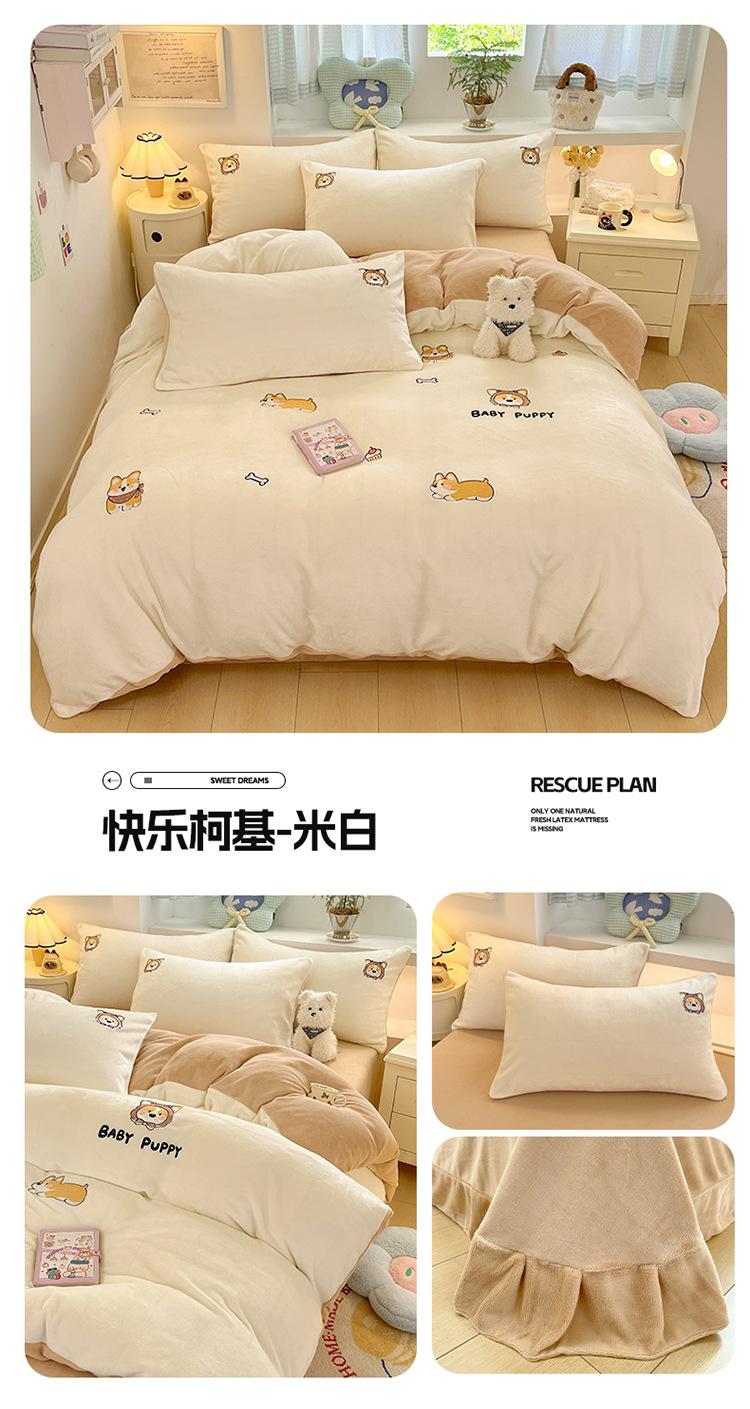 Juego de Cuatro Piezas de Terciopelo de Leche Clase A Invierno Espesado Vellón Coral Sábana Doble Cara Vellón Franela Funda Nórdica Juego de Tres Piezas Sábana Ajustable 4