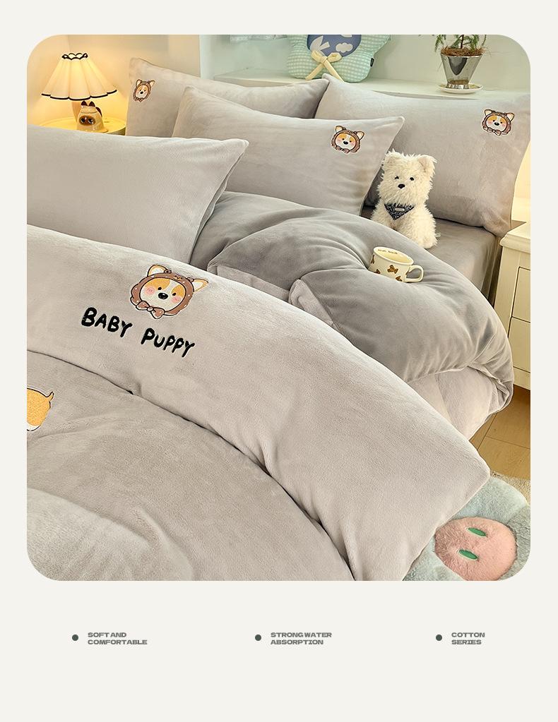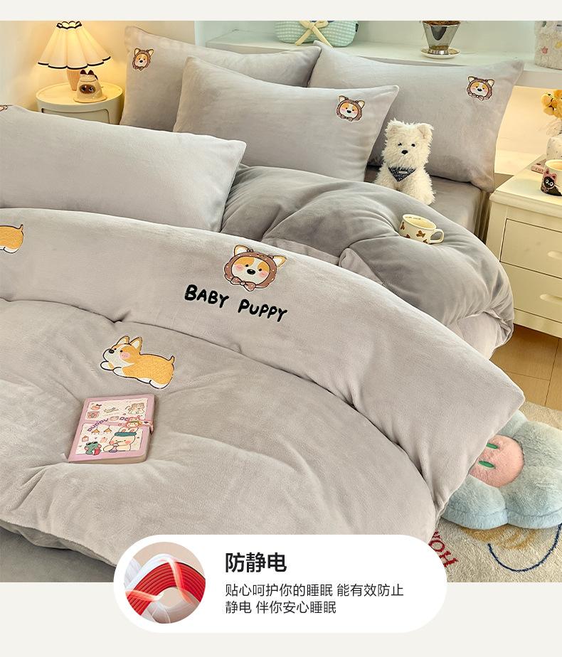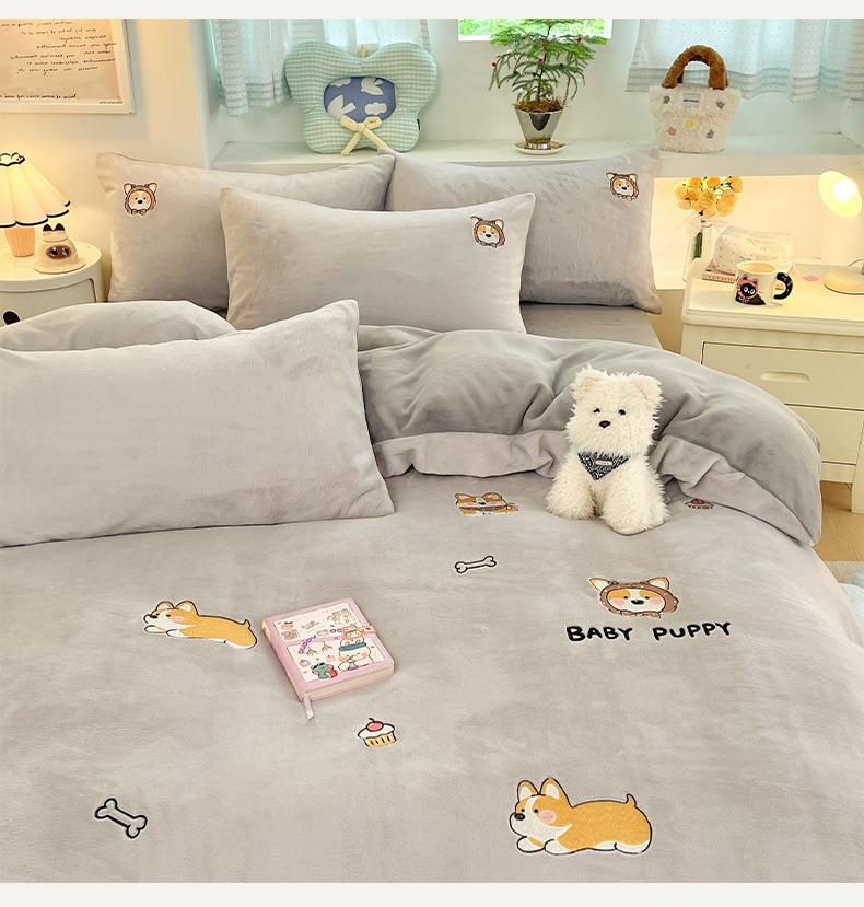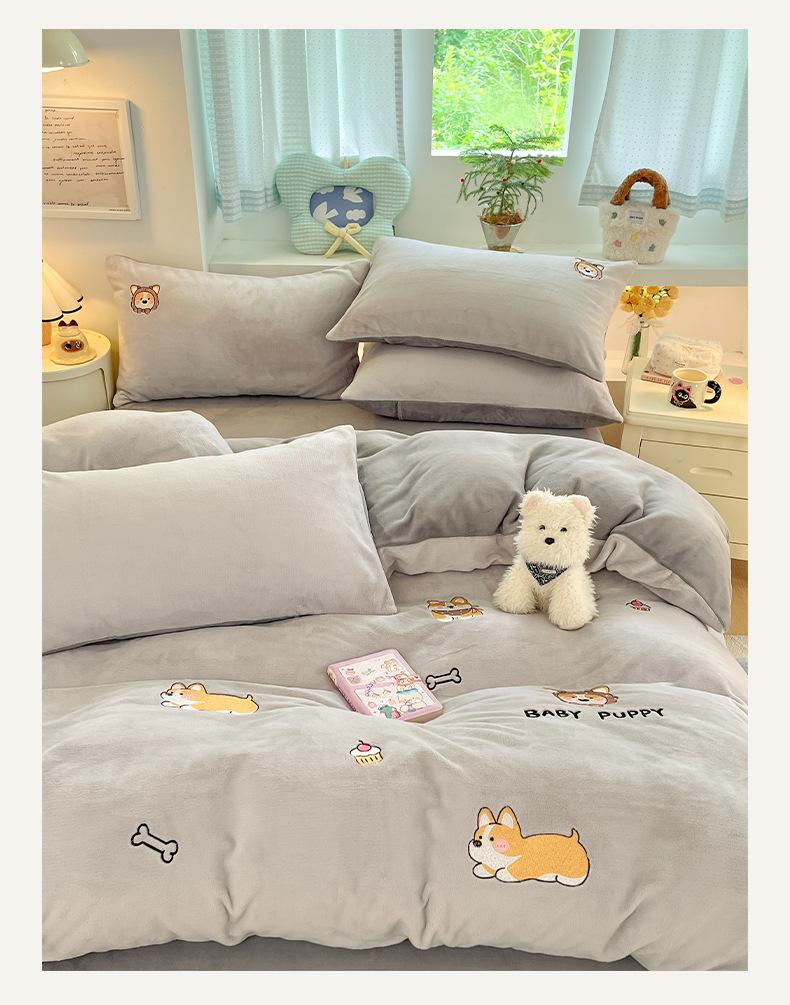 cartoon animation, plants flowers, LO Happy Corgi-Silver Grey【Anti-static Non-shedding Can Sleep Naked】Class A...
