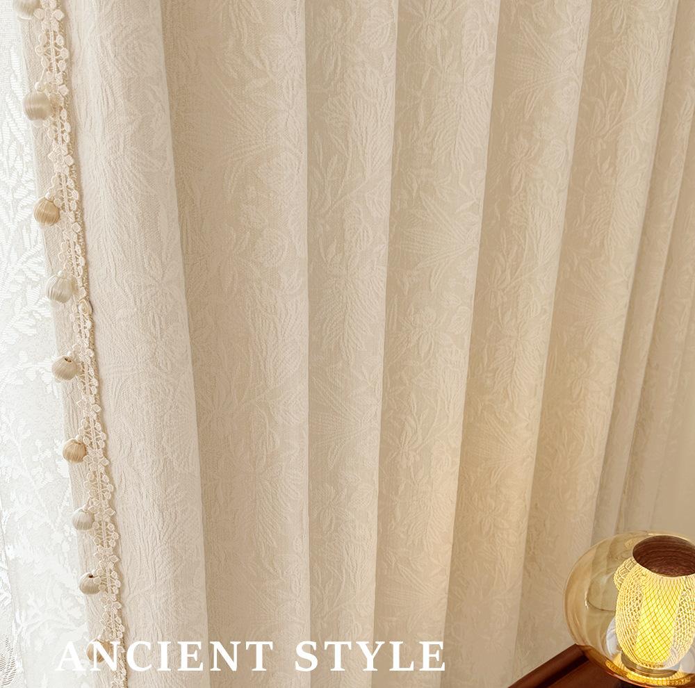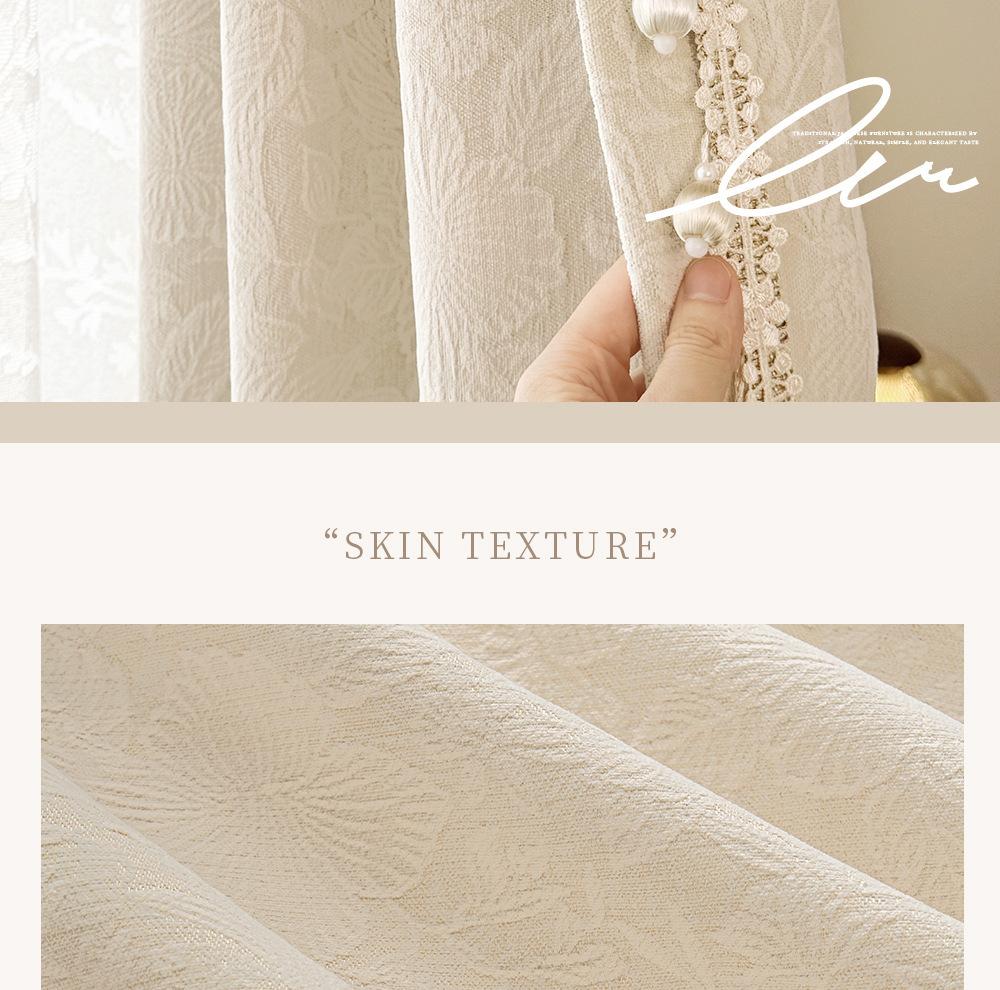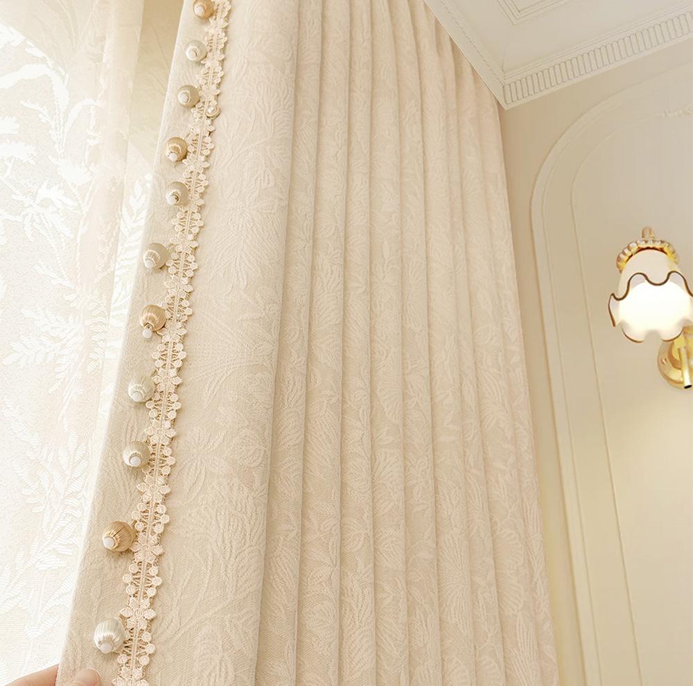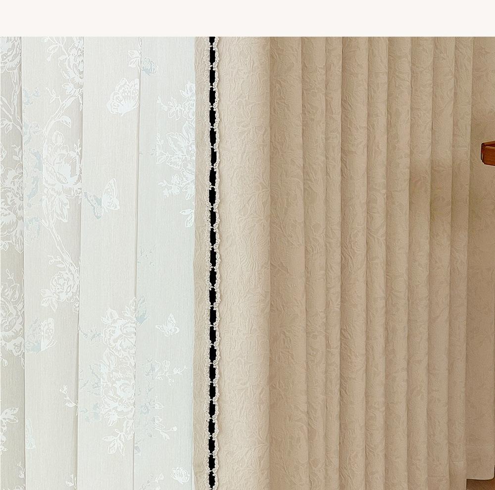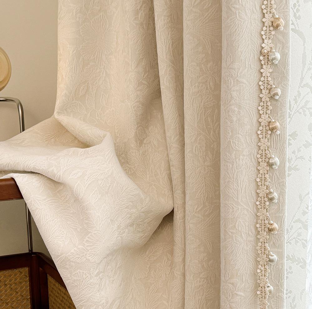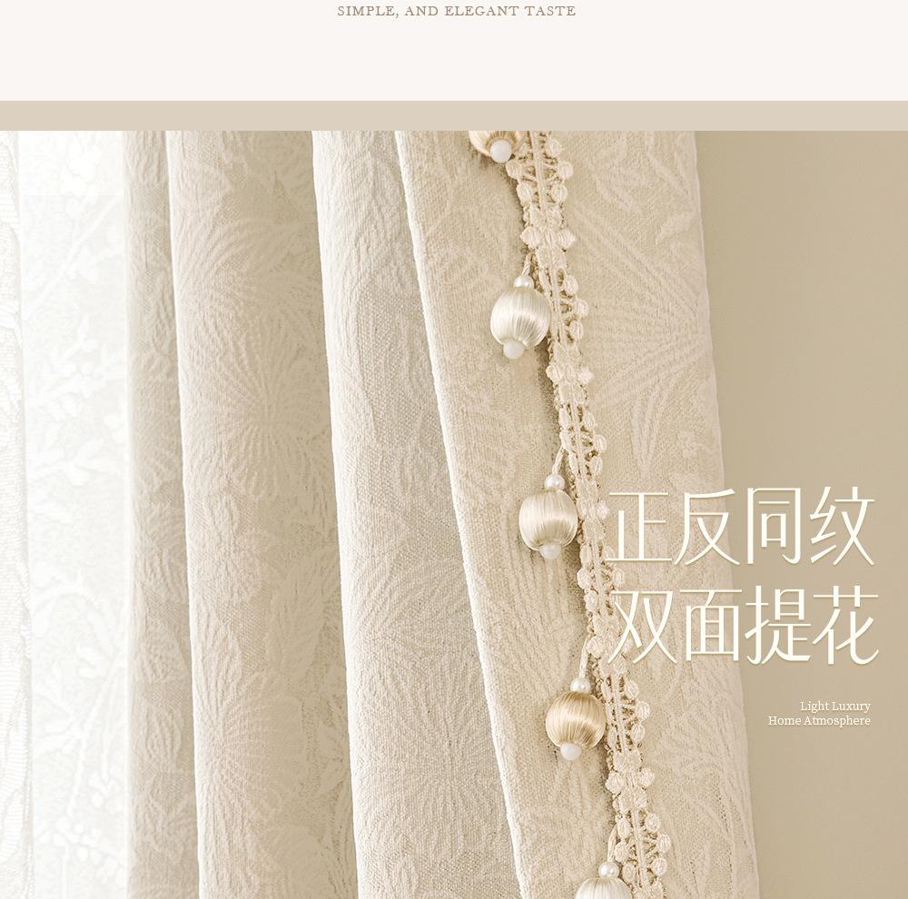 Cortinas Francesas Rosas Jacquard en Relieve Chenilla de Doble Cara Estilo Crema Estilo Vintage Sala de Estar Balcón Tela para Cortinas Shaoxing