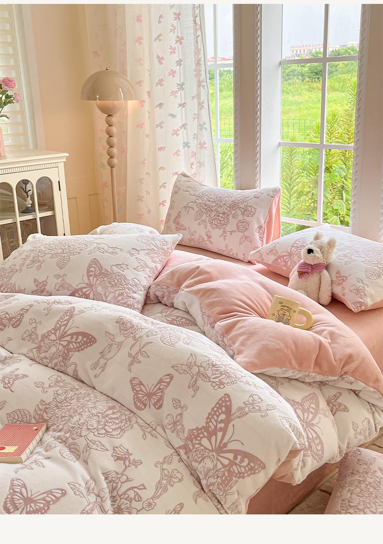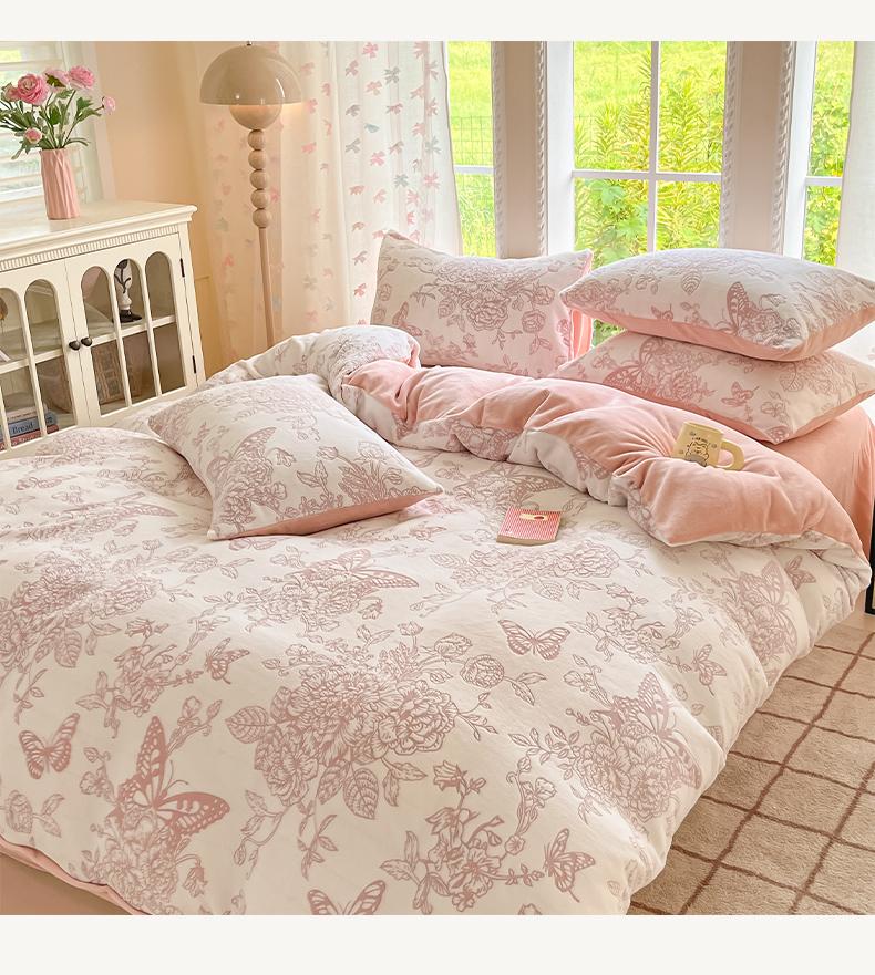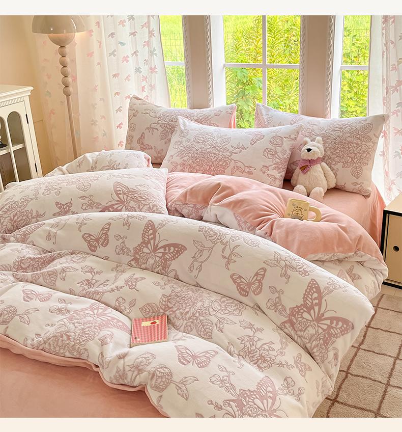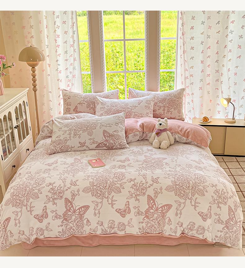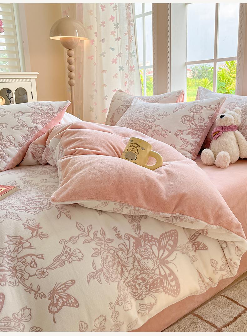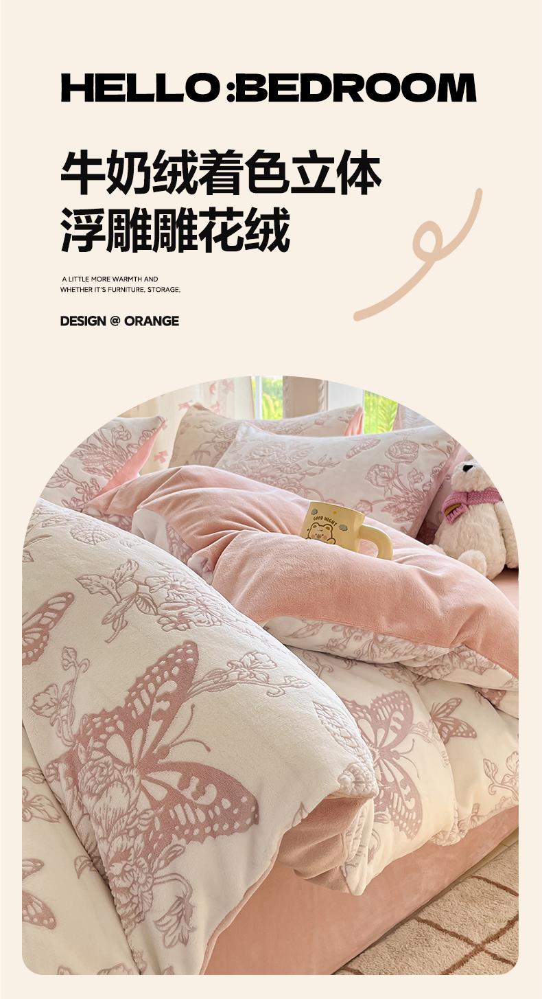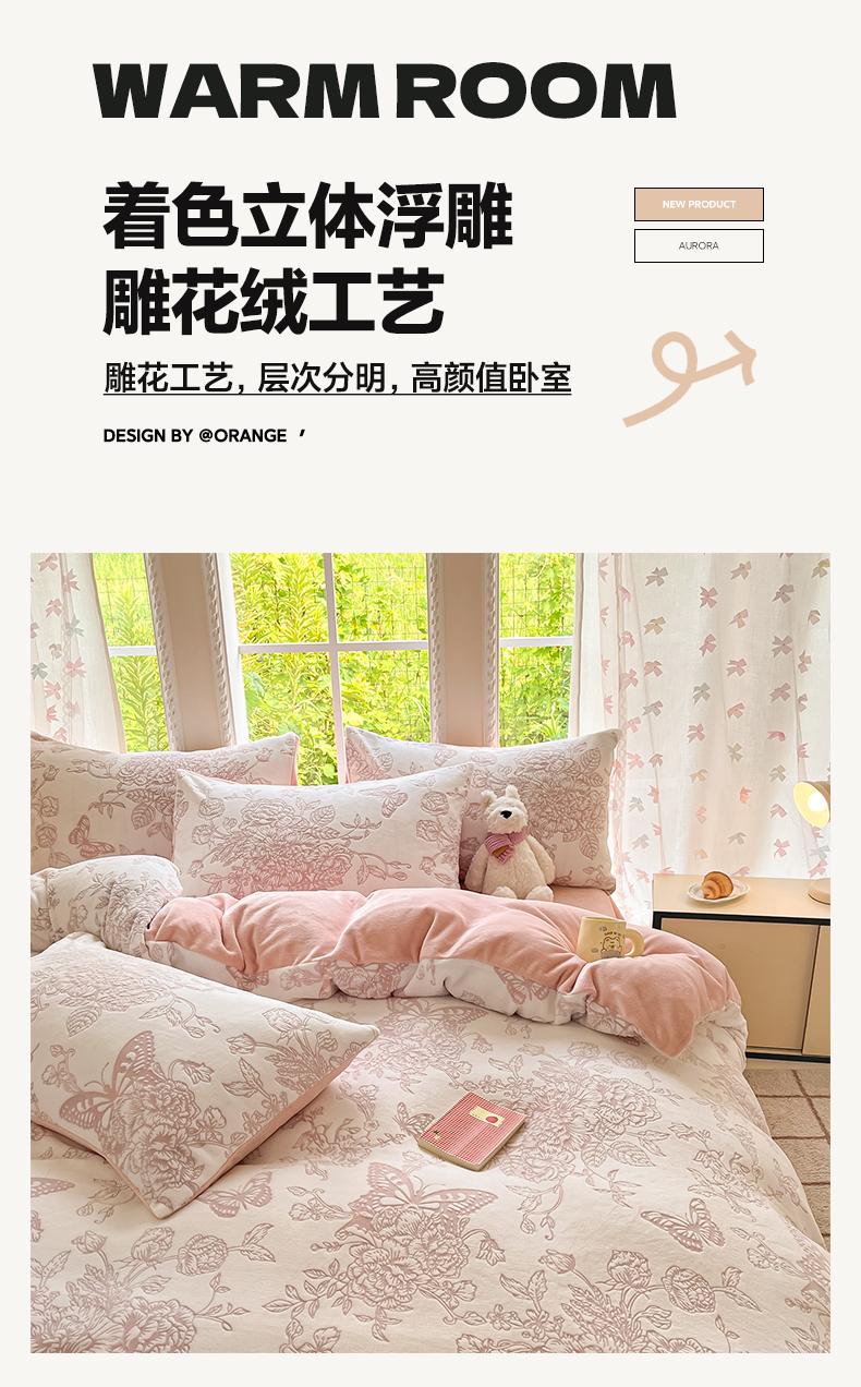 Juego de Cuatro Piezas de Terciopelo de Leche Clase A 2025 Nuevo Invierno Espesado Vellón Coral Tallado Franela Vellón Sábana Cubre Edredón Juego de Tres Piezas