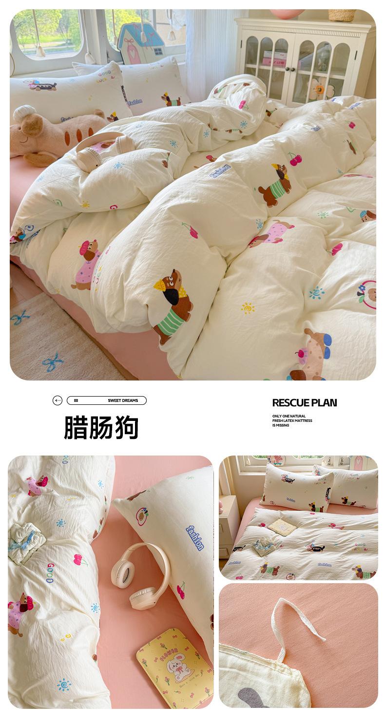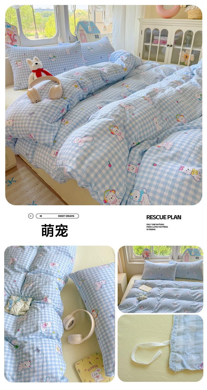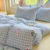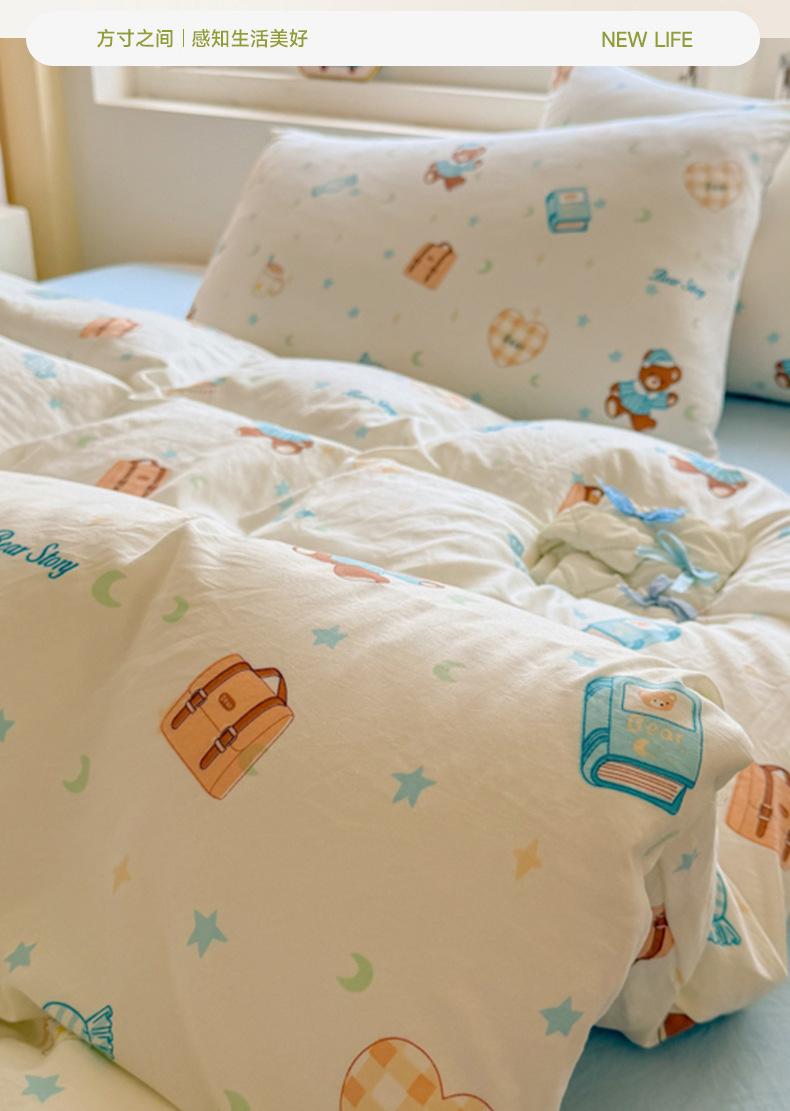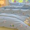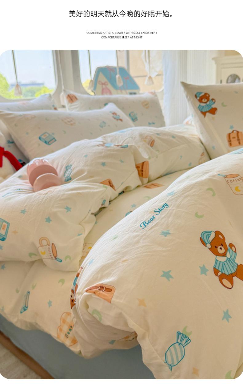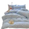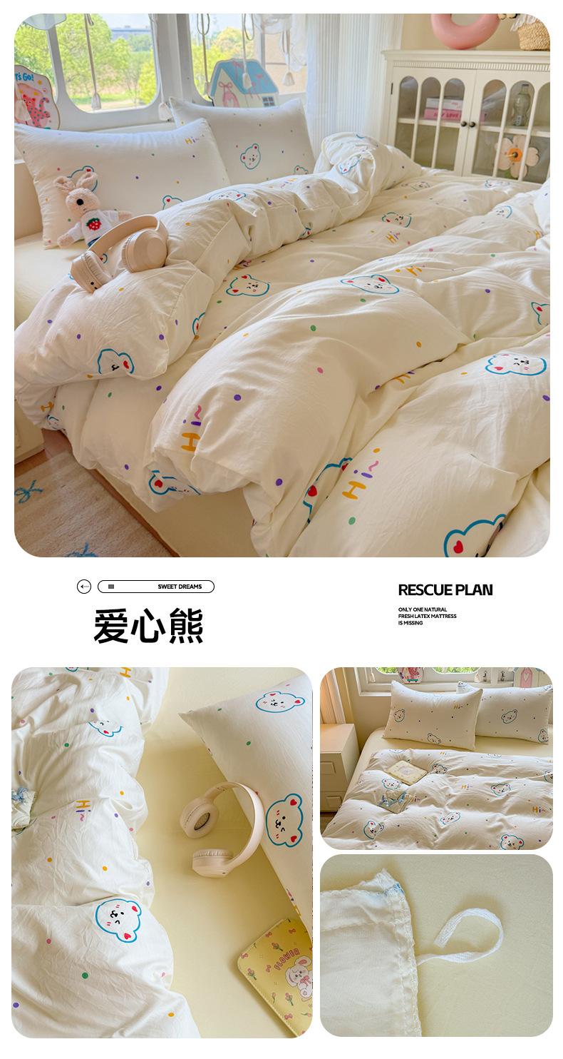 Nuevo Juego de Cuatro Piezas de Algodón Lavado Estilo Fresco ins Estilo Crema Dibujos Animados Algodón Puro Estudiante Dormitorio Sábana Sábana Ajustable Funda Nórdica