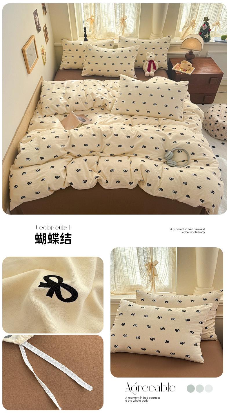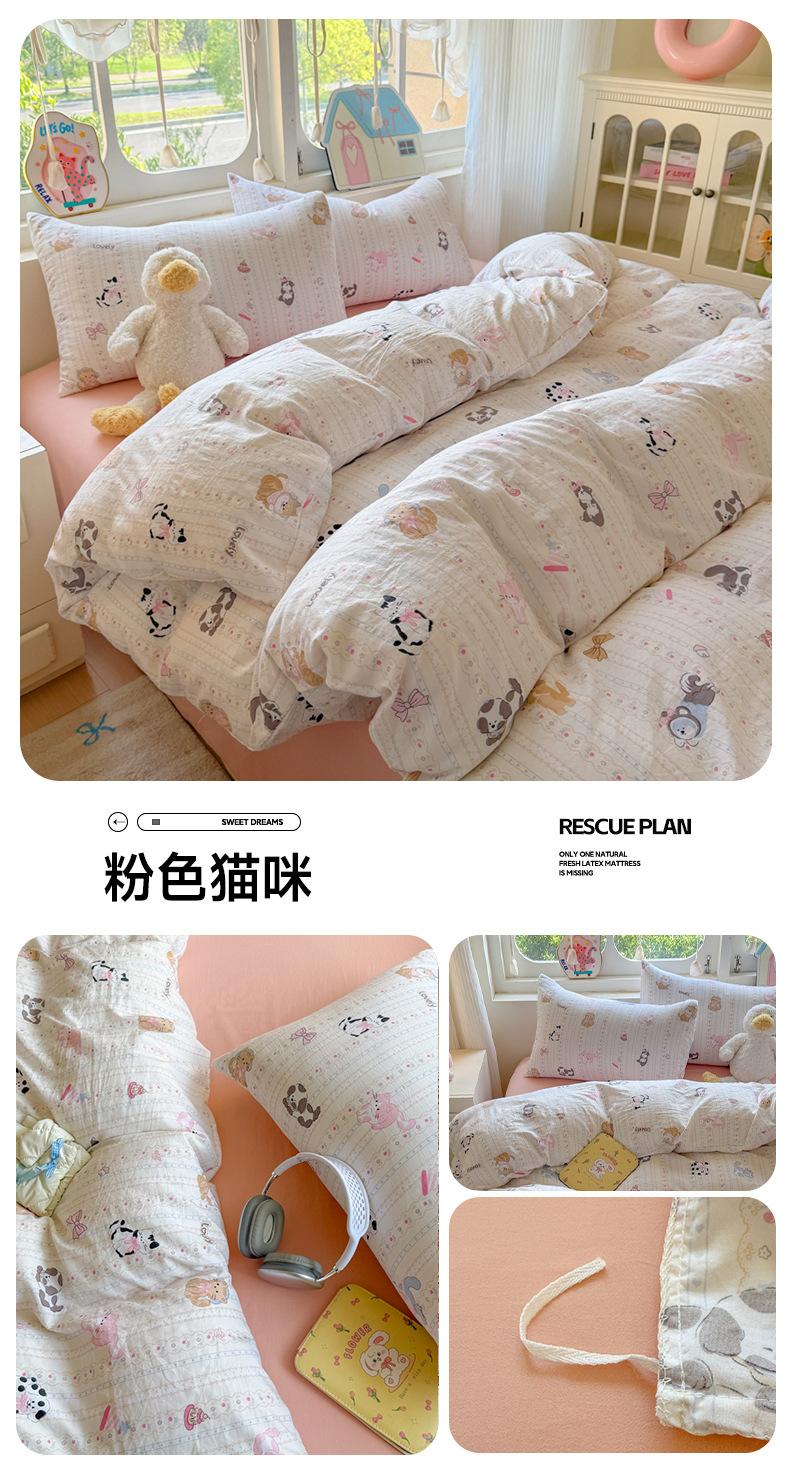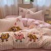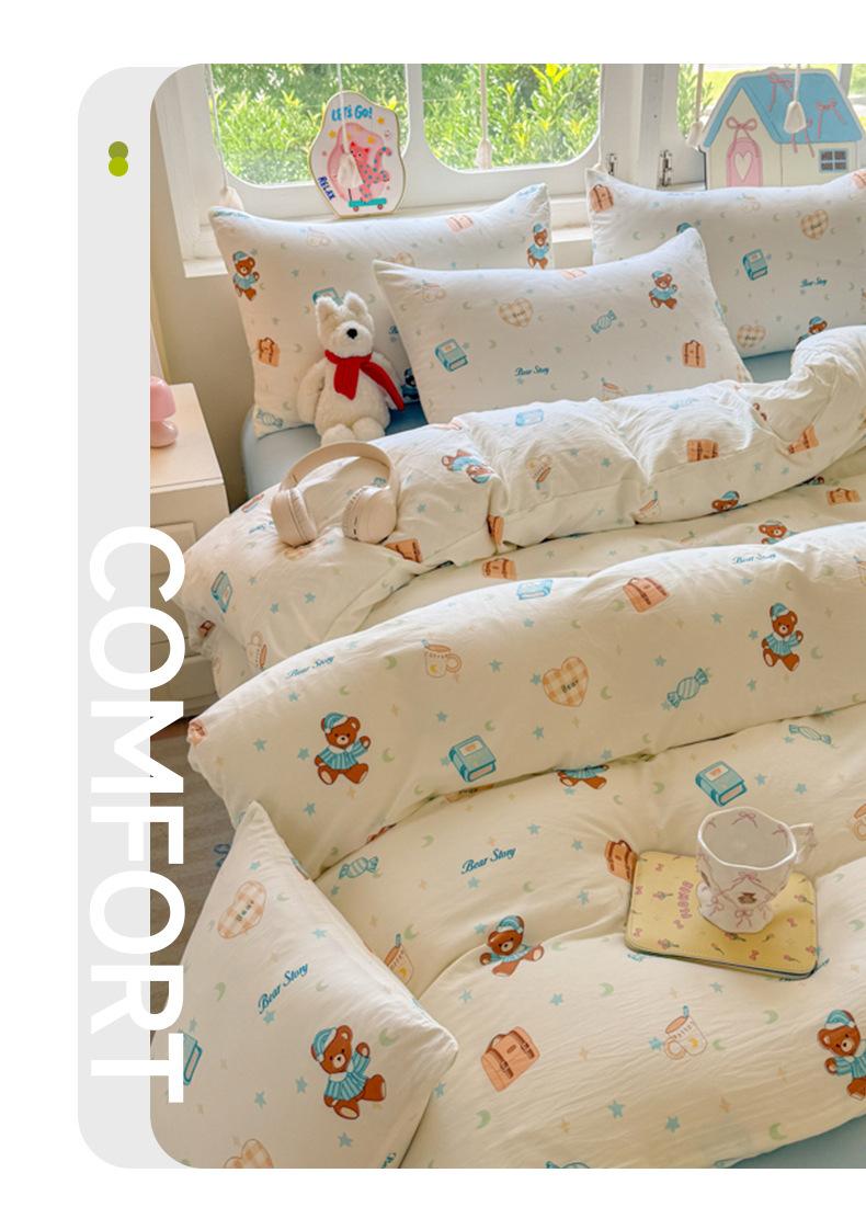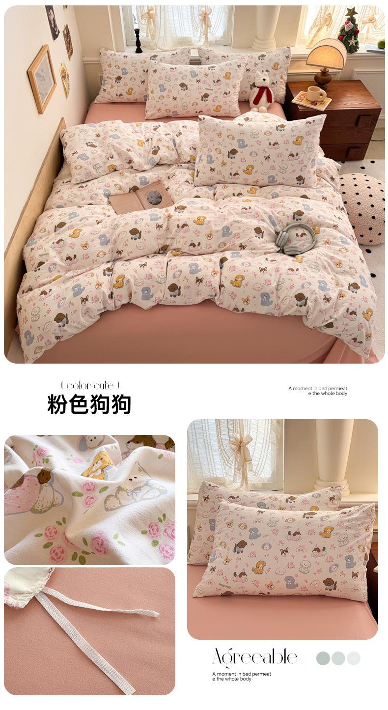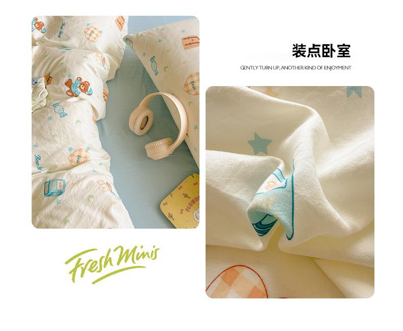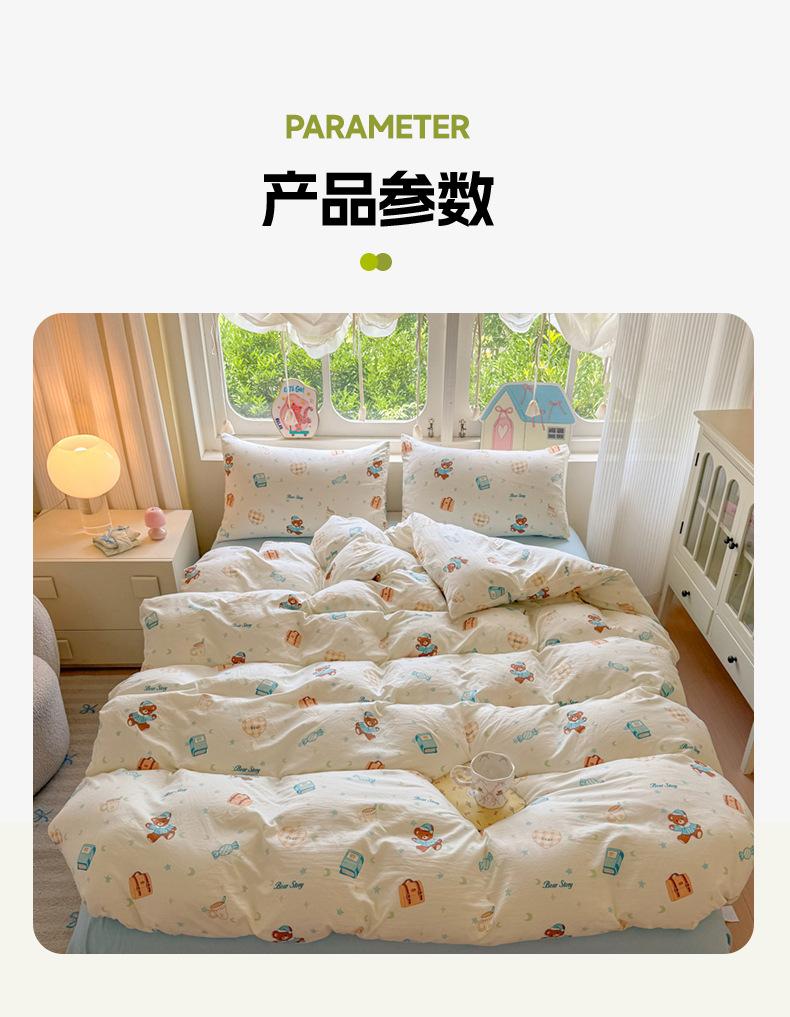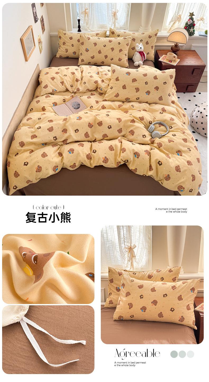 Nuevo Juego de Cuatro Piezas de Algodón Lavado Estilo Fresco ins Estilo Crema Dibujos Animados Algodón Puro Estudiante Dormitorio Sábana Sábana Ajustable Funda Nórdica