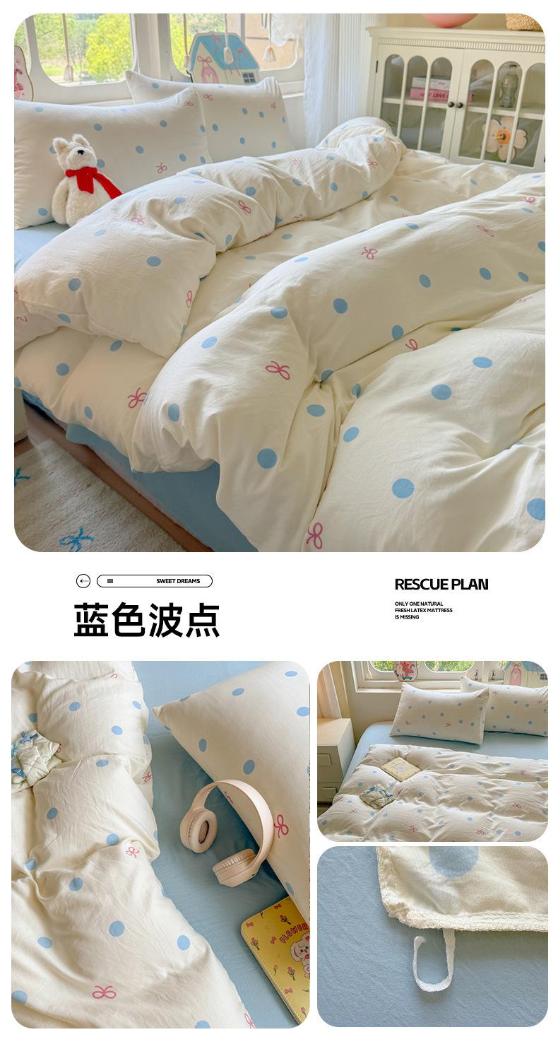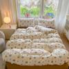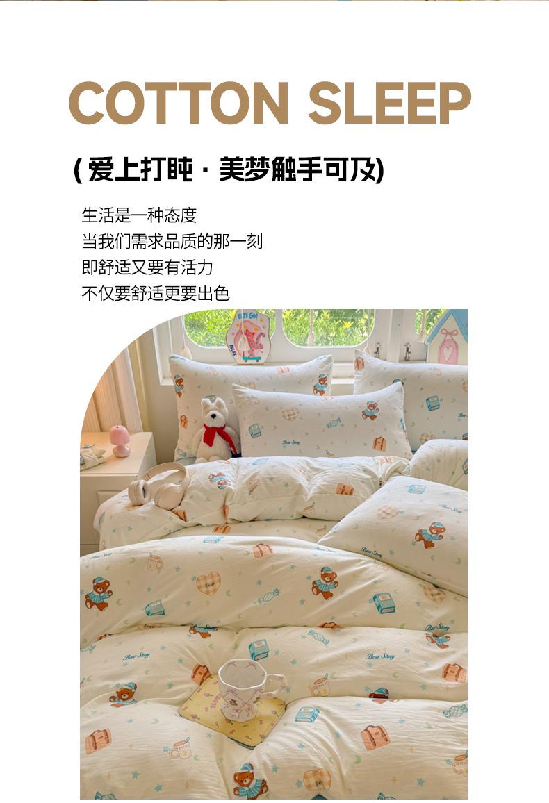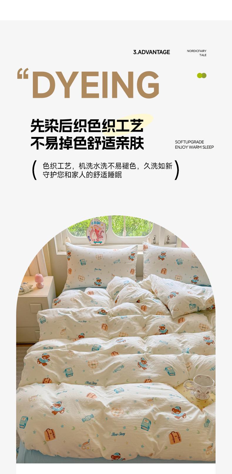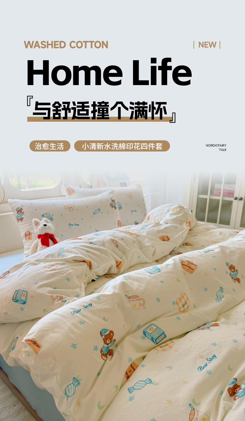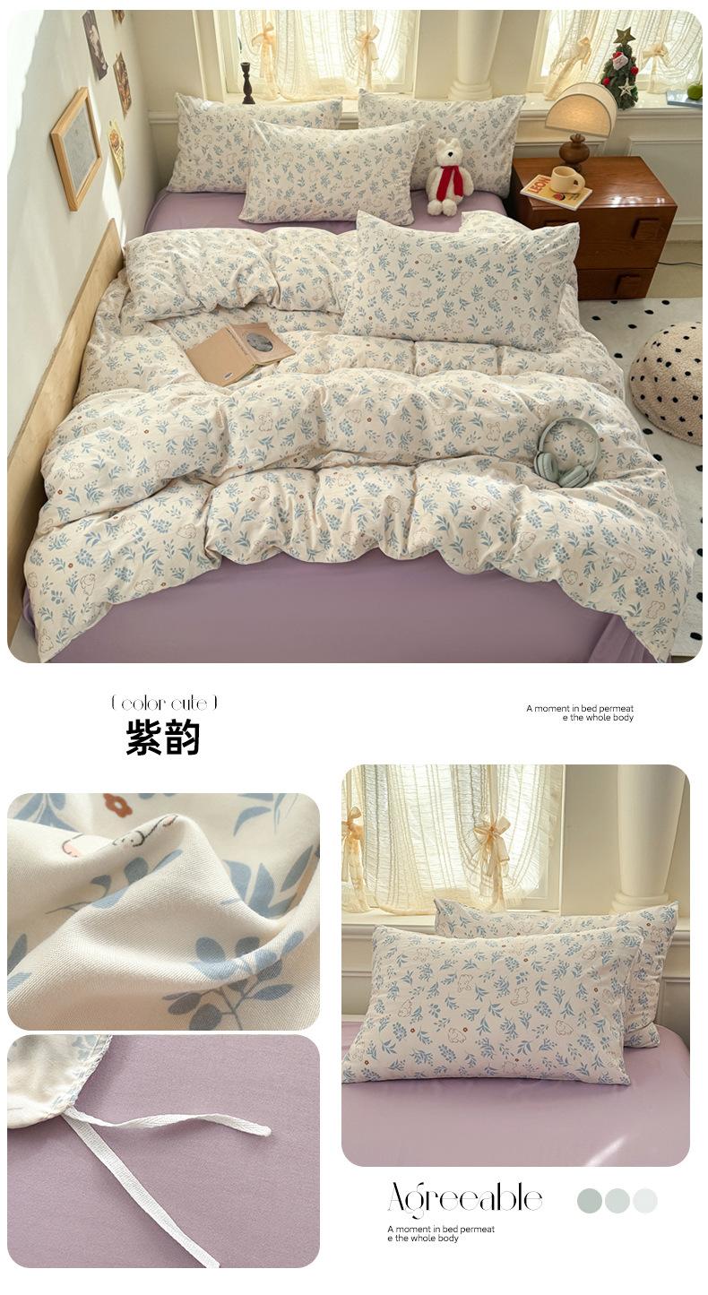 Nuevo Juego de Cuatro Piezas de Algodón Lavado Estilo Fresco ins Estilo Crema Dibujos Animados Algodón Puro Estudiante Dormitorio Sábana Sábana Ajustable Funda Nórdica