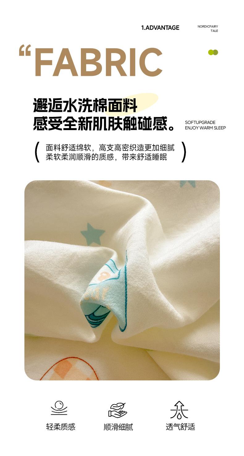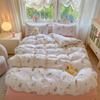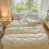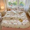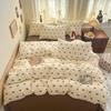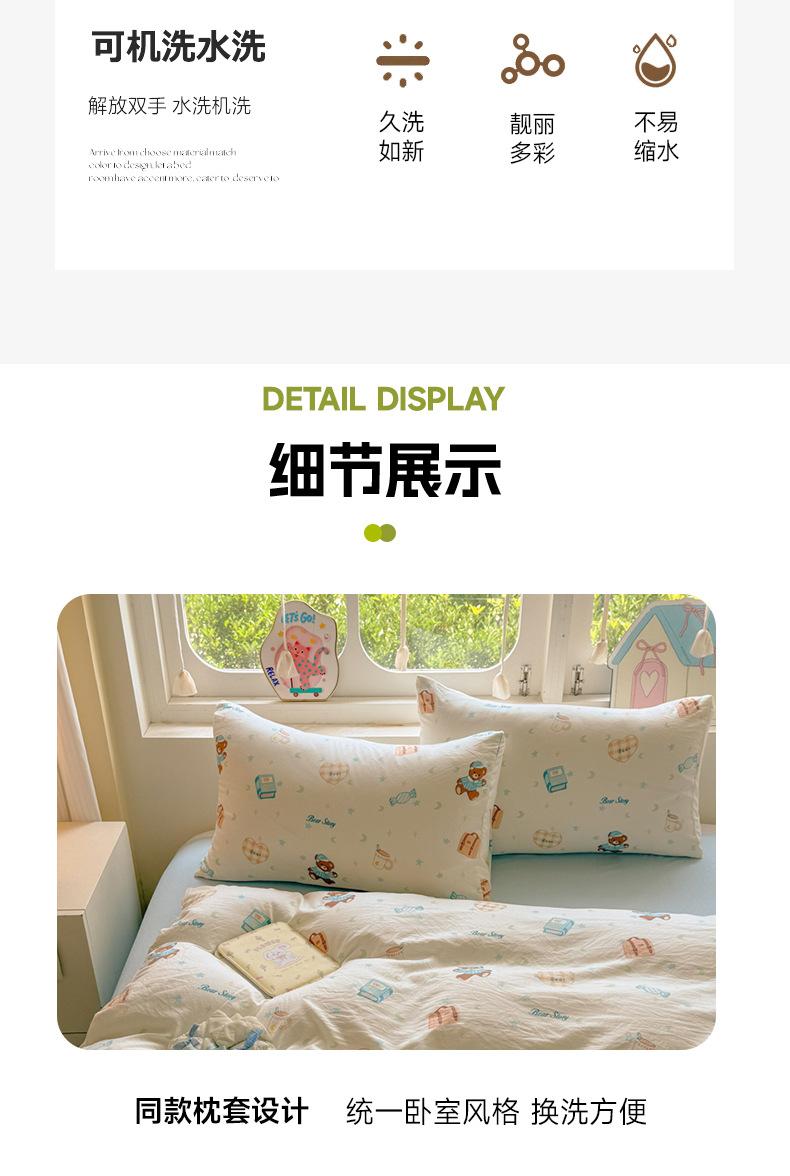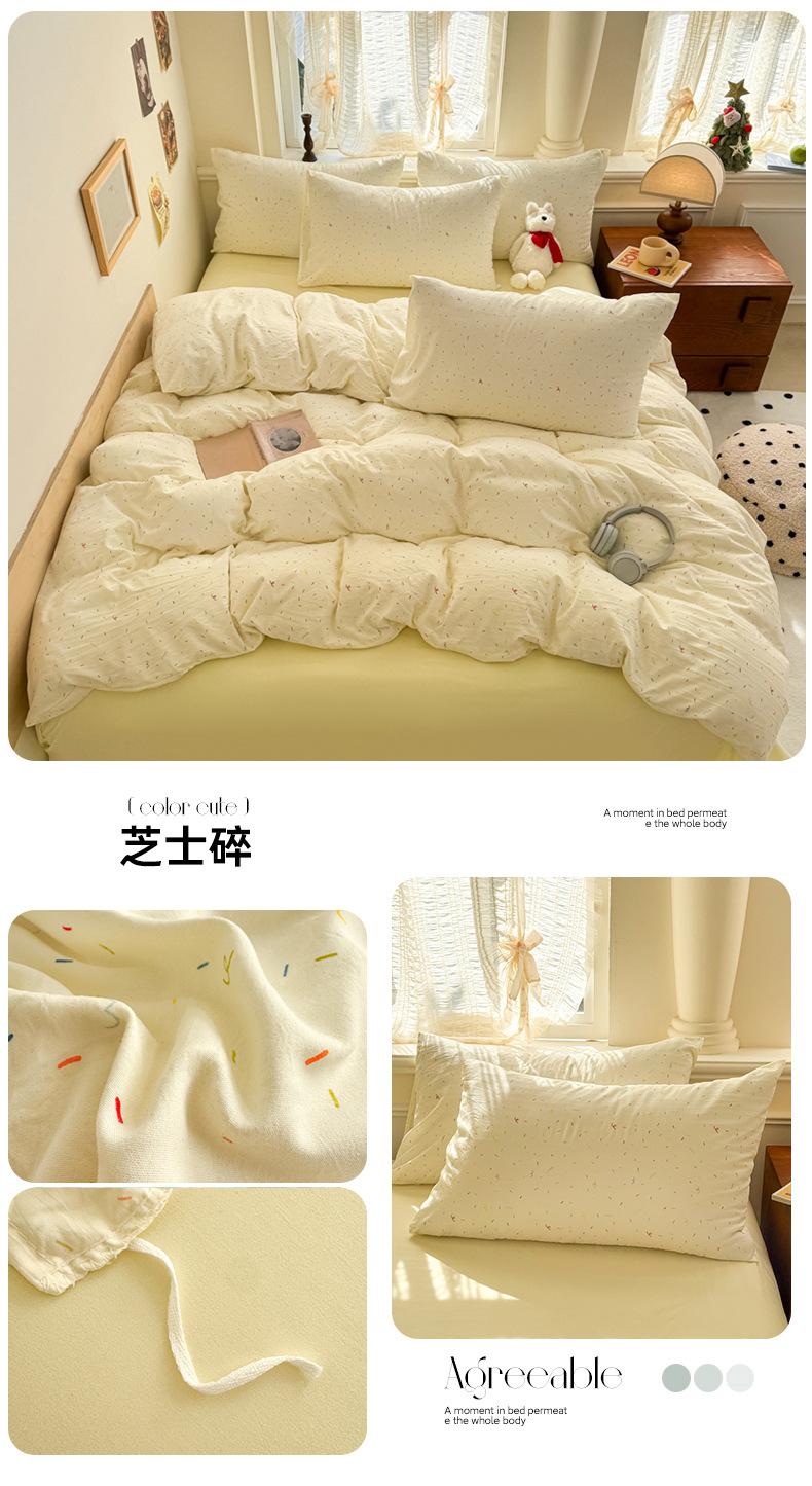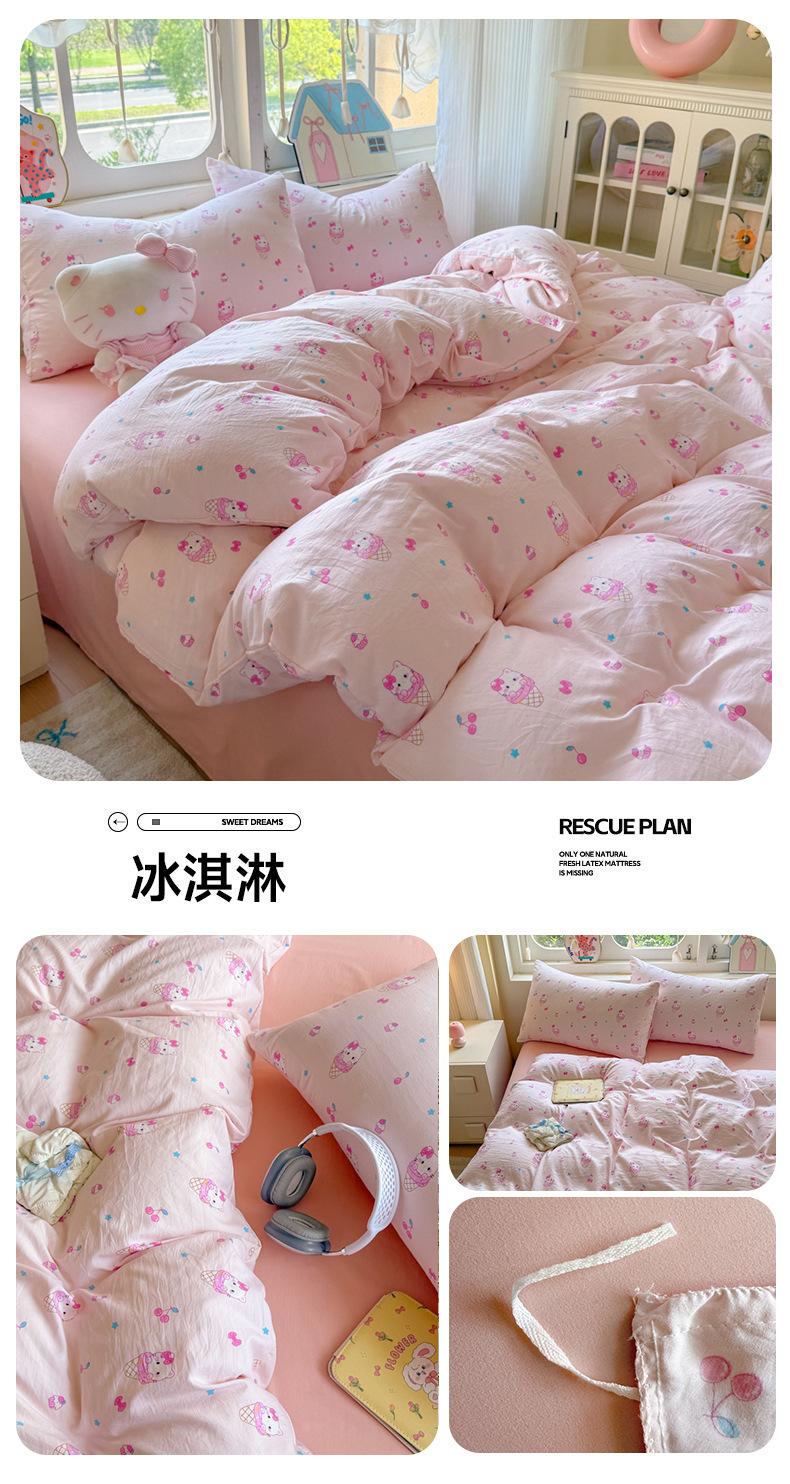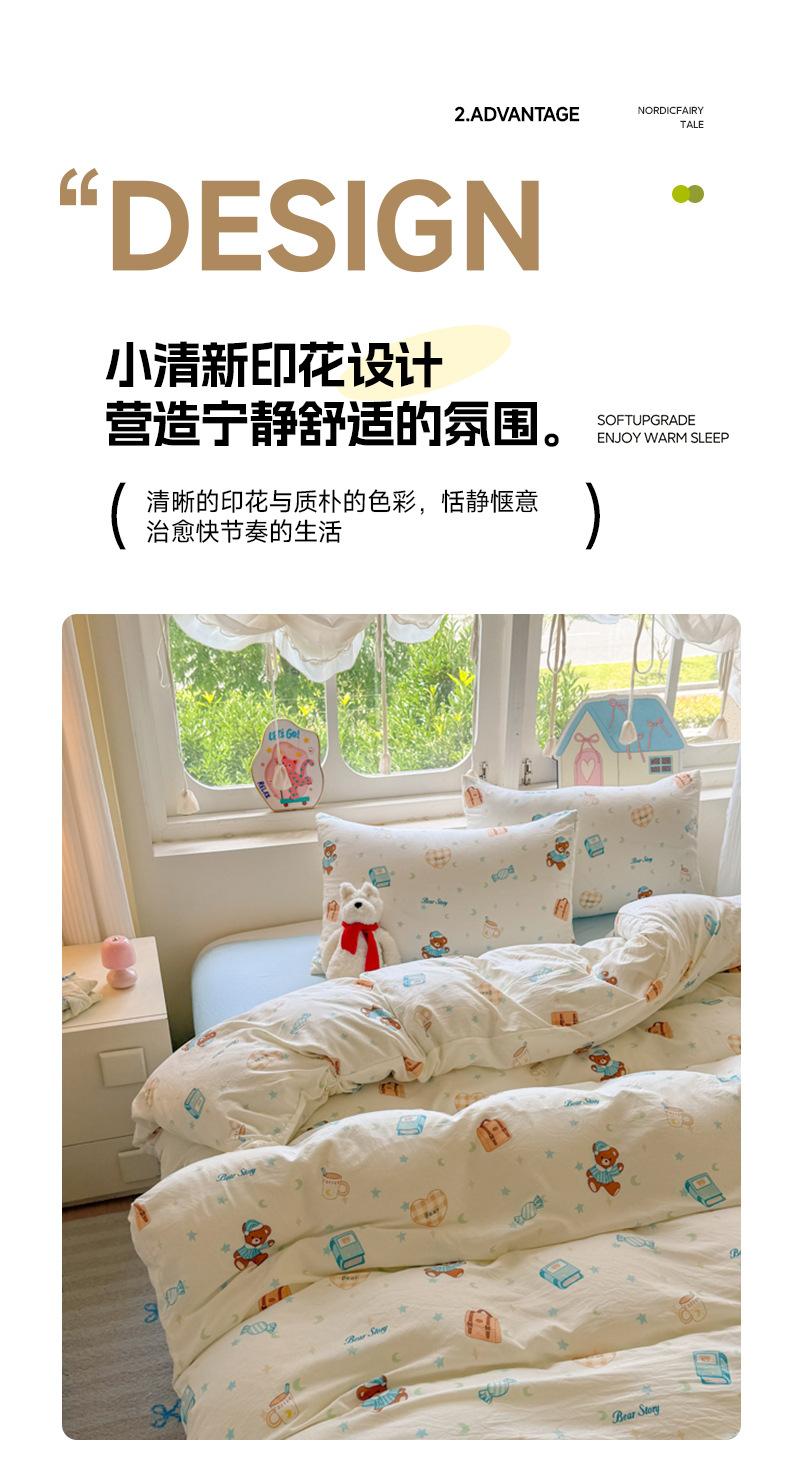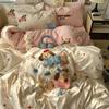 Nuevo Juego de Cuatro Piezas de Algodón Lavado Estilo Fresco ins Estilo Crema Dibujos Animados Algodón Puro Estudiante Dormitorio Sábana Sábana Ajustable Funda Nórdica