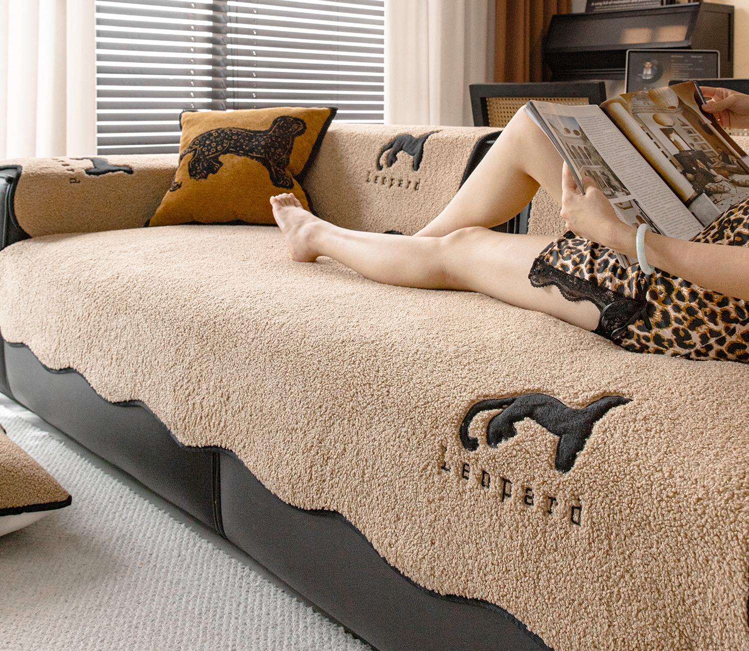 Cojín de Sofá de Felpa Simple 2025 Nuevo Borde Ondulado Irregular Fijo Antideslizante Fila Recta Sala de Estar Funda Almohadilla para Sofá