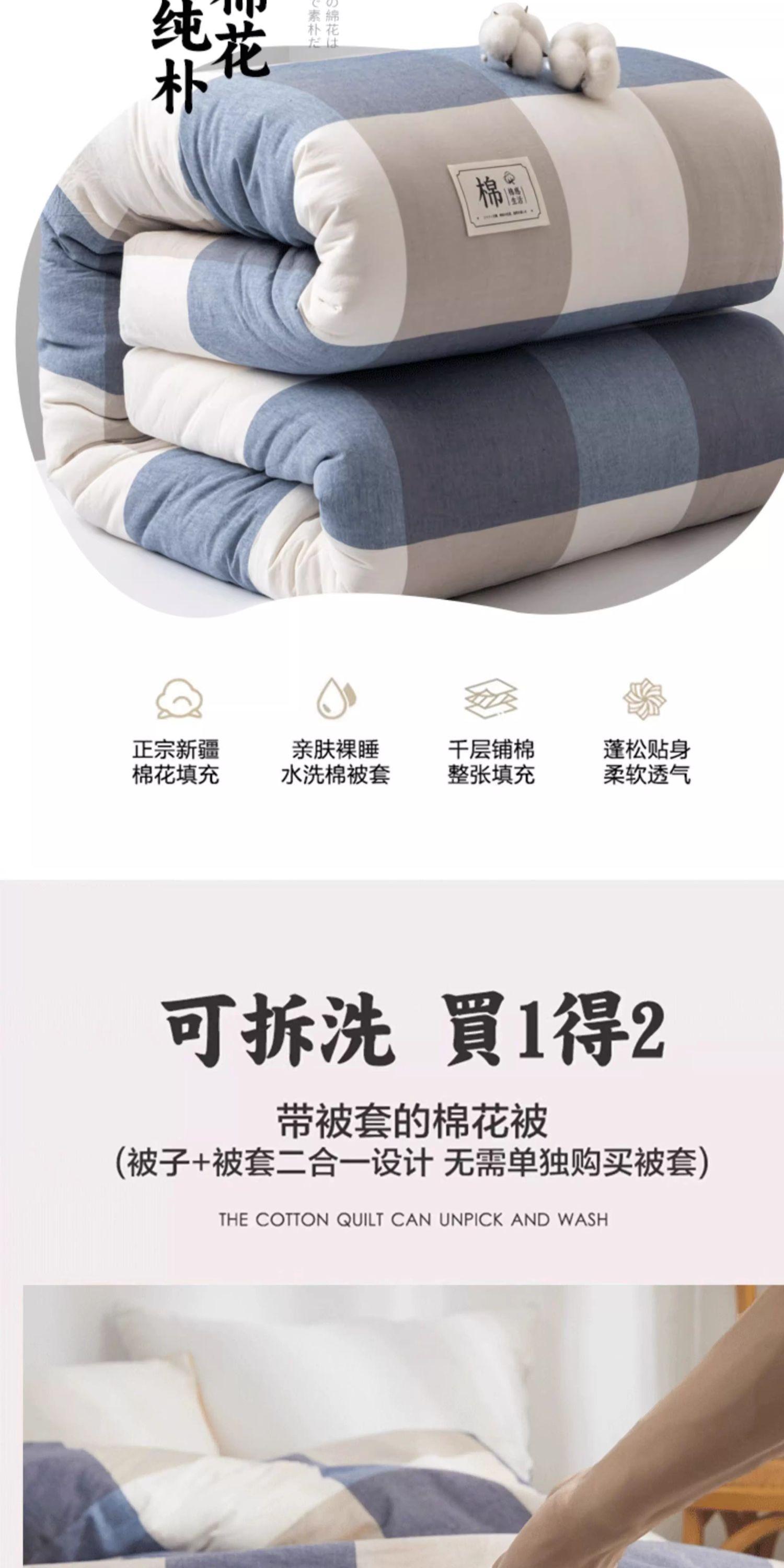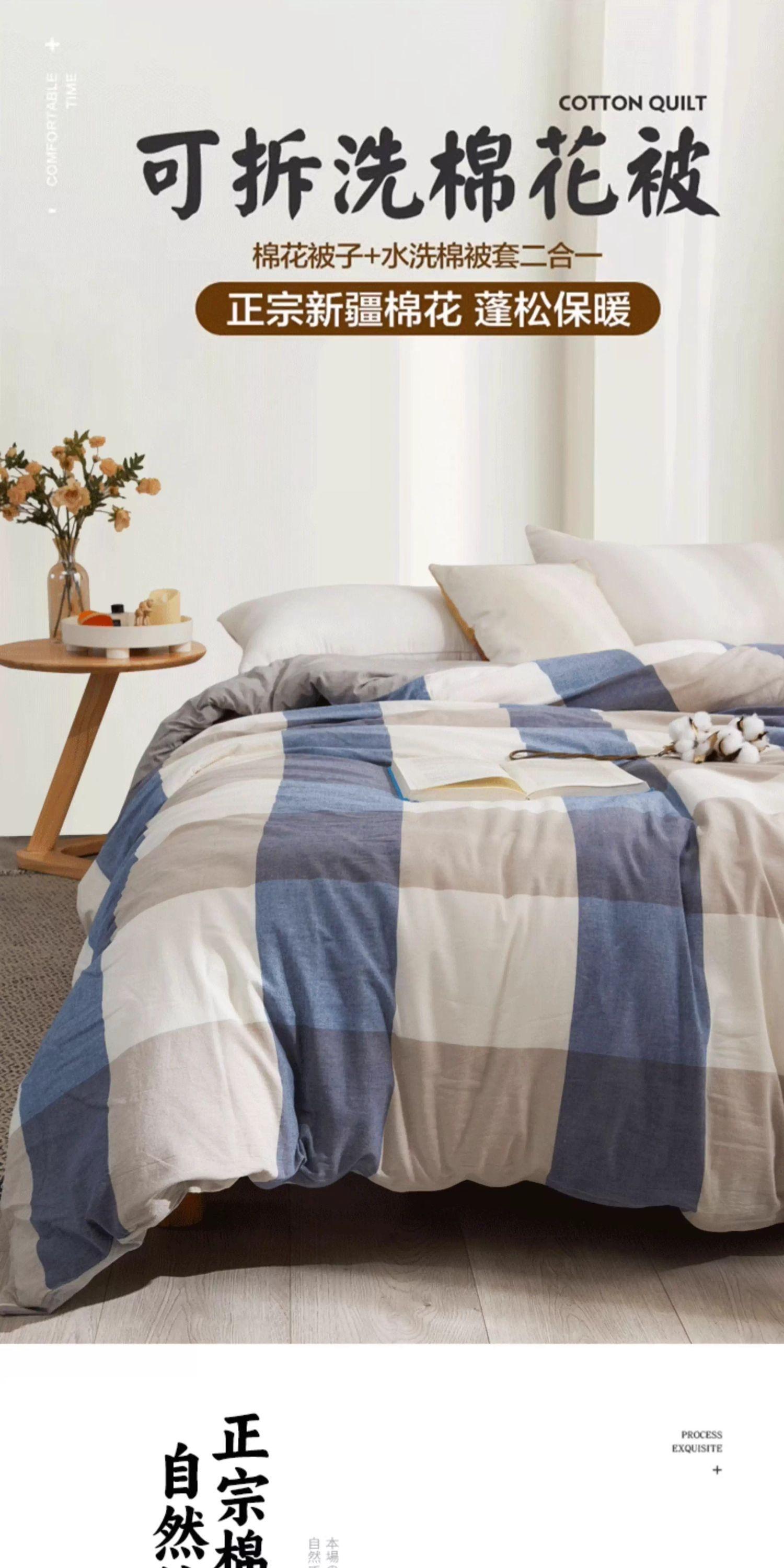 Blue small grid [removable and washable quilt cover + Xinjiang cotton quilt core], Blue Coffee Large Check【Rem...