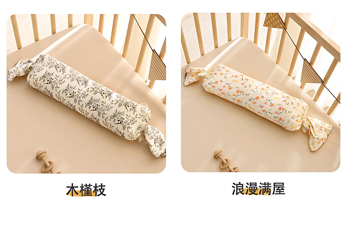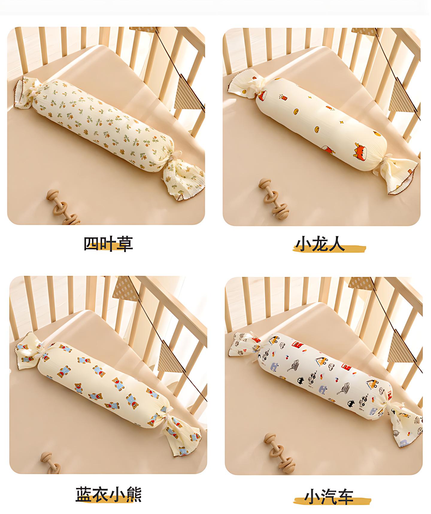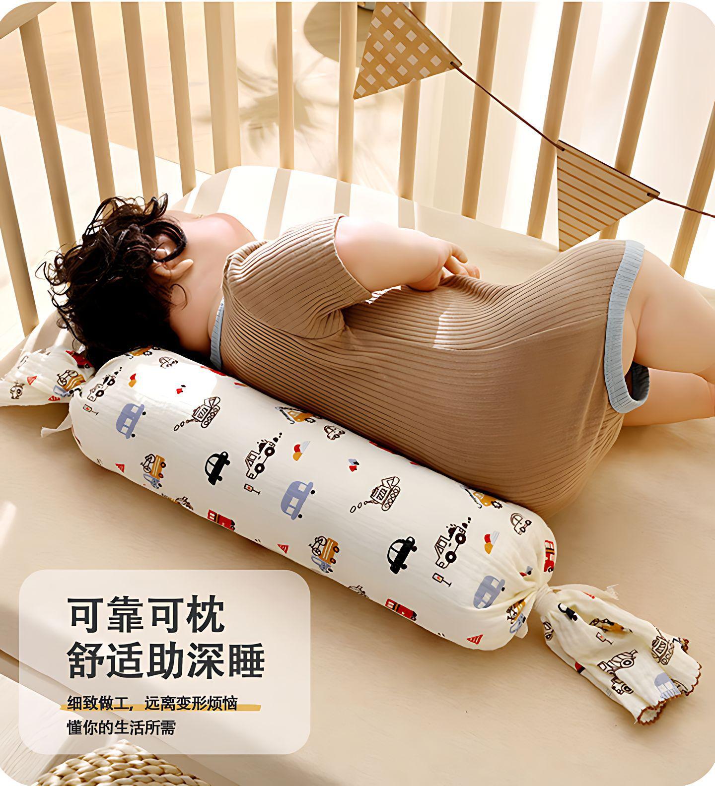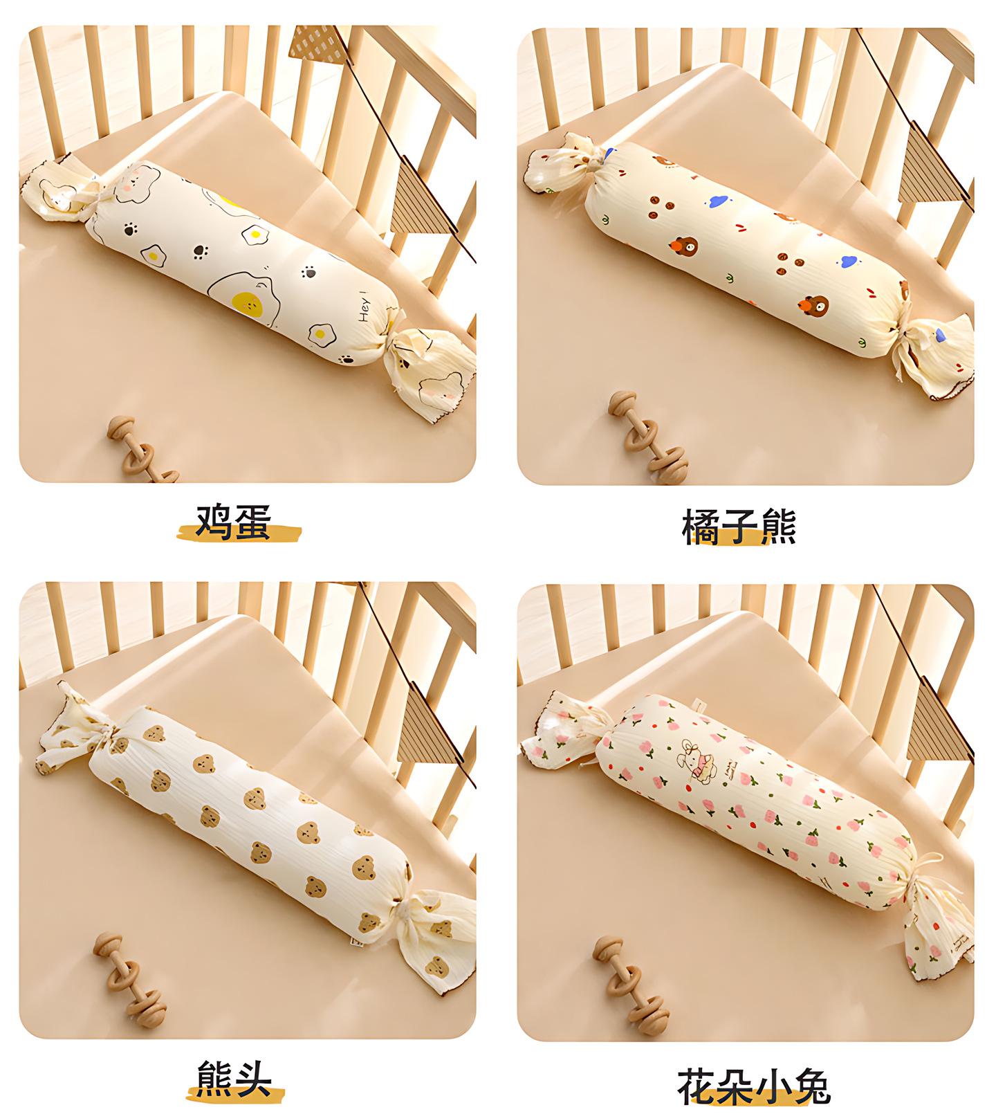 Almohada de Confort para Bebé Almohada de Caramelo con Respaldo para Dormir de Lado para Bebé Gasa Removible Lavable Anticolisión Almohada Cilíndrica de Tira Larga E18