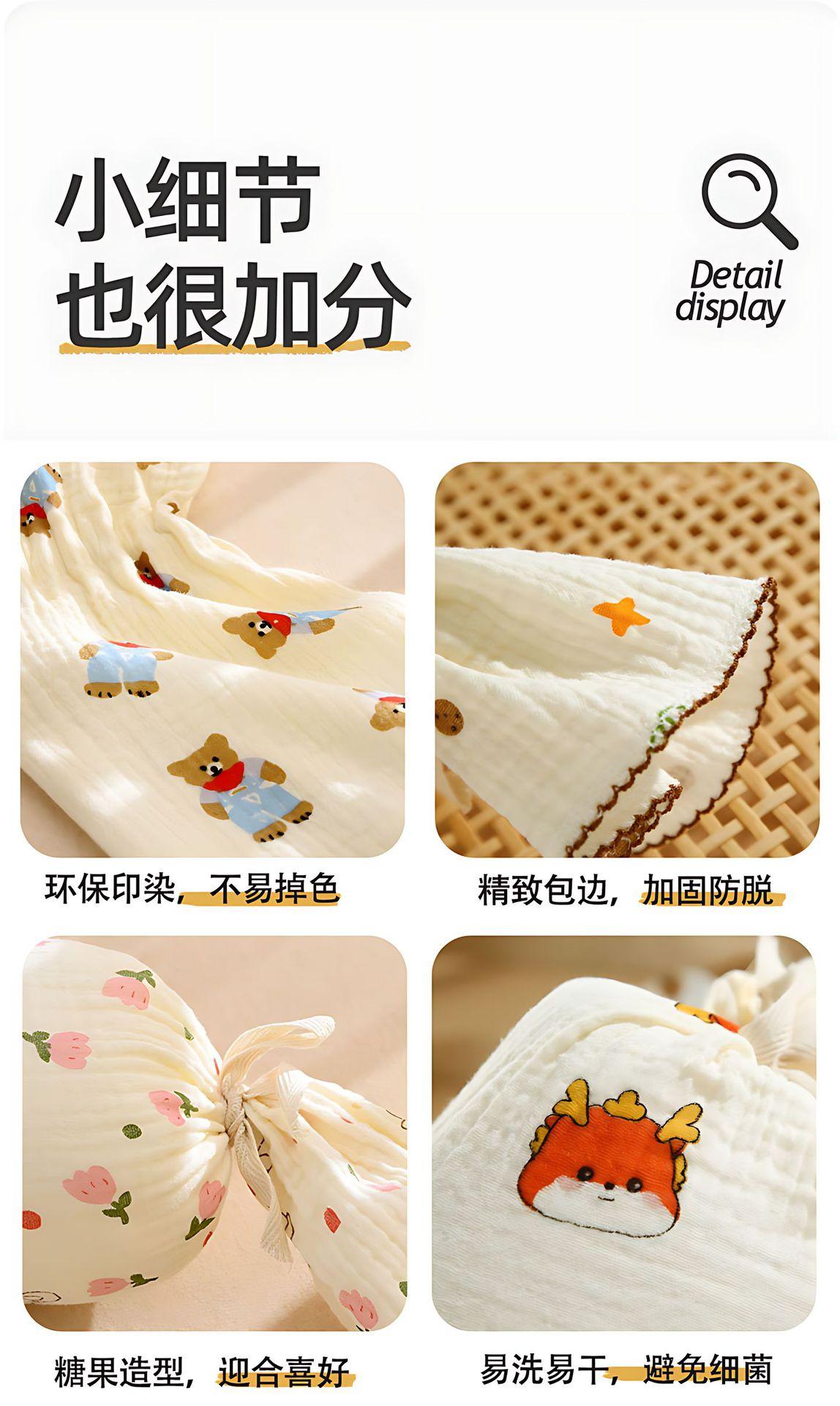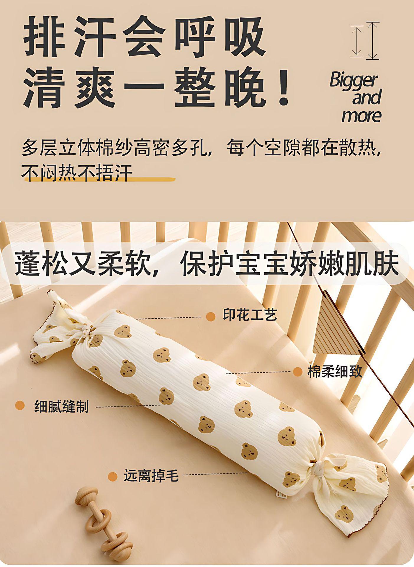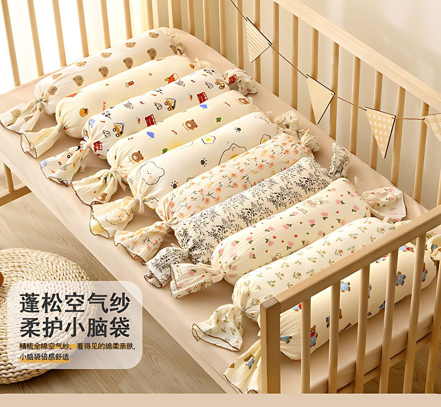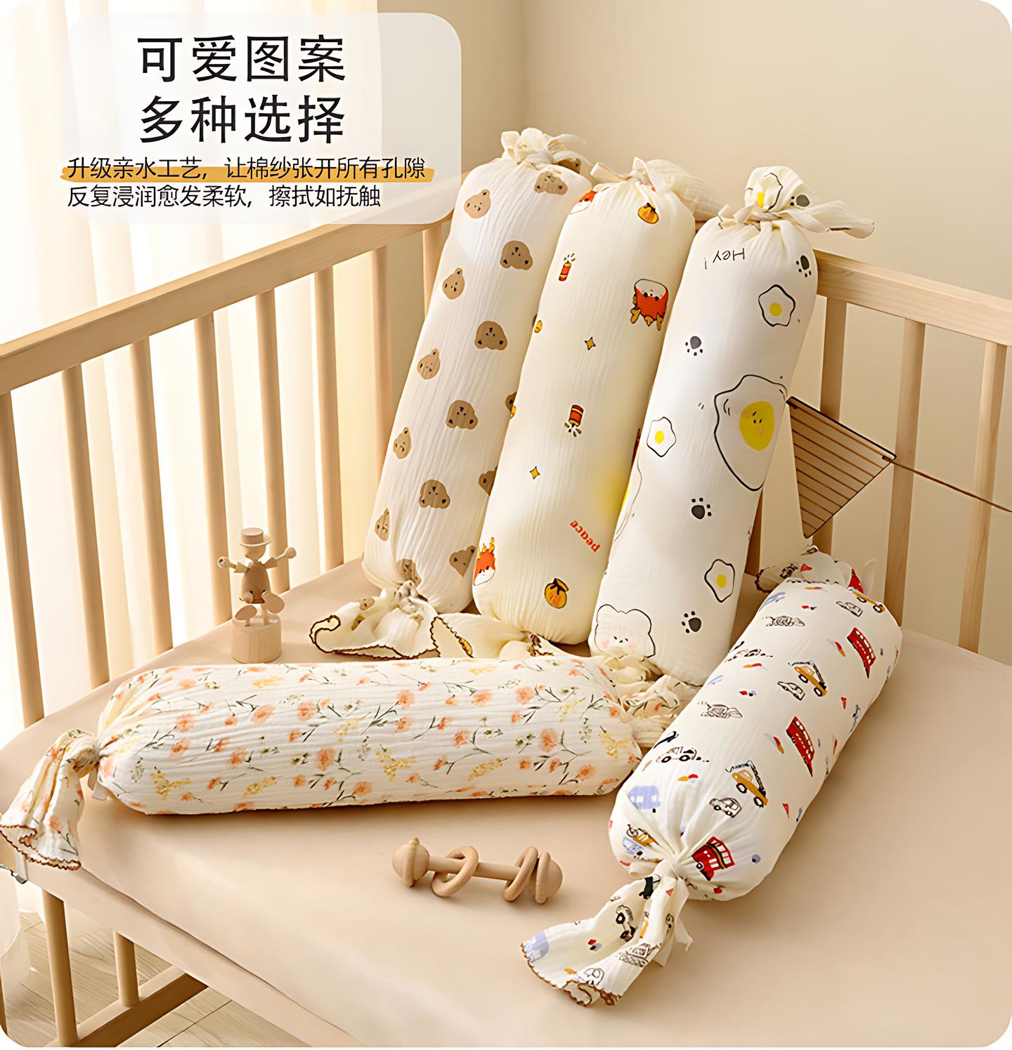 Almohada de Confort para Bebé Almohada de Caramelo con Respaldo para Dormir de Lado para Bebé Gasa Removible Lavable Anticolisión Almohada Cilíndrica de Tira Larga E18