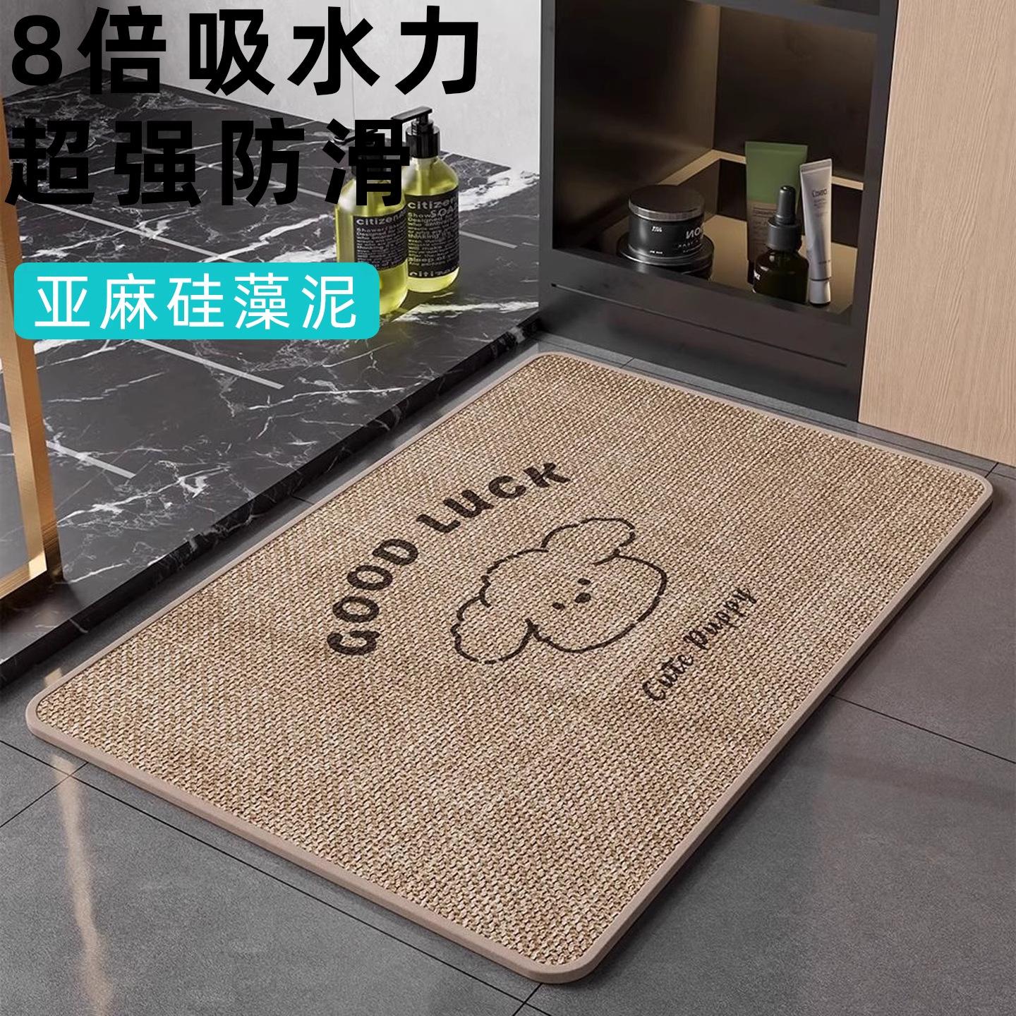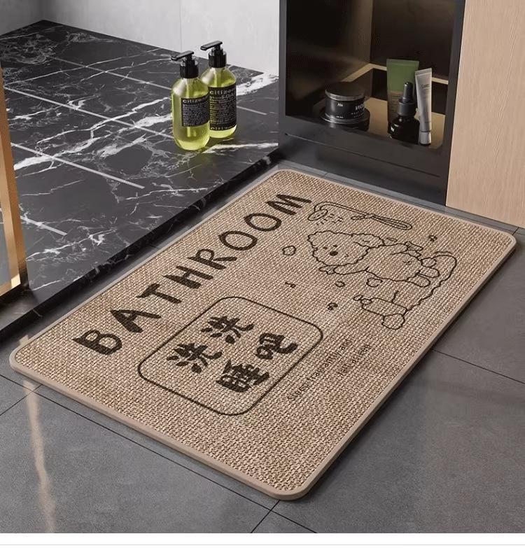 Tapete de baño absorbente para piso transfronterizo, tapete para pies antideslizante para inodoro, alfombra para inodoro con tejido de imitación lino, tapete para puerta de baño