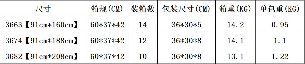 3663【91cm*160cm】, 3674【91cm*188cm】, 3682【91cm*208cm】