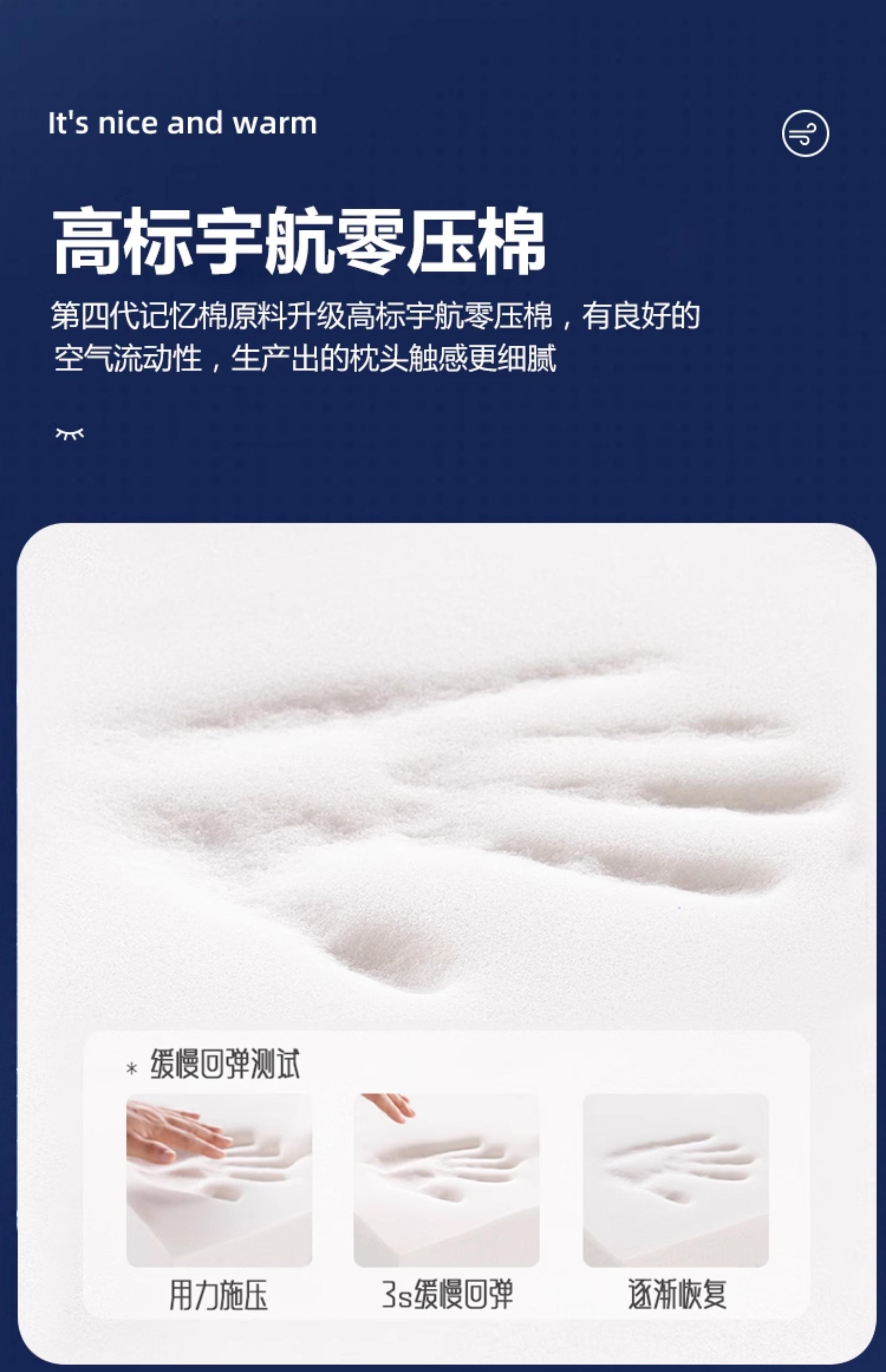 Almohada de Espuma Viscoelástica de Rebote Lento Espacial Cero Presión Núcleo Tracción Hotel Dormitorio Almohada Soporte Columna Cervical Ayuda para Dormir para Uso Doméstico
