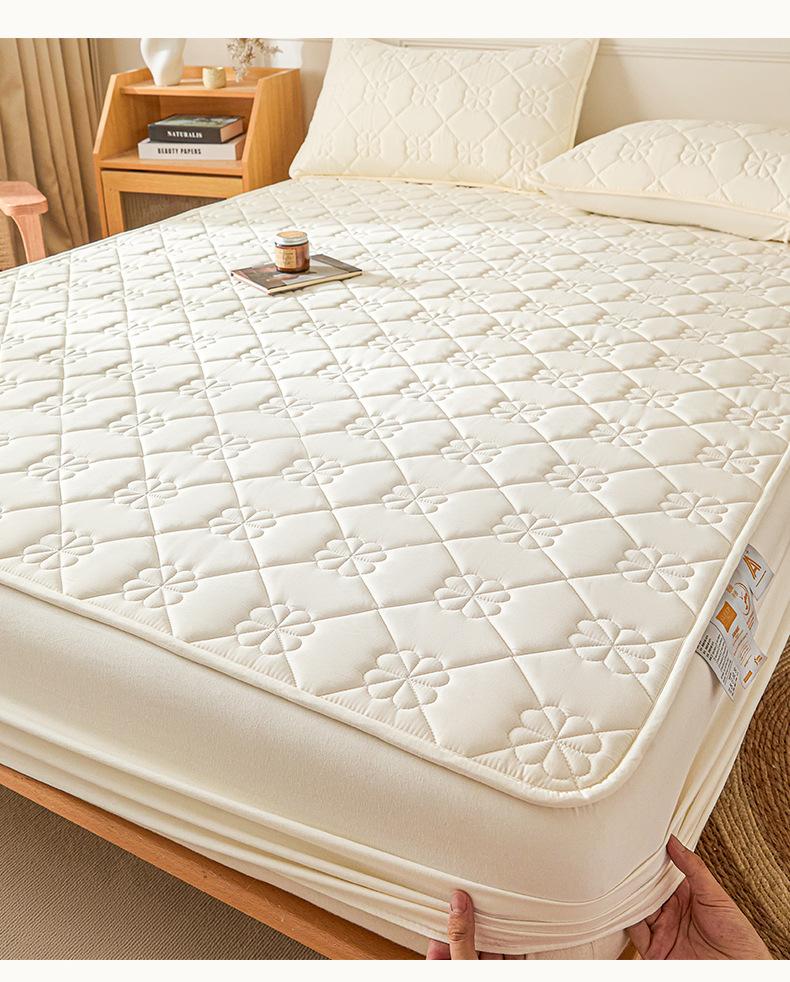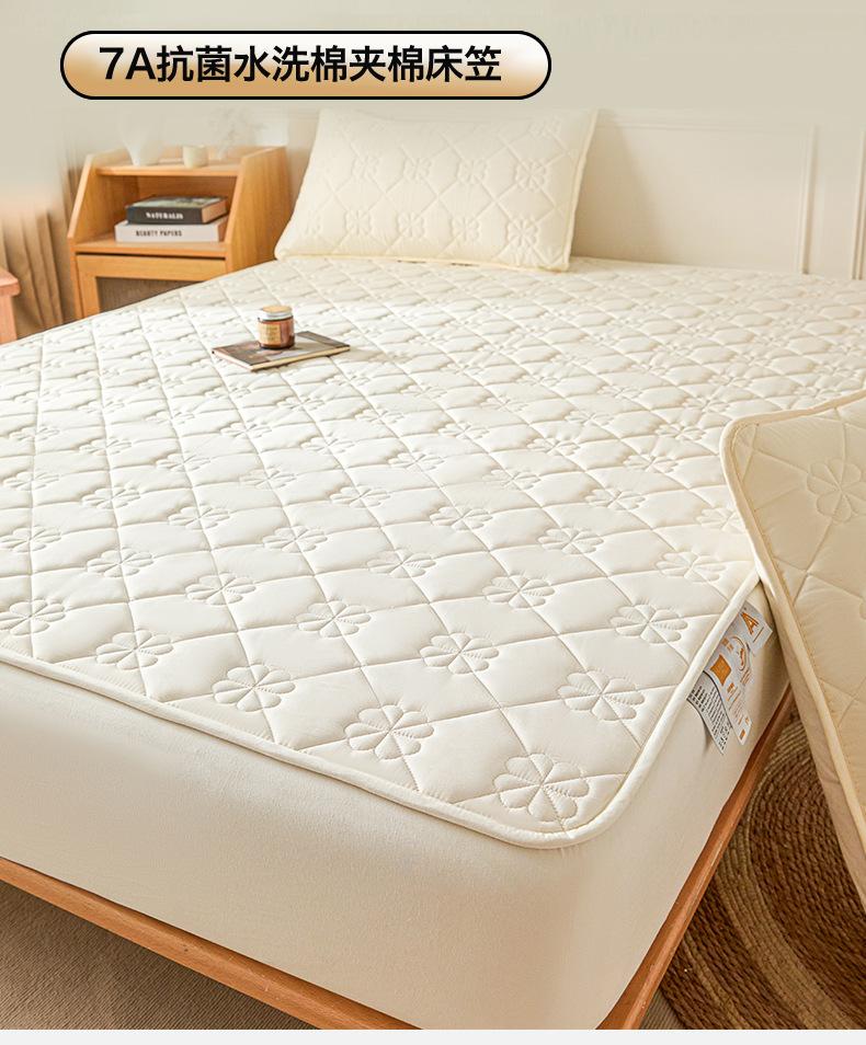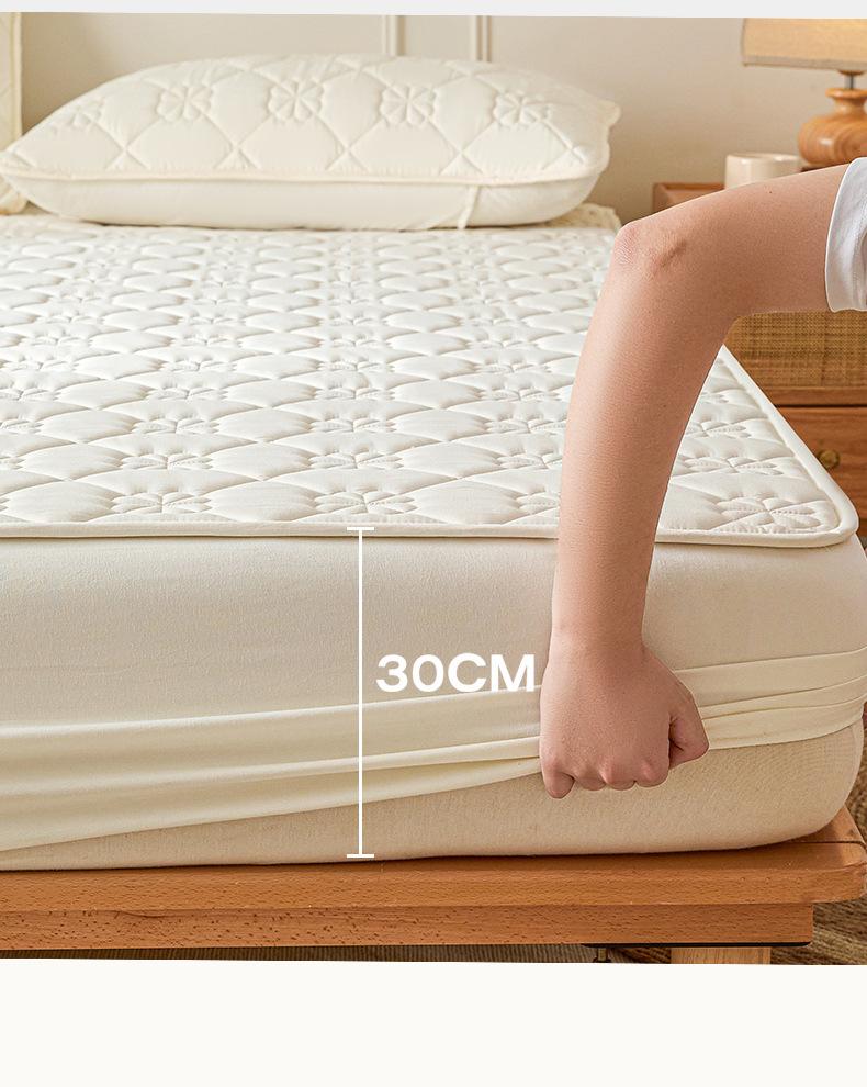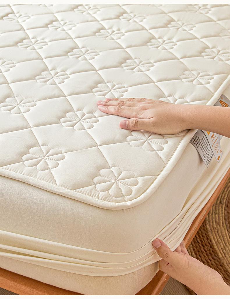 Sábana Ajustable Acolchada de Algodón Lavado Clase A Color Sólido Espesada Envoltura Completa Protector de Colchón Cómoda Transpirable Antideslizante Cubierta Antipolvo