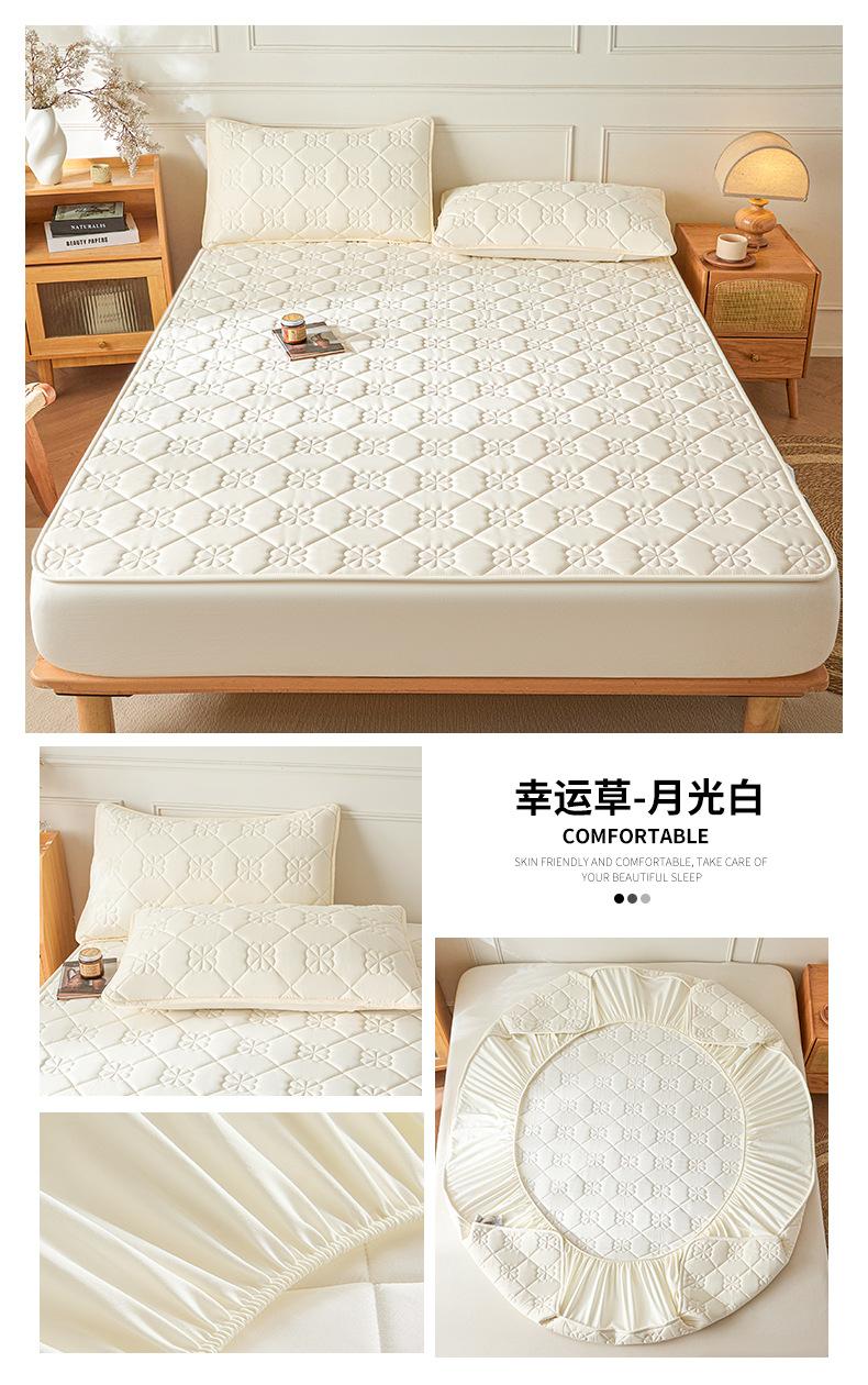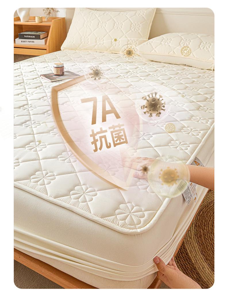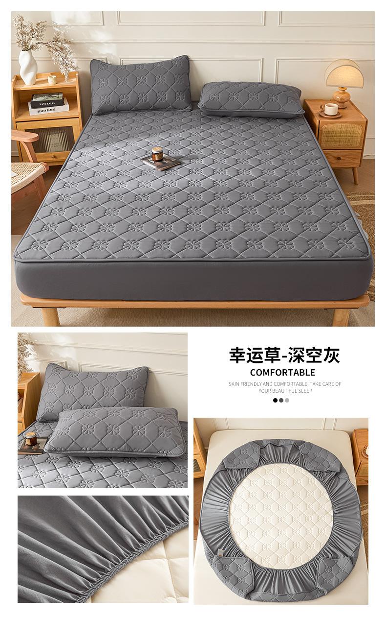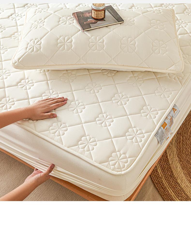 Sábana Ajustable Acolchada de Algodón Lavado Clase A Color Sólido Espesada Envoltura Completa Protector de Colchón Cómoda Transpirable Antideslizante Cubierta Antipolvo