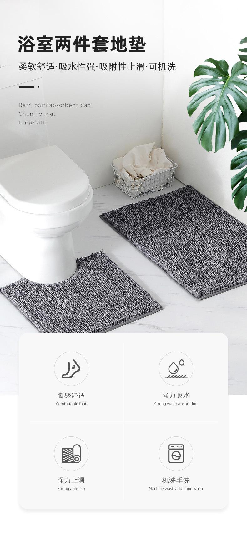 Alfombras de Piso de Baño de Felpa de Chenilla de Venta Caliente Transfronteriza Juego de Dos Piezas Alfombras de Baño Absorbentes Antideslizantes Alfombras de Pies de Chenilla
