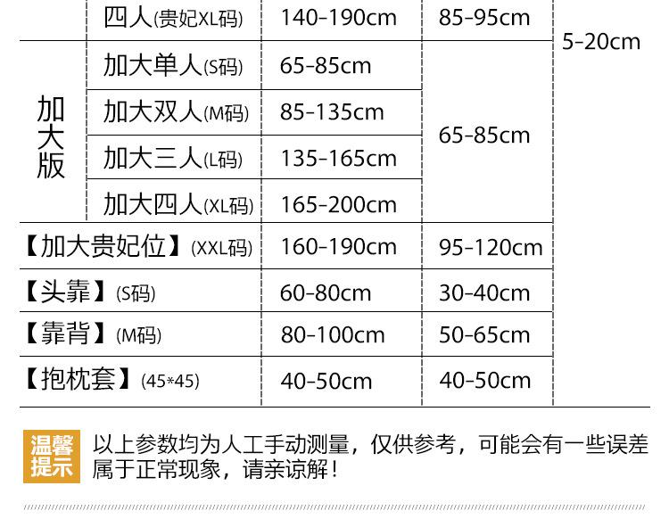 XXL size [width 95-120cm*length 160-190cm*height 5-20cm]