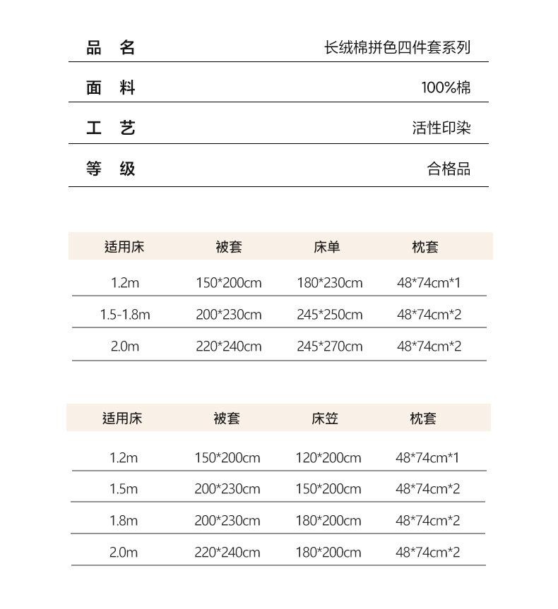 1.2m bed sheet three-piece set: quilt cover 150*200cm, bed sheets 180*230cm, pillowcase 48*74cm