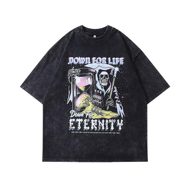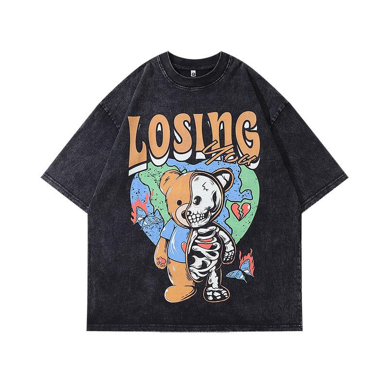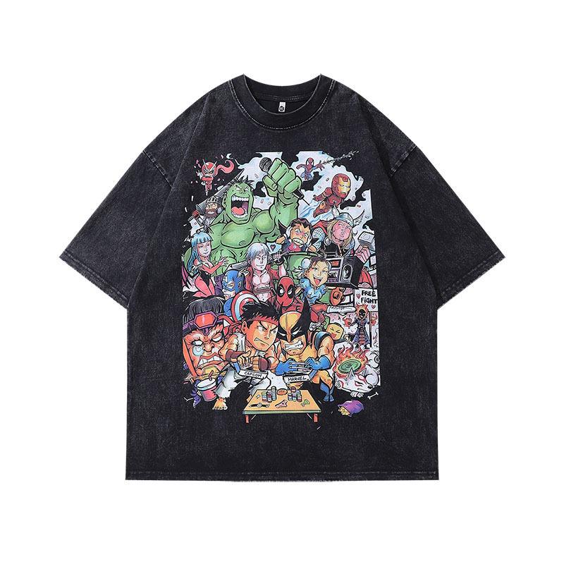 Camiseta de algodón lavado retro vieja de estación independiente manga corta para hombre y mujer combina con todo holgada manga corta lavado LAZADA mayoreo