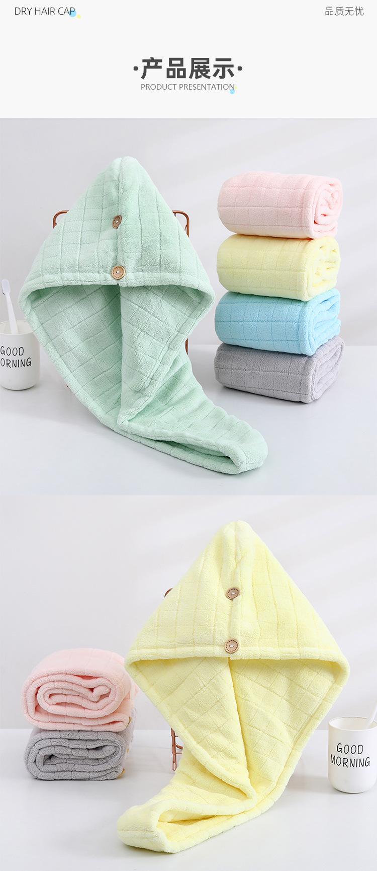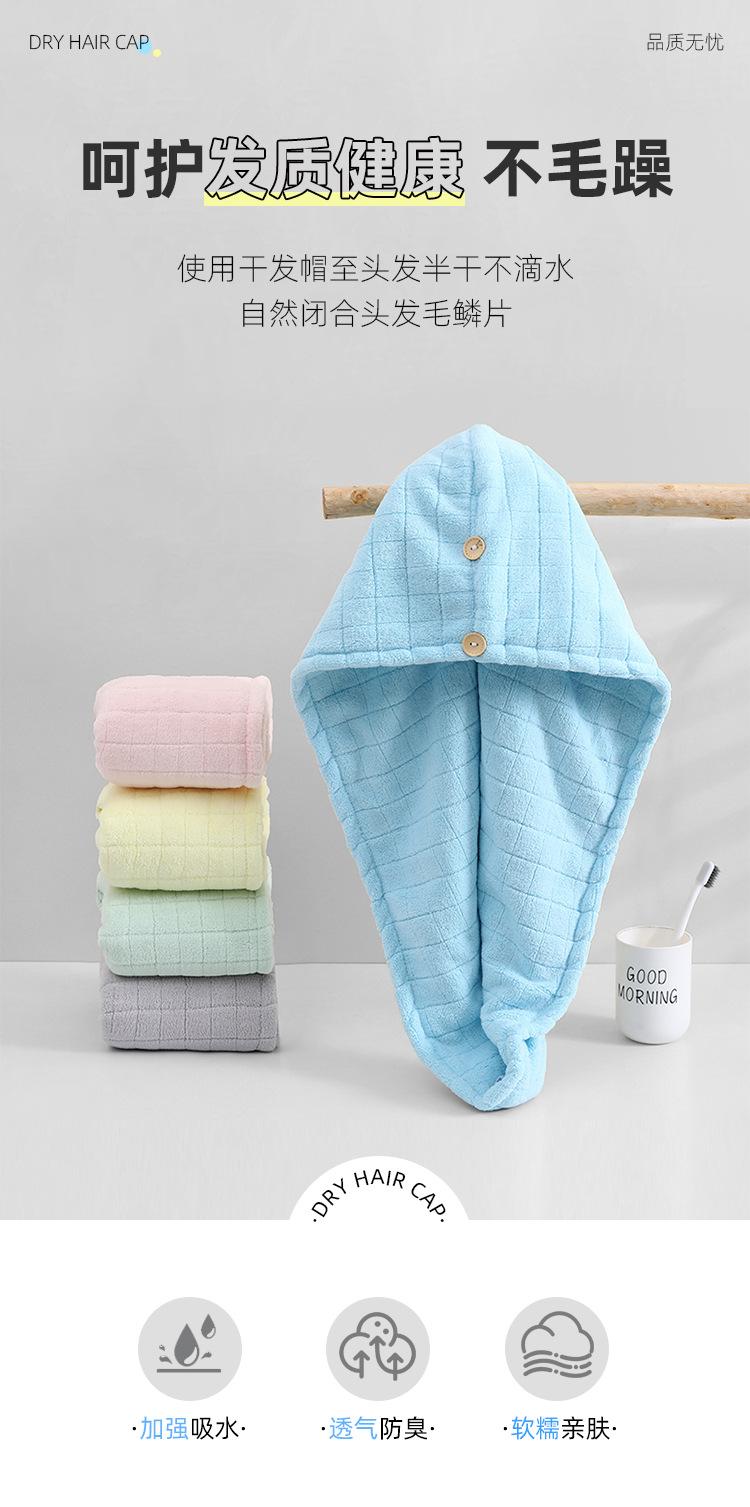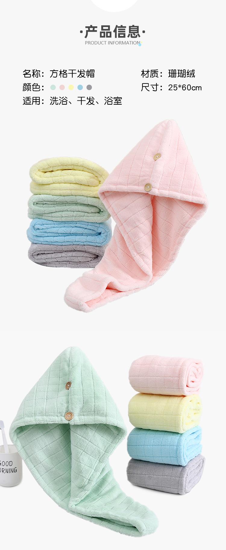 Gorro de Felpa Coral a Cuadros Absorbente para Secar el Cabello Baño Absorbente Envoltura sin Pelusa Color Sólido Cuadrícula Cuadrada Toalla Facial de Secado Rápido