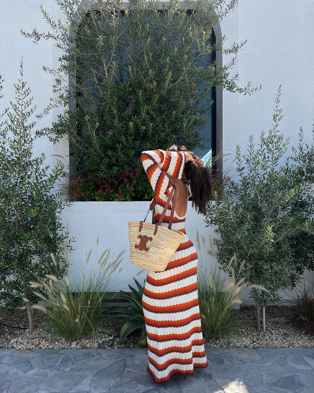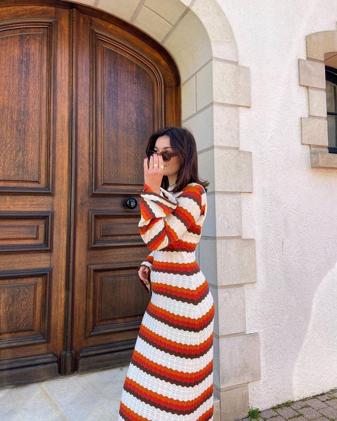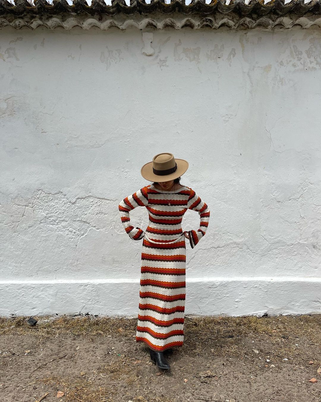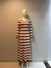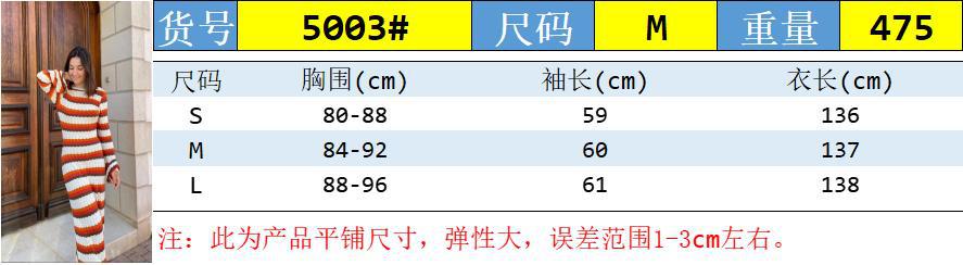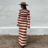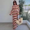 2023 Rayado Color Contraste Estilo Europeo y Americano Vacaciones de Playa Sexy Largo Tejido Calado Vestido Largo Blusa Verano Mujer