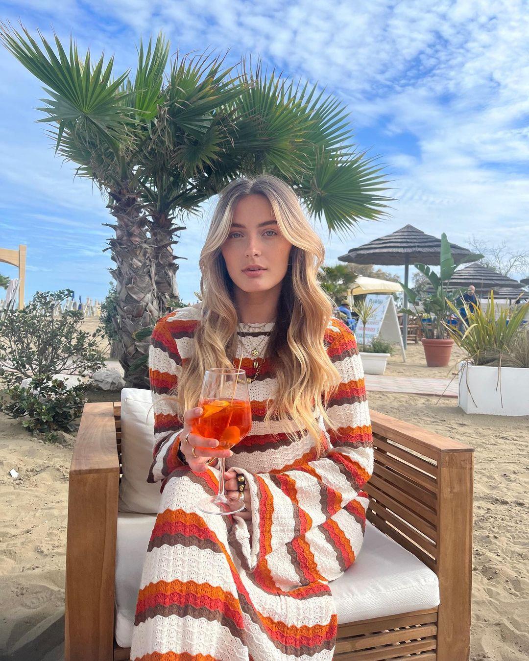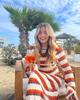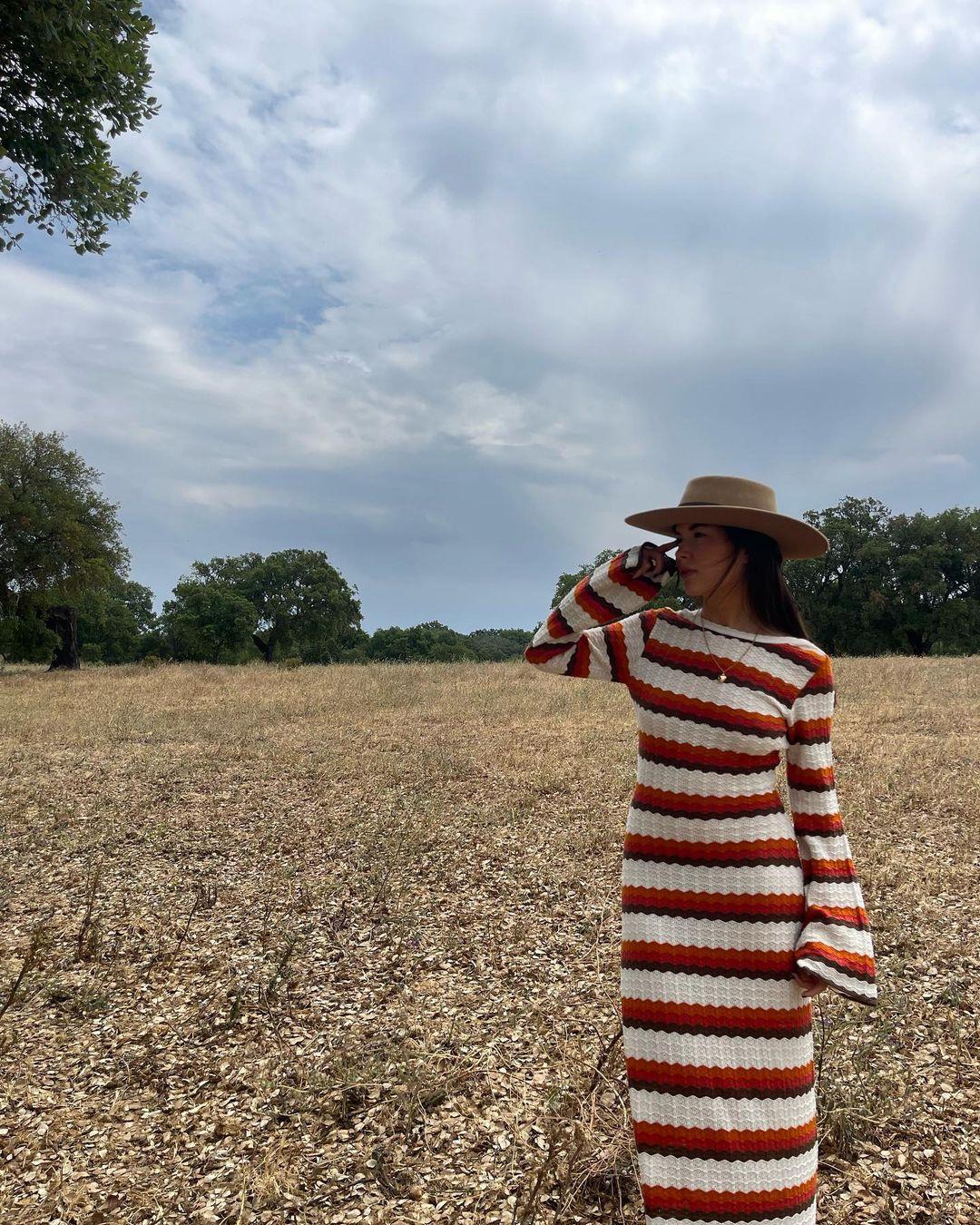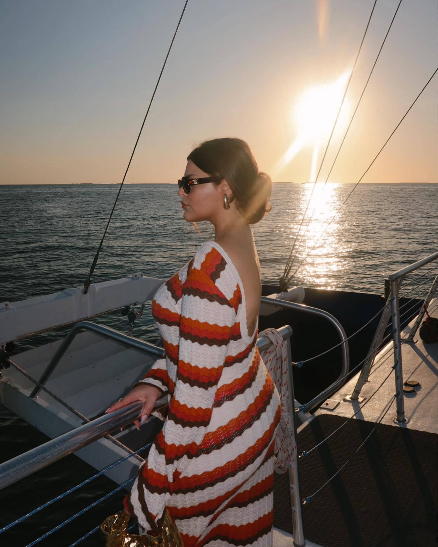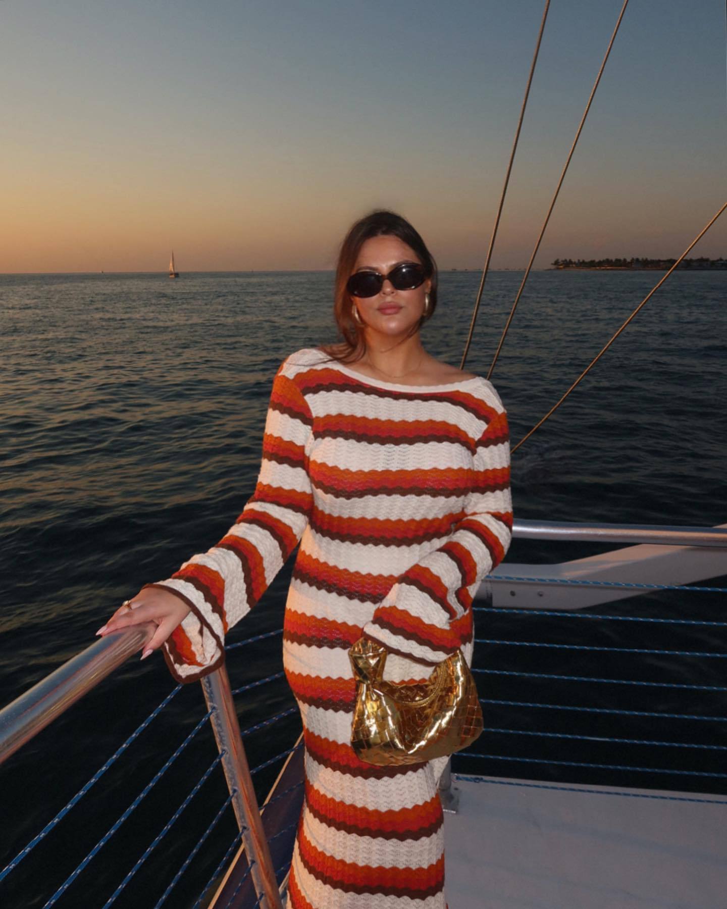 2023 Rayado Color Contraste Estilo Europeo y Americano Vacaciones de Playa Sexy Largo Tejido Calado Vestido Largo Blusa Verano Mujer