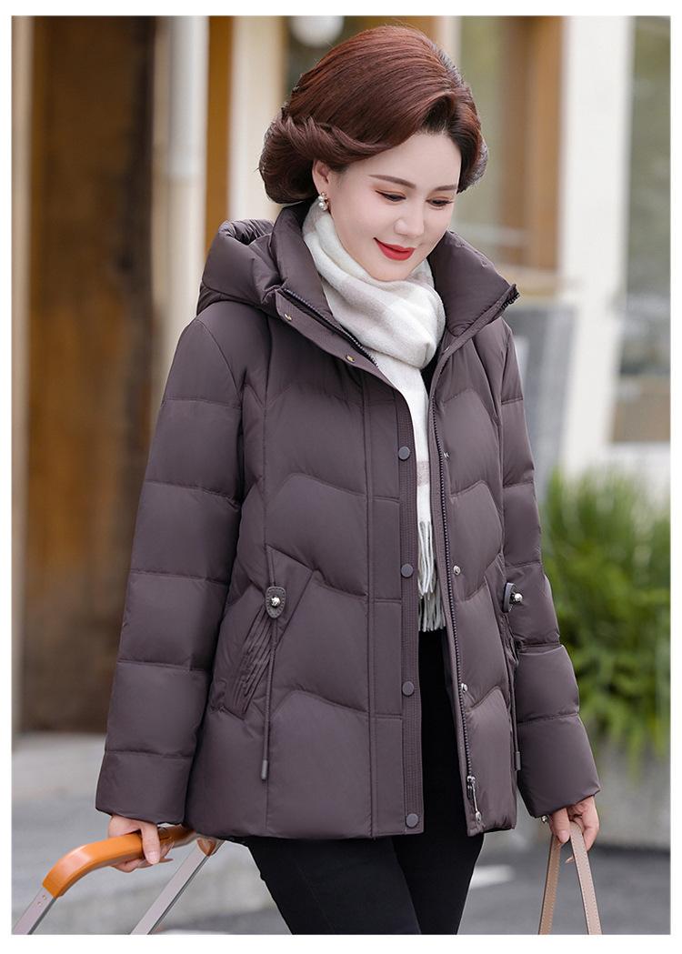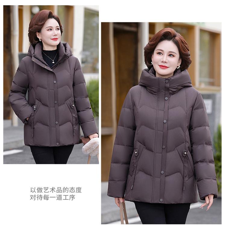 Marca Chaqueta de Plumón para Mujeres de Mediana Edad y Ancianas Estilo Corto 2025 Invierno Nuevo Estilo Petite Madre Talla Grande Engrosada a Prueba de Frío Cálida Ropa Exterior