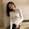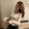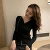 Suéter para Mujer Otoño/Invierno 2025 Estilo Coreano Cuello en V Sexy Ajustado Manga Larga Top Ropa Interior Capa Base Tejida para Mujer Estilo Suave