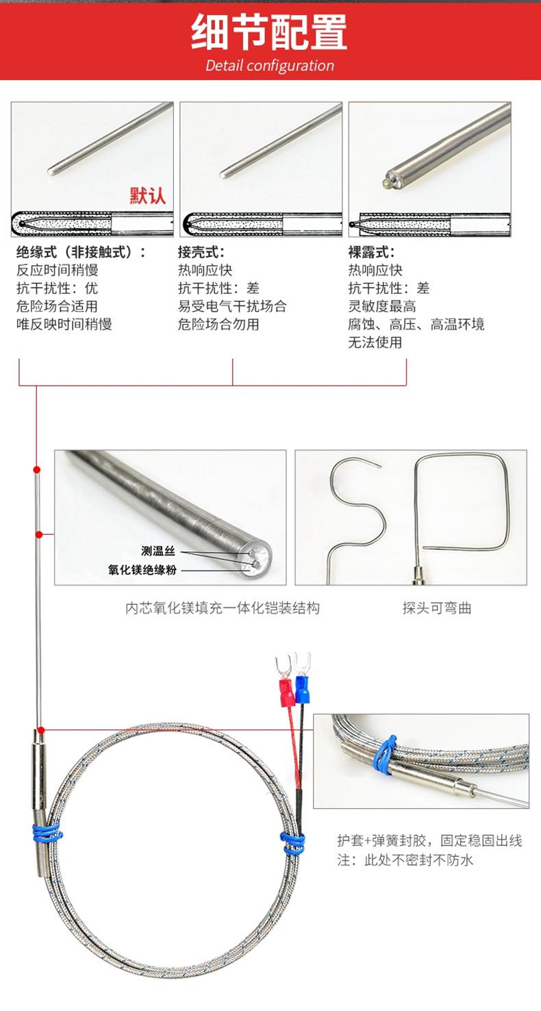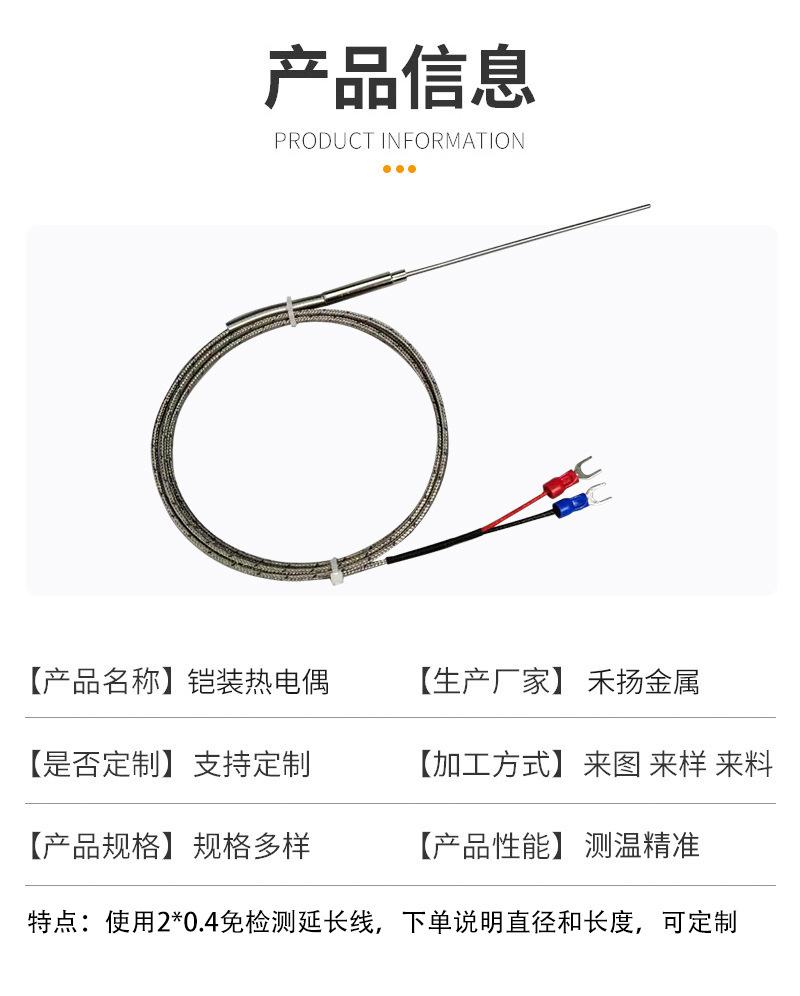 Sensor de Temperatura Termopar Tipo K Blindado Personalizado Sonda Sonda Tipo 0.5mm Alta Temperatura Medición de Temperatura Wrnk-191