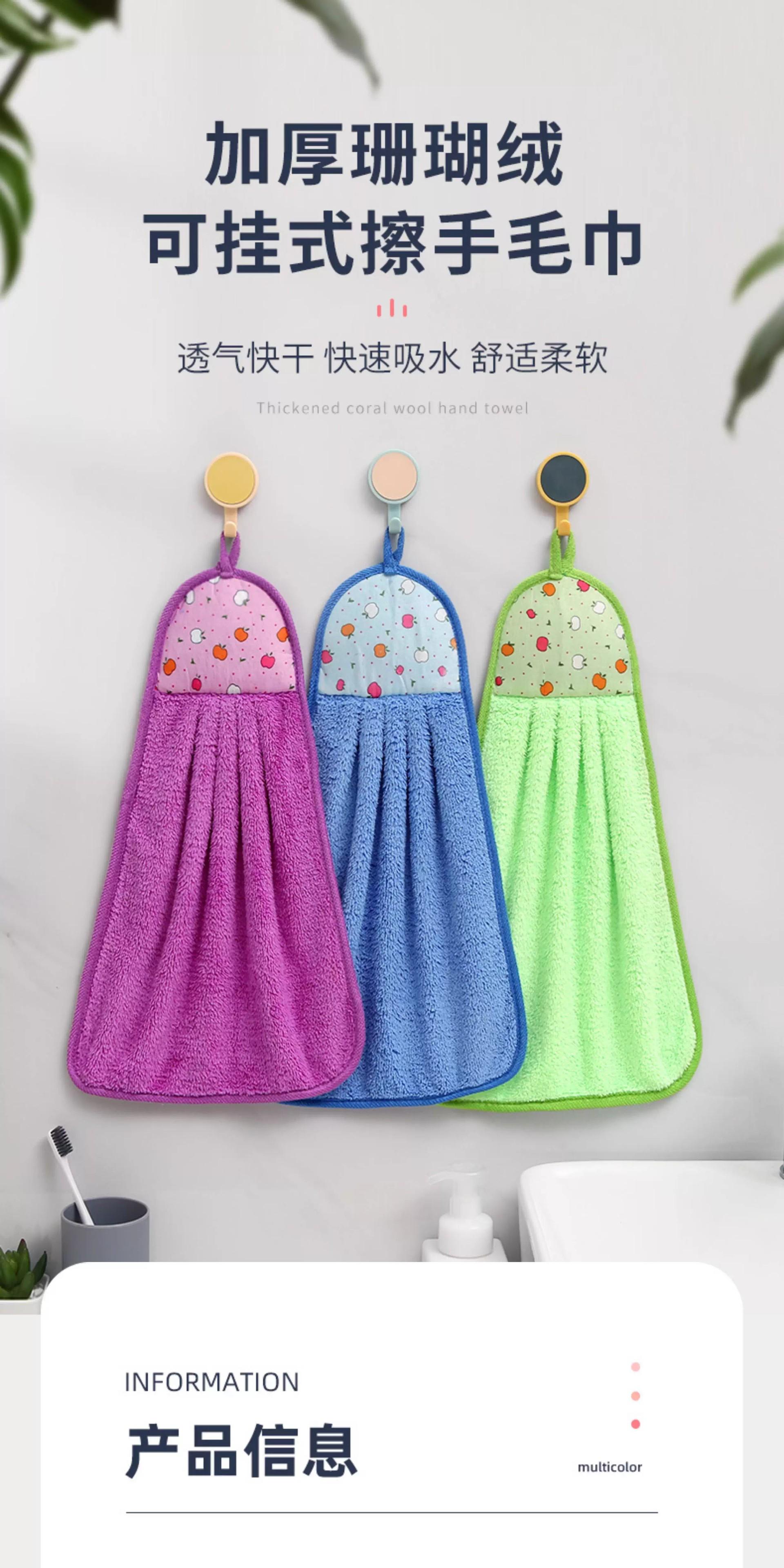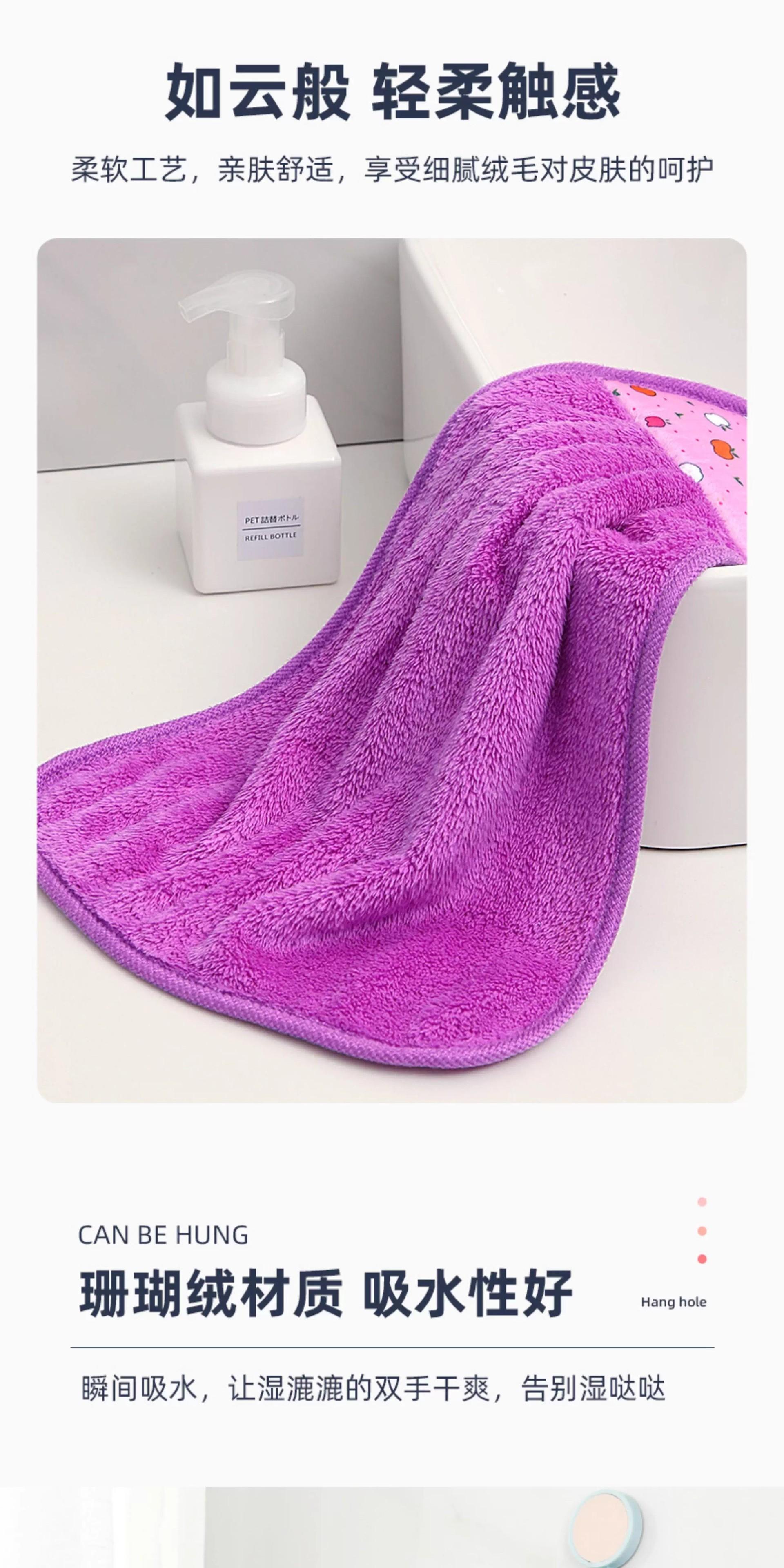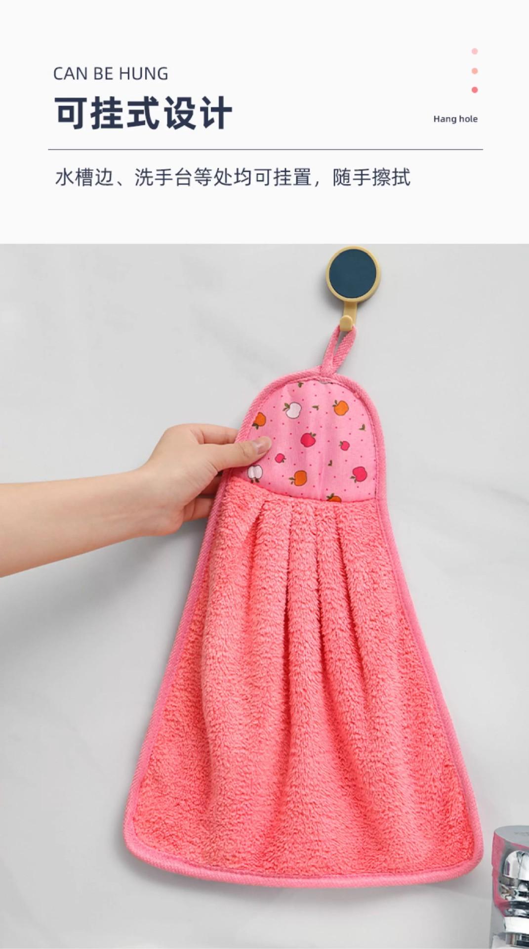 Toalla de cocina colgante toalla linda absorbente para el hogar baño engrosada paño de mano pañuelo vellón coral