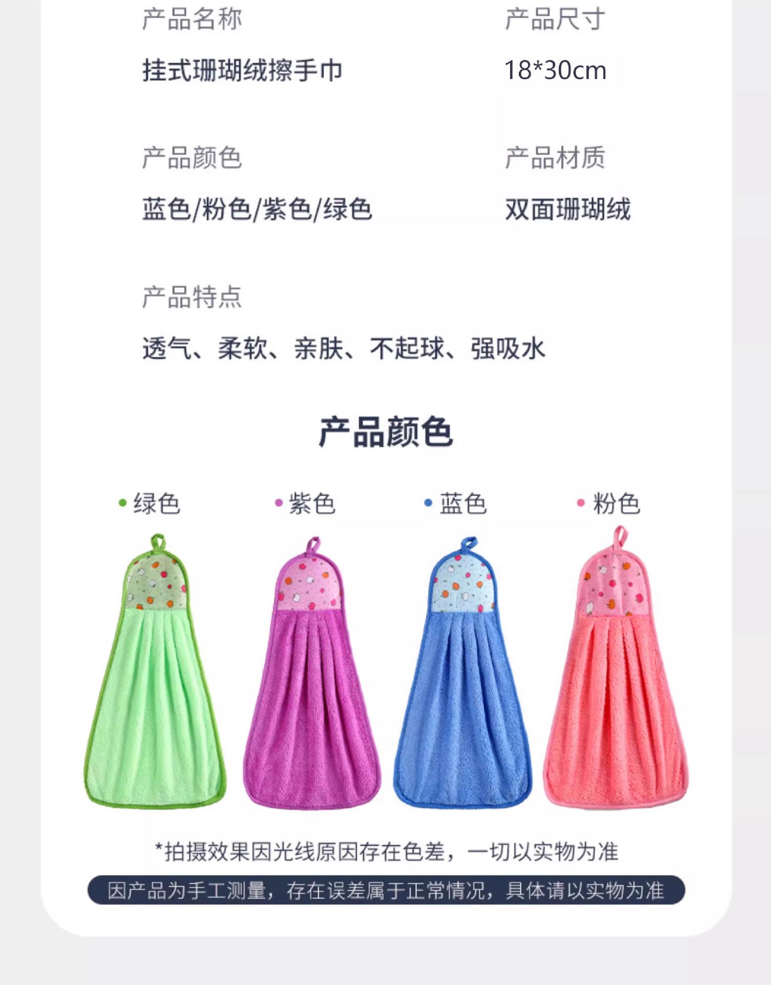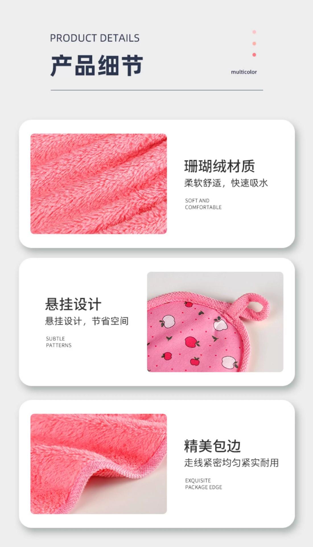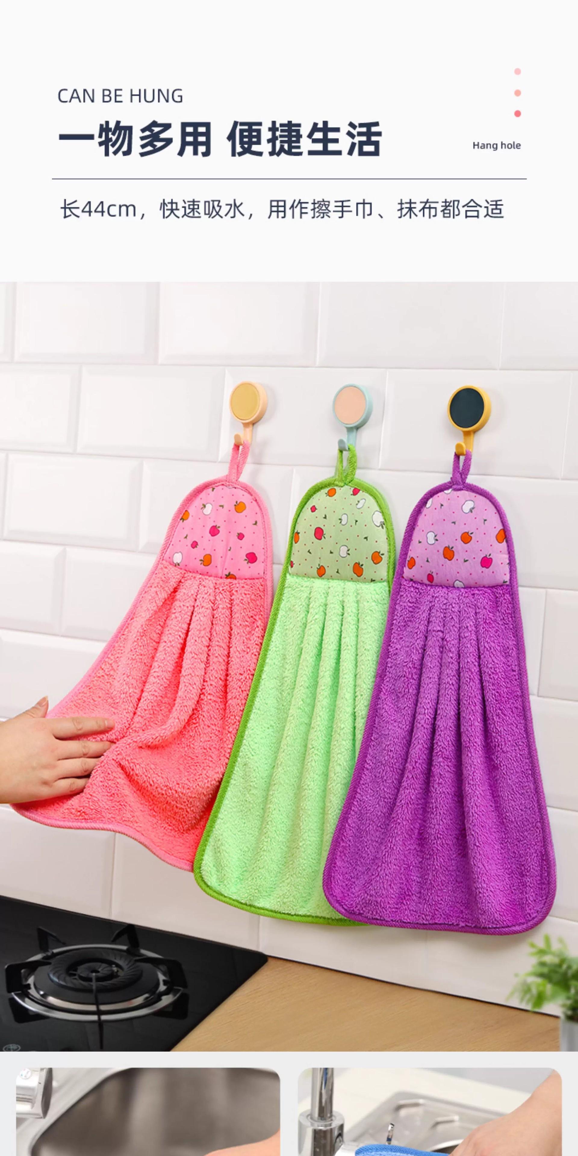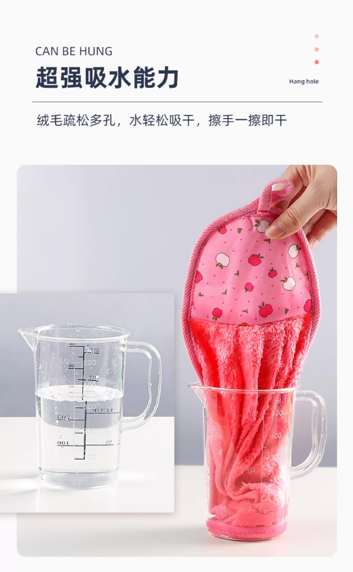 Toalla de cocina colgante toalla linda absorbente para el hogar baño engrosada paño de mano pañuelo vellón coral