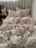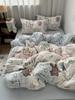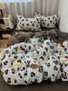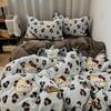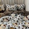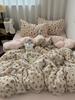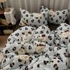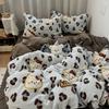 Conjunto de Cuatro Piezas de Terciopelo de Leche con Estampado de Leopardo Azul Claro para Gatito Corazón Femenino Invierno Cálido y Cómodo Conjunto de Tres Piezas de Franela de Forro Polar Coral