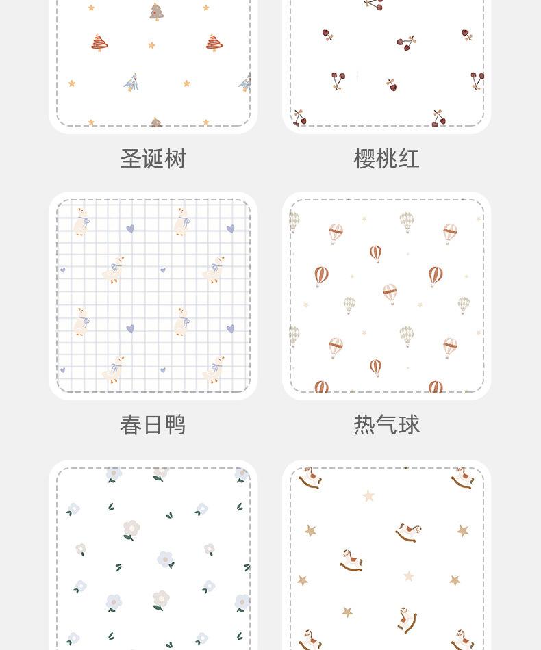 Christmas tree, Cherry red, Blue bell, Spring Duck, Rocking Horse, Baby Zebra, Sweet berry, Guoguo dog, hot air balloon, Nick Fox