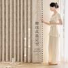 Nuevo Estilo Chino Susurros Toque Ligero Sombra de Hoja Gasa Ligera Flotante Raya Vertical Textura Lino Translúcida No Transparente Gruesa Visillo de Ventana Sombreado y Protección