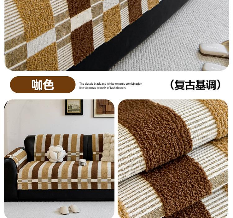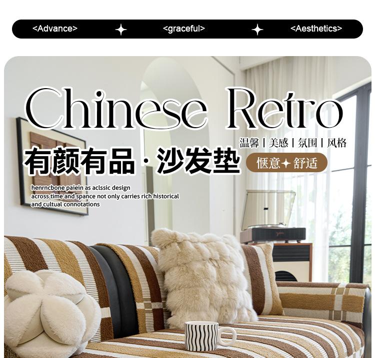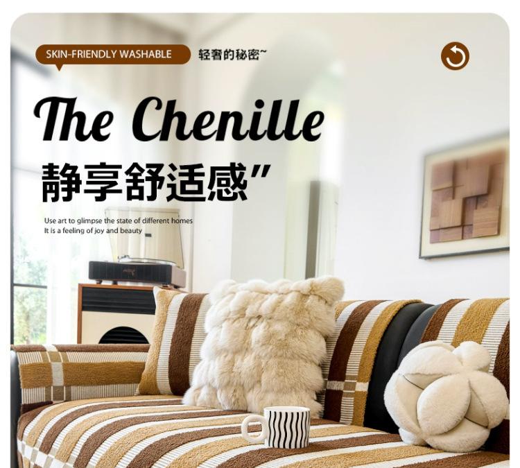 Cojín de sofá de chenilla retro estilo chino de alta gama de una pieza con cubierta completa para asiento de sofá, antideslizante, antiarañazos de gato, tela de cubierta