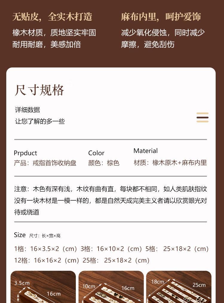Bandeja de Joyería de Madera Maciza Transfronteriza al por Mayor Bandeja Exhibidora de Joyería Caja para Anillos Paleta de Visualización Almacenamiento Joyero