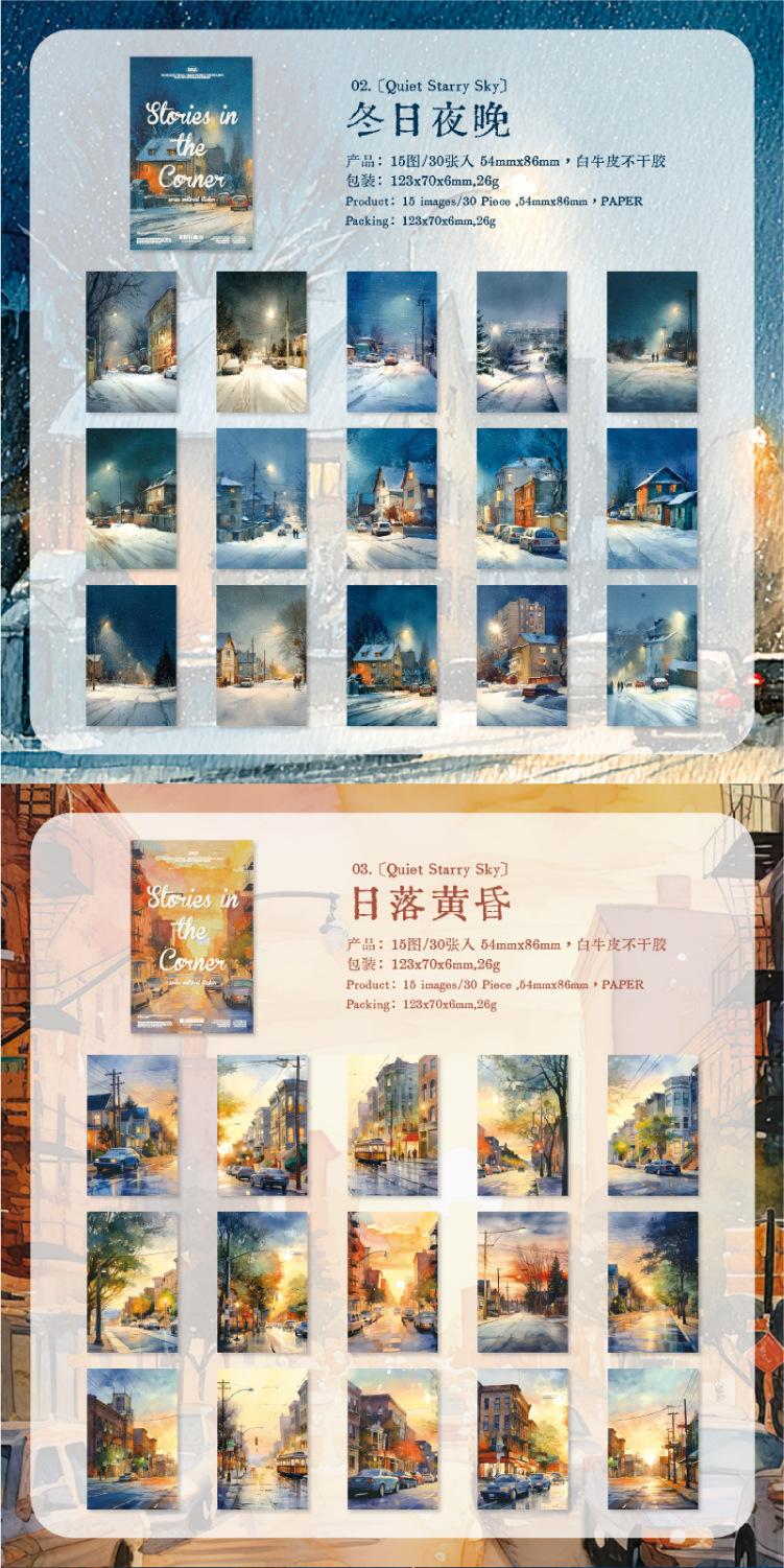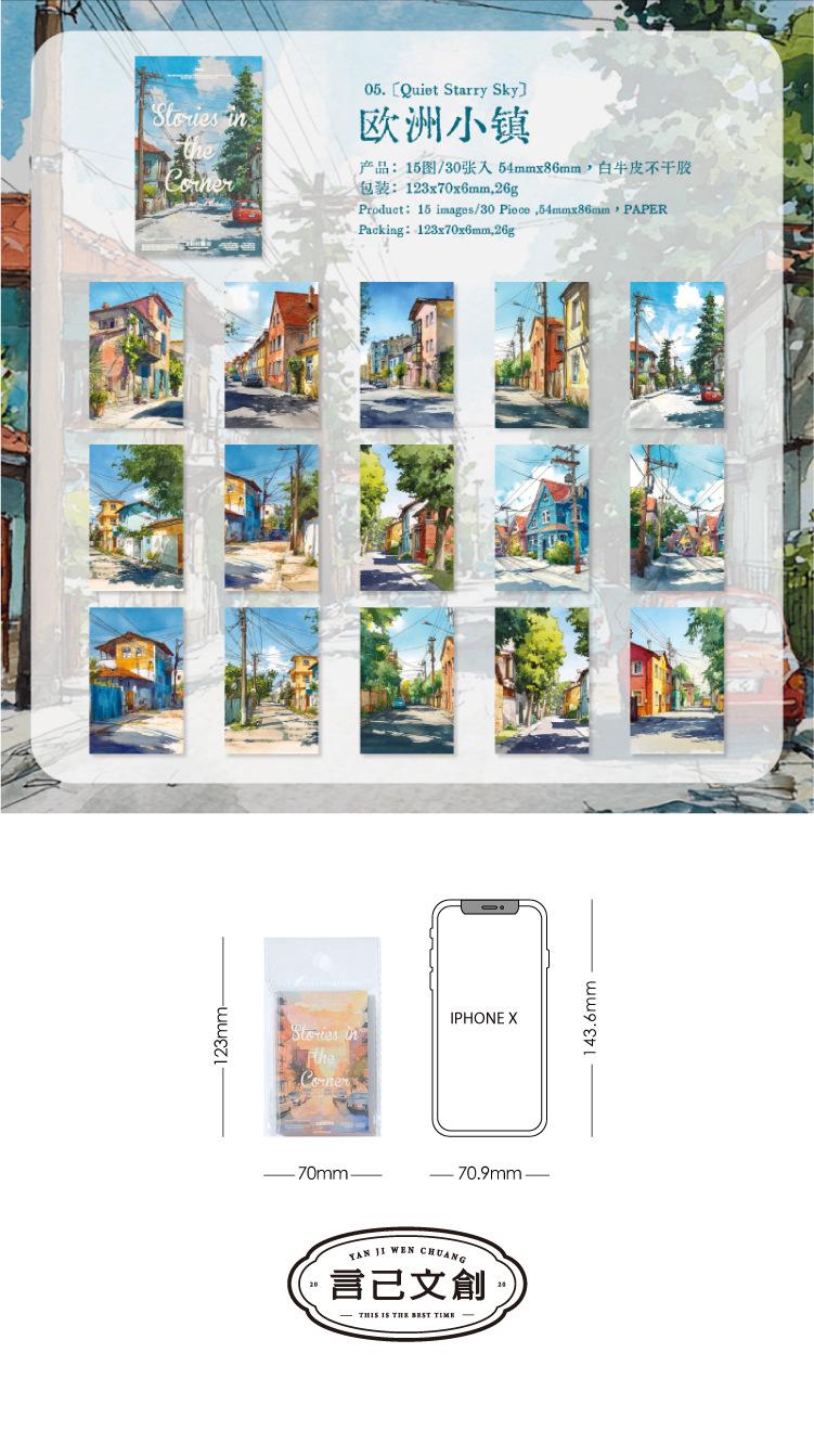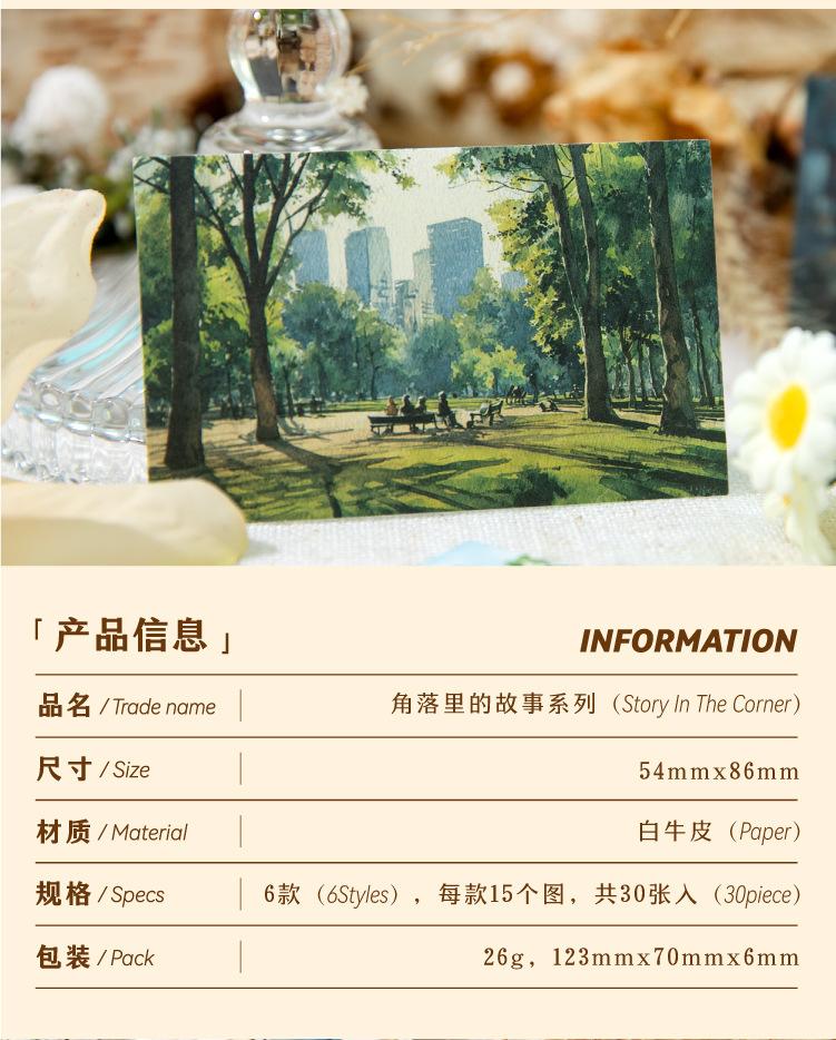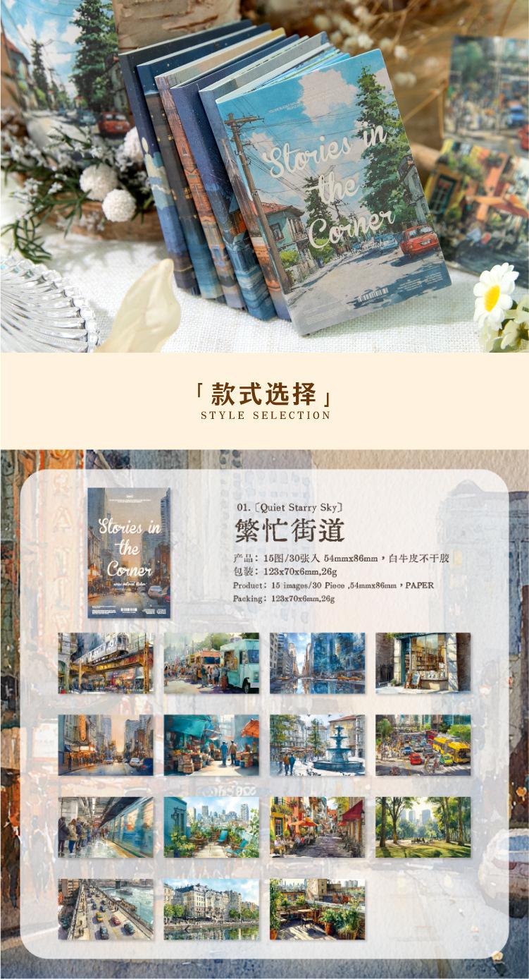 Serie de Historias de Stickers en la Esquina de la Esquina, Manual de Paisajismo, Material DIY Base de Decoración, 30 Hojas en 6 Estilos