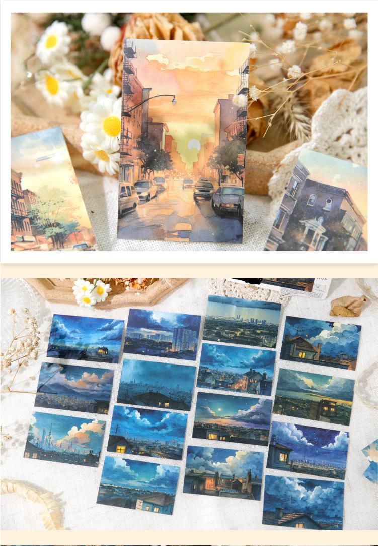 1. busy streets, 2. winter night, 3. sunset and dusk, 4. country night, 5. european town, 6. the long night is coming