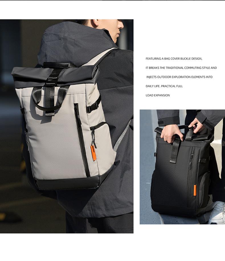 Mochila enrollable de moda transfronteriza para hombres y mujeres, de gran capacidad, mochila escolar para exteriores, viajes, casual para laptop