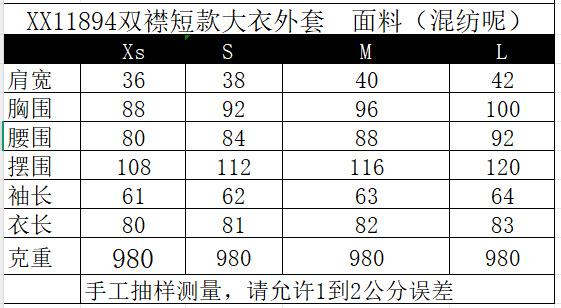 2025 Otoño/Invierno Nuevo Ropa de Mujer Transfronteriza Europea y Americana Temperamento Moda Abrigo Corto de Doble Botonadura Ropa Exterior w025 11894