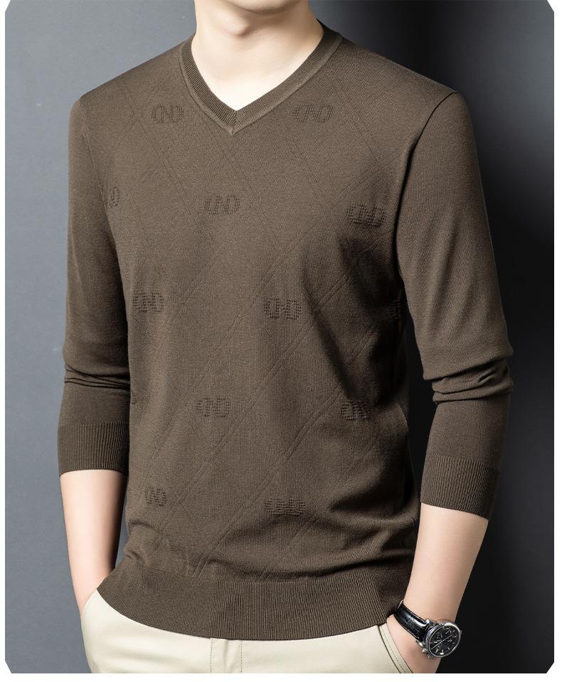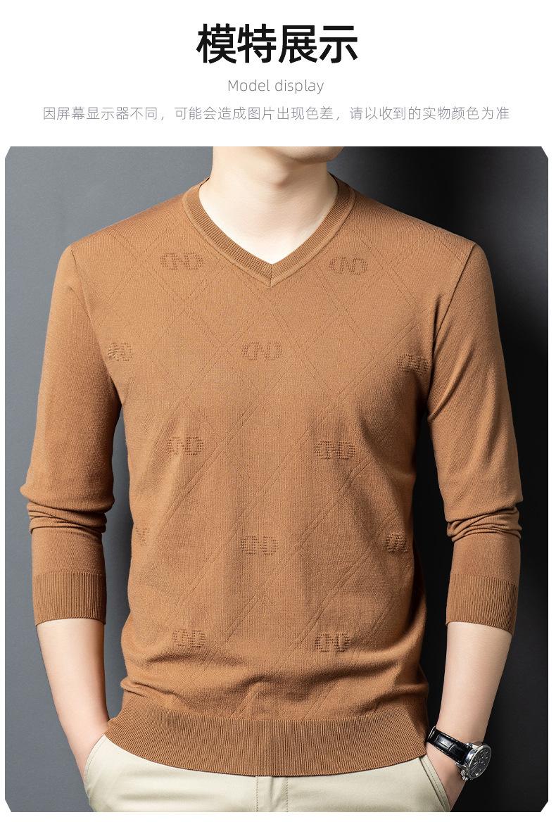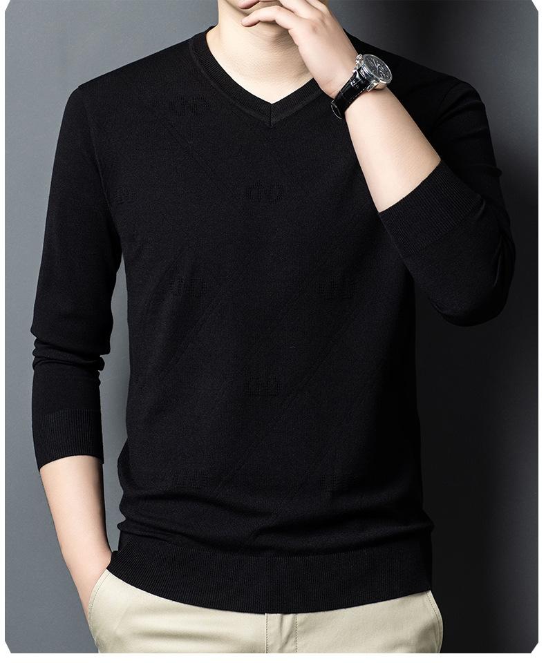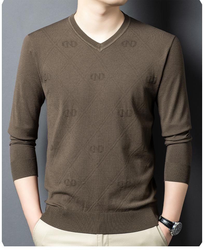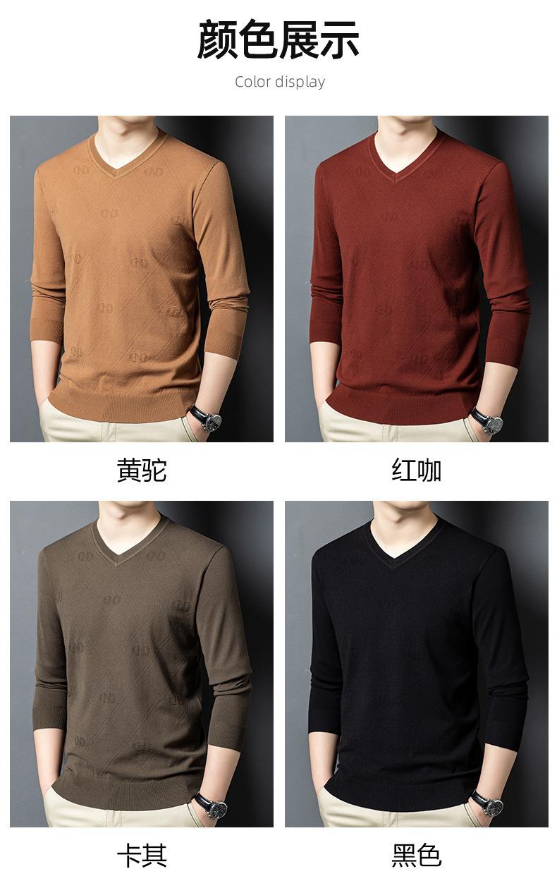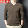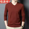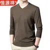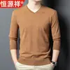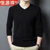 Hengyuanxiang 2025 Otoño Nuevo Suéter Tejido para Hombre Cuello en V Camiseta Base Moderna Versátil Suéter Manga Larga para Hombre t